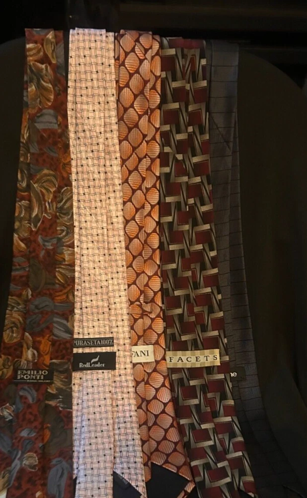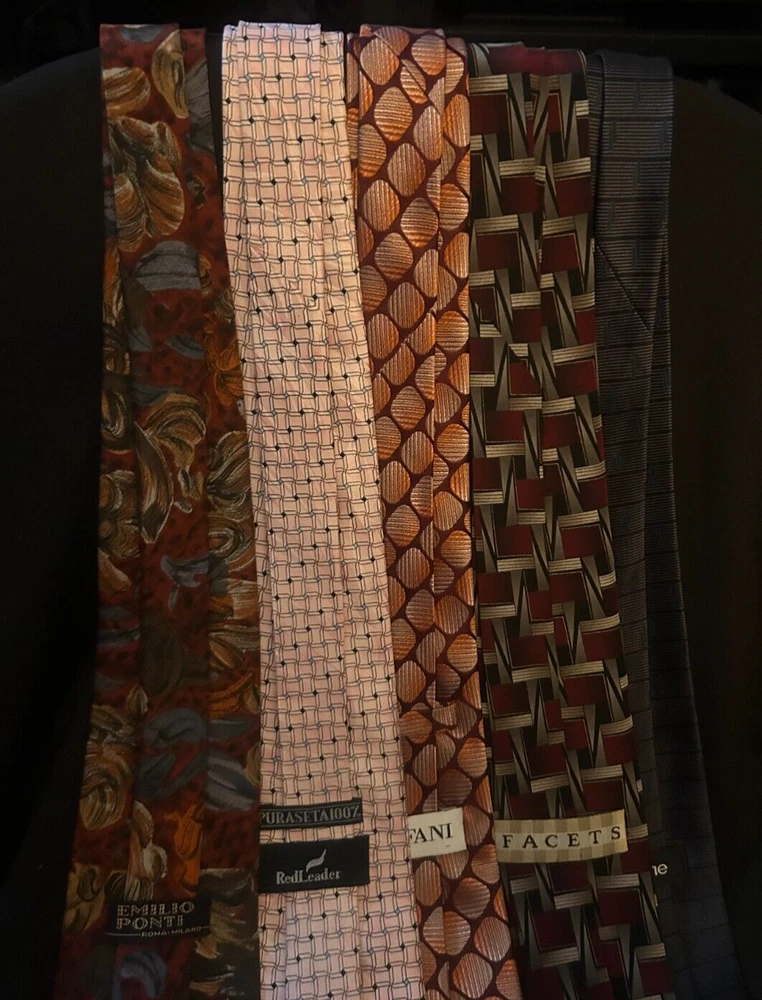 The product is a set of 5 assorted ties from brands like Alfani and Facet, designed for men. The ties feature a multicolor design, offering a variety of options to complement different outfits and styles. This collection provides a mix of ties that can be suitable for various occasions, adding versatility and style to the wearer's wardrobe.