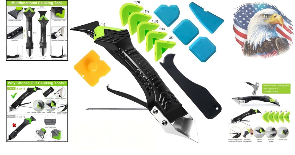 5-in-1 Caulking Tool Kit with 6 Replacement Silicone Pads for Easy Repair ‹ › ‹ › ‹ › ‹ › ‹ › ‹ › ‹ › ‹ › ‹ › 5-in-1 Caulking Tool Kit Key Features: Multifunctional design: Repair gaps, clean residual glue, and fill caulk with ease. Stainless steel scraper and finishing tool for removing stubborn old glue. Silicone trowel for smoothing sealing lines and caulking lines. 6 reusable and replaceable silicone pads with a variety of sizes (3R, 6R, 10R, 13R, 15R, 17R radius). Durable materials: High-quality stainless steel head and corrosion resistant plastic ensure longevity. Damage-free application, preventing scratches on delicate surfaces. Enhance Your Project: Perfect for home, kitchen, bathroom, and more. Improve the visual aesthetics of joints and edges effortlessly. Reduce waste of sealant through precision application. Why Choose Our Caulking Tool Kit? The 5-in-1 Caulking Tool Kit is the ultimate companion for DIY enthusiasts and professionals alike. With its multifunctional capabilities, you can achieve a flawless finish on every caulking job. No more messy applications or unsightly gaps. Our tools guarantee superior agglutination quality and enhance the overall appearance of your surfaces. With a blend of durability, functionality, and user-friendliness, this tool kit is a must-have for all your repair and renovation needs. Whether you’re refreshing your bathroom or upgrading the kitchen, this kit ensures a professional finish with minimal effort. Elevate your repair game today — order your 5-in-1 Caulking Tool Kit now! Shipping Free & Fast Shipping - We offer free shipping to most of the USA with a normal delivery time of 3-7 days. However, due to the current situation, additional delivery time (up to 3 weeks) may be required for some items. Alternative Carriers - We may use alternative carriers (e.g. USPS, FedEx, UPS, etc.) to ensure your package arrives safely and on time. Due to the use of multiple carriers, we are unable to provide a tracking number automatically. Handling Time - Orders are processed and shipped within 1-2 business days of receiving cleared payment. Shipping Restrictions - Shipping to Alaska, Hawaii, Puerto Rico, Guam, and other US territories may incur shipping charges or delivery restrictions. Please contact us before ordering, or your order can be refunded/cancelled. State Restrictions - There may be restrictions based on your state of purchase. For example, certain items may not be shipped to California due to state regulations. Contact for Tracking Updates - If you require tracking updates or have any concerns about the delivery of your order, please feel free to contact us, and we will be happy to assist you. Return 30-Day Hassle-Free Returns - We want you to be completely satisfied with your purchase. If you are not, you can return the item within 30 days of receiving it for a full refund or exchange. Easy Return Process - To start a return, simply contact us and we will provide you with a prepaid return shipping label and detailed instructions. Restocking Fee - There are no restocking fees for returns. However, the buyer is responsible for return shipping costs if the return is not due to a seller's error. Refund Processing Time - Refunds will be processed within 5 business days of receiving the returned item in its condition. Payment We accept all major credit cards, PayPal, and Apple Pay for your convenience. Your payment information is secure and encrypted to ensure a safe and seamless transaction. Please complete your payment within 3 days of purchase to avoid any delays in shipping. Feedback Your feedback is extremely important to us. We strive to provide the best products and customer service possible. If you are satisfied with your purchase, please take a moment to leave us a positive review. If you have any concerns or issues with your order, please contact us before leaving negative feedback. We are committed to resolving any problems and ensuring your satisfaction. Contact Us If you have any questions or concerns, please feel free to out to our customer support team. You can contact us through the eBay messaging system. We are available Monday to Friday, 9:00 am to 5:00 pm EST, and we will do our best to respond to your inquiry within 24 hours. Buy it now and enjoy a pleasant shopping experience! Model: Caulking Tool Item Width: Caulking Tool Item Length: Caulking Tool Item Height: Caulking Tool Item Weight: 0.15 kilograms Unit Quantity: 1 Material: Plastic,Stainless Steel Type: Caulking Tool Number of Pieces: 1 Color: Green Unit Type: Unit