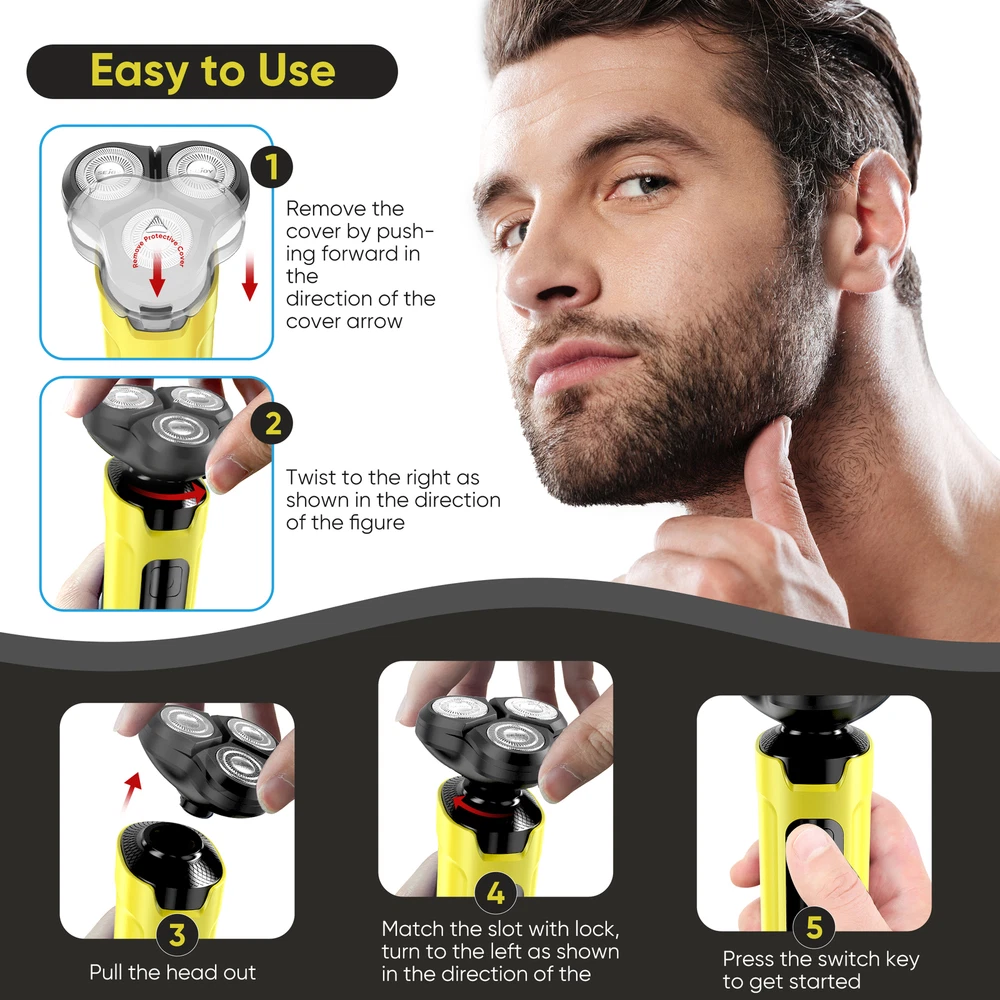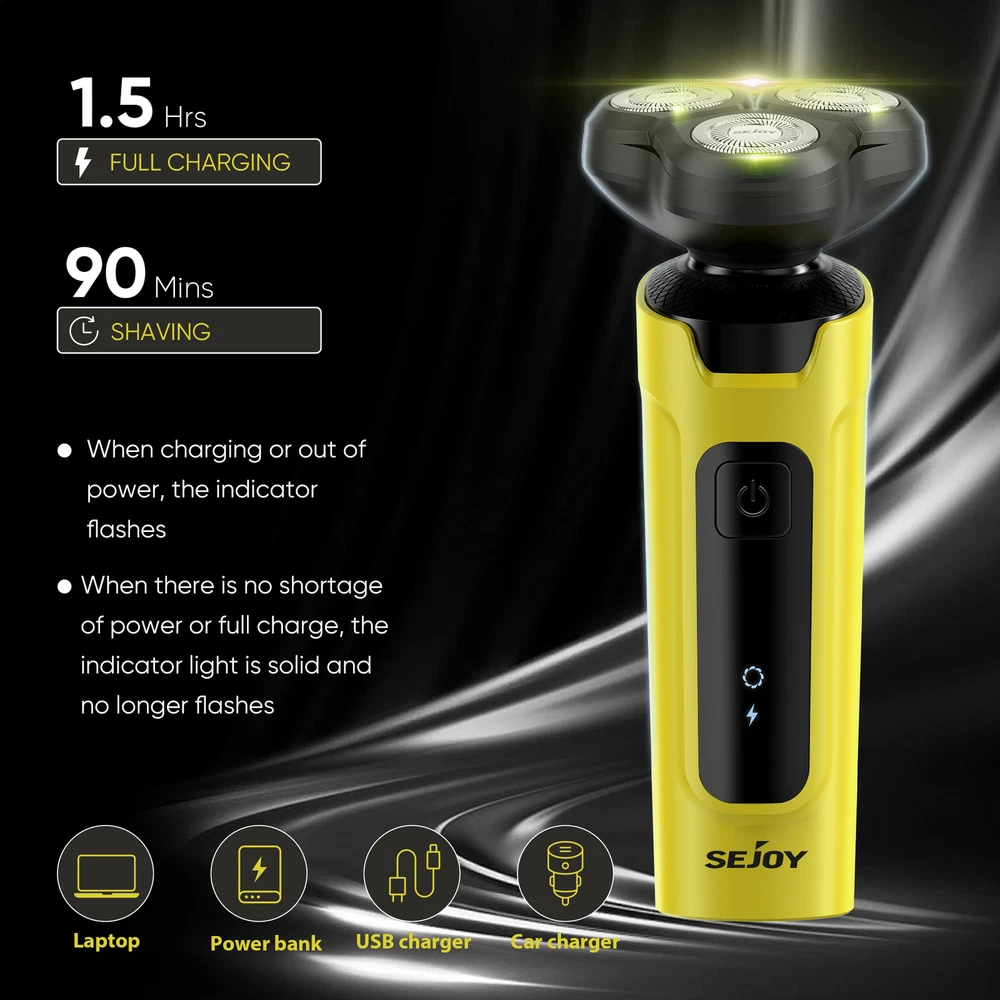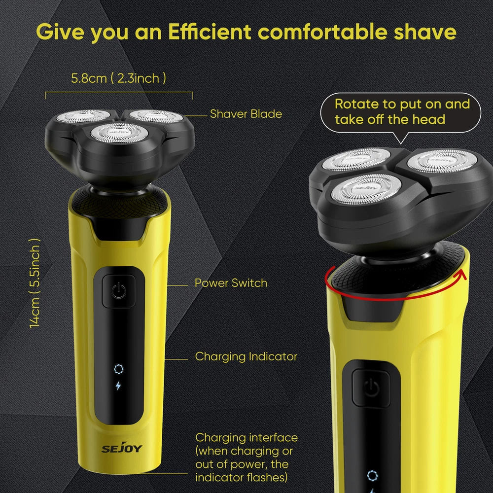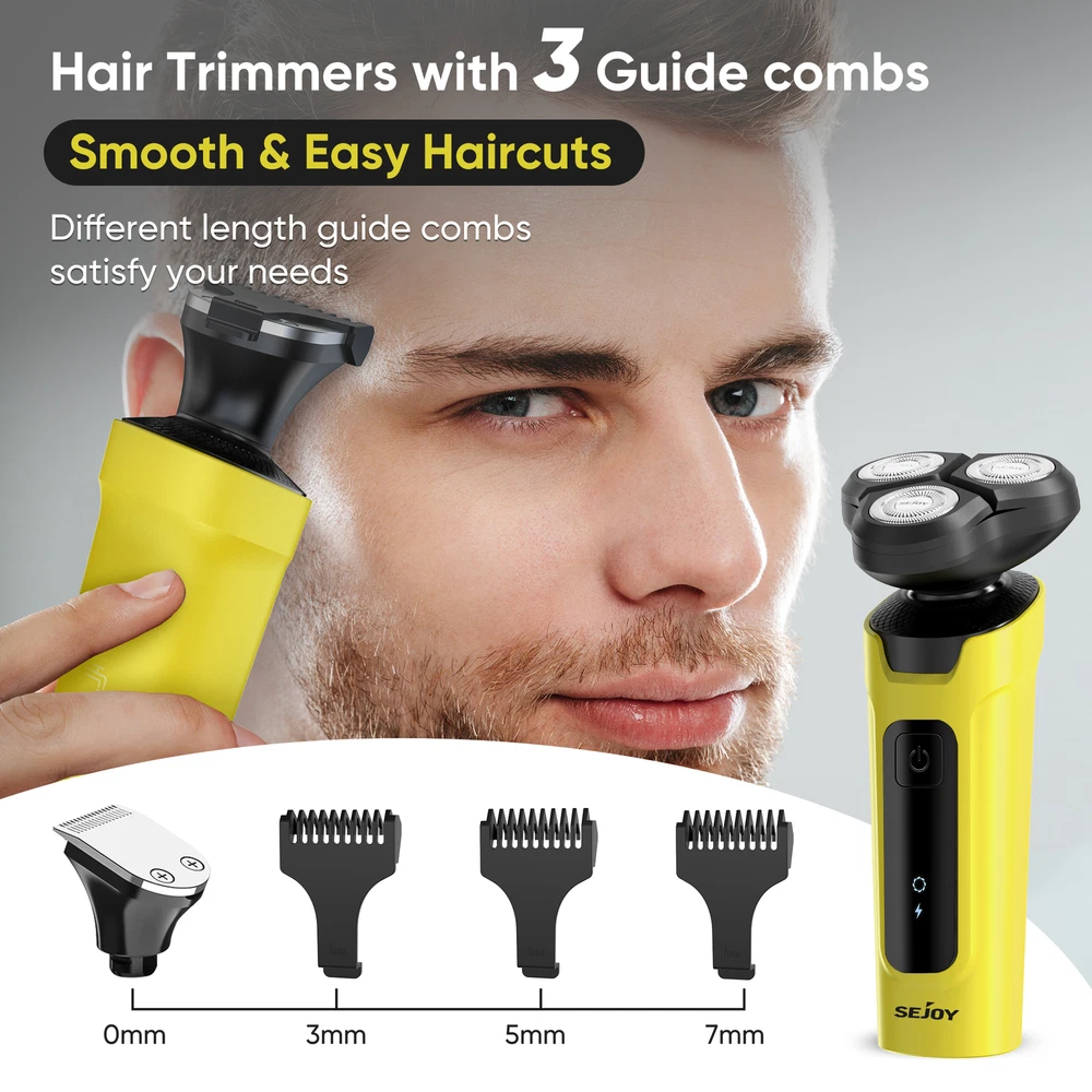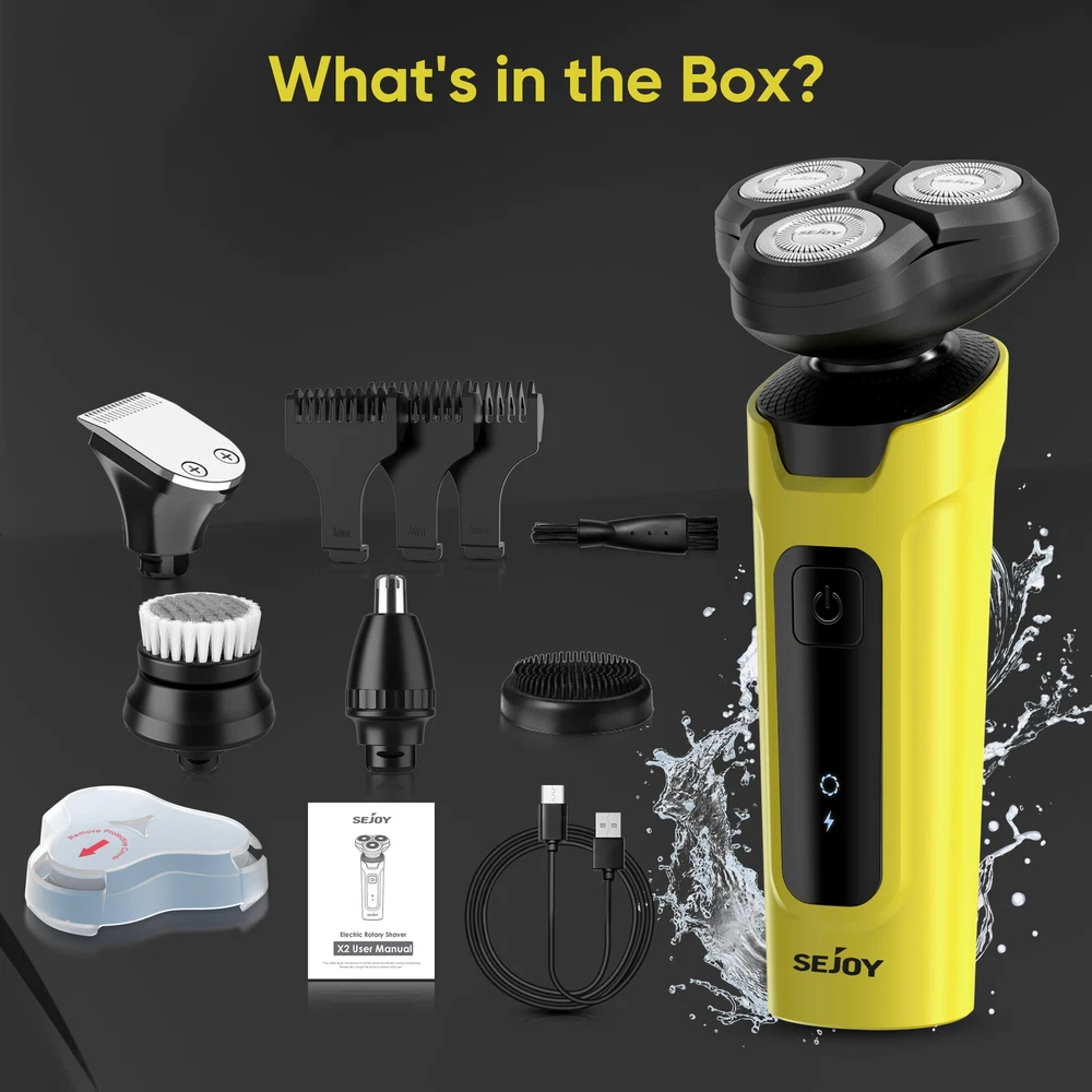 eBay SEJOY Joytech Shop Search... Our Store About us Reviews Contact SEJOY Electric Shaver 5in1 Rotary Shaver 3D Floating Shaving Head IPX7 Waterproof USB Charging & Reliable batteries Low Power Indicator only 18.9 $ Buy it now Any questions? Information Payments & Postage Specifications Colour :Yellow Model: X2-SET Rated Power: 5W Rated Voltage: 3.7V Charging Time: 1.5 Hours Waterproof:IPX7 Motor type:Rotary Package Content 1*Electric Shaver 1*USB Cable 1*User Manual 3* Hair Trimmer Comb(3mm/5mm/7mm) Nose Trimmer Head Facial Massage Head Feac Cleaning Head Hair Trimmer Head 3D Shaving Head Details 1 Double-track Blade Net (18×3 blades), High Precision Steel (0.11 mm Thickness) and self-sharpening Blade. The 3D Floating rotary shaver head automatically adapts to the contours of your face and neck bringing you an effective and smooth shaving experience. Moreover, the self-sharpening blades designed for durability, which can save your time to change the blade. 2 : An extremely versatile men's shaver includes four interchangeable heads that not only shaves your beard but also allows you to trim away sideburns, hairs (3mm,5mm,7mm) and nose hairs. In addition, features a facial cleaning brush and massage brush for deep skin cleansing. You can easily cut your hair to your preferred length. For all your hair trim and facial needs.(Blue-Electric Shaver Kit) 3 IPX7 waterproof design caters for both wet and dry use, supporting shaving with foam or water. No longer worry about using it in the bathroom, the electric head shaver can complete the trimming task efficiently. Use this electric head shaver under running water and enjoy shaving in the shower. 4 This cordless razors for men comes with a USB cable(NO USB adapter), can be connected to the computer, power bank, car, and other USB device, more secure and convenient. Up to about 90 minutes shaving time after about 1.5 hours charging. Enjoy an easy charging at home, or on the road. It is perfect for every businessman and travelers. 5 When the battery is in a low battery state, the LED light will prompt you to charge in time to avoid the use of insufficient power or stop working on the way to use. Payments & Postage Links All Listings About us Reviews Contact Our Service Free shipping Money-back guarantee 30 Days Refund and Return Competent support Contact Do you have any questions about our products? Feel free to contact us via the eBay contact form. eBay message