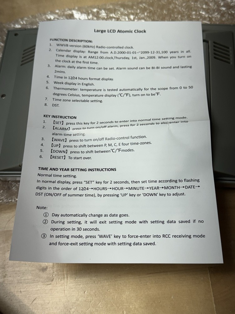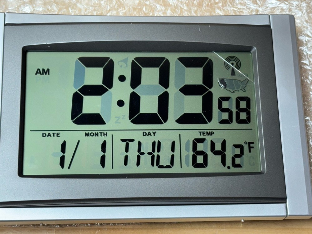 This listing is for a new 5 in 1 Large LCD Atomic Clock. Pictures show what the clock's display looks like. Will ship a sealed package clock. See pictures for actual atomic clock in listing. BIN - Z78