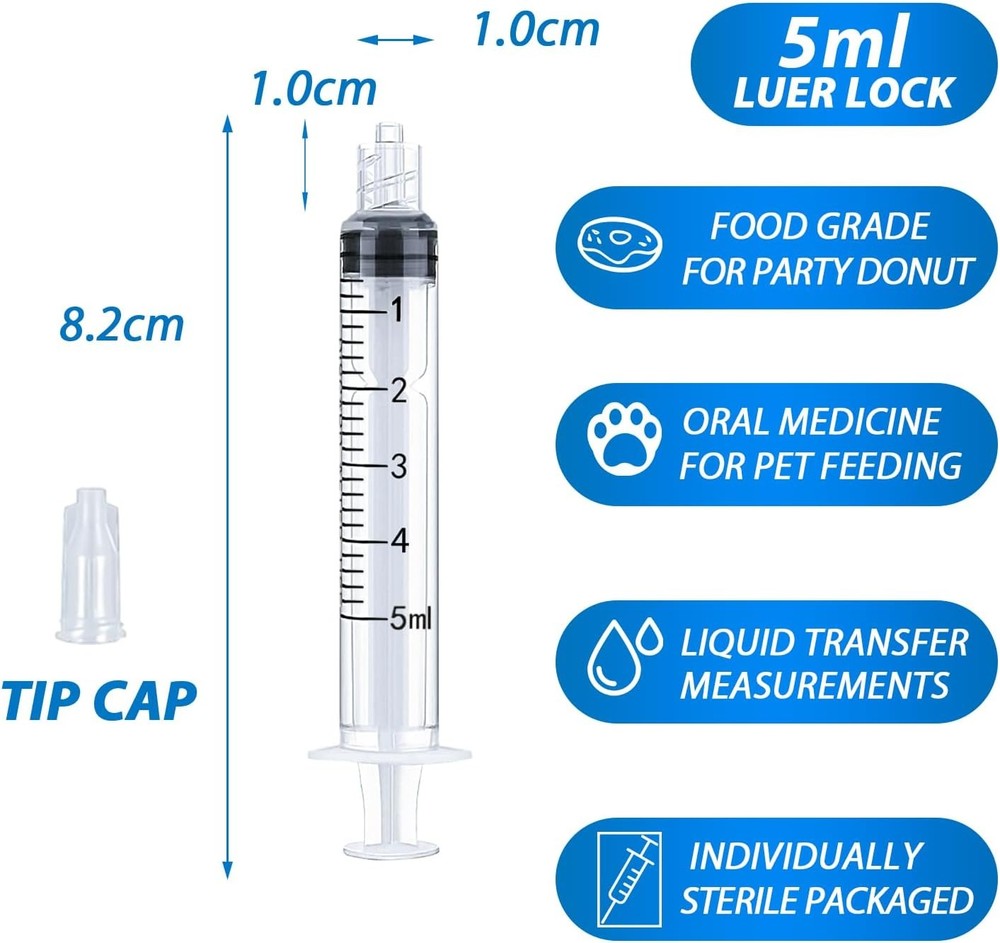 5ml Luer Lock Syringe 4 Pack Small Plastic Sterile Syringes without Needle, for Liquid, Oral, Measurement, Dispensing, with Cap (5ml, 4) Description Features: Product Details: Package Dimensions : 5.2 x 3.23 x 0.75 inches; 0.63 ounces Item model number : HI-5ML-LL Manufacturer : HiMo Brand: HiMo Material: Plastic Item Volume: 5 Milliliters Sterility Rating: Sterile Unit Count: 4.0 Count Handling We will ship all orders within 3 business day of payment. Delivery We Do Not Ship Outside of the Continental US. Return Policy All items qualify for returns within 30 days of receipt. Buyer is responsible for return shipping on any item that is not damaged. Feedback We take our reputation seriously, we buy and sell online, so we understand the value of trust. If you are unsatisfied with your order, please contact us and we will work with you to resolve it to your satisfaction.