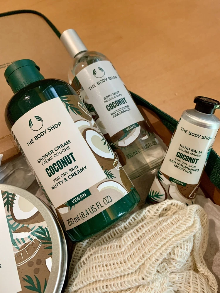 Brand: The Body Shop Scent: Coconut Size: Regular Set Includes: Shower Gel Type: Toiletries Set Formulation: Butter