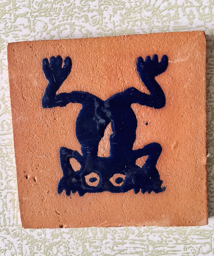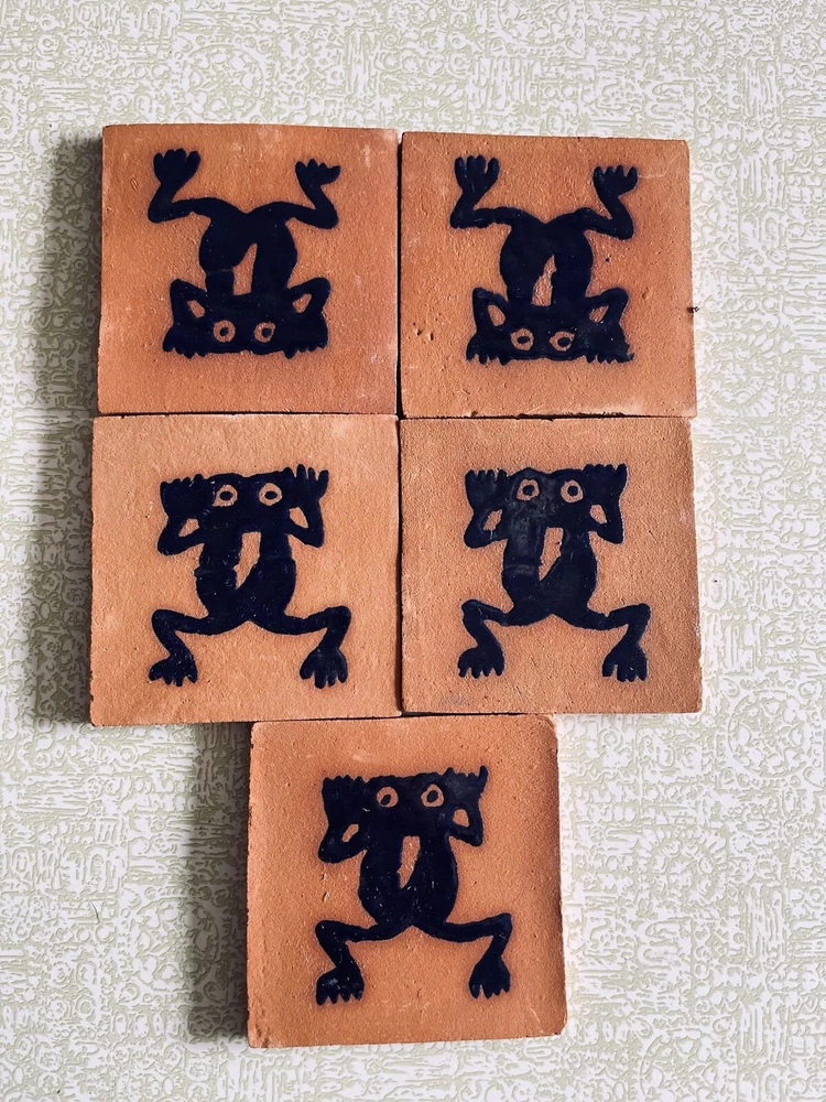 I am selling this 5 piece vintage terracotta tiles from Mexico features a unique primitive abstract frog design, perfect for any art-themed collection. Measuring 4 1/8 inches in both length and height, this square-shaped tile is made of high-quality terracotta material and finished with a beautiful blue glazed frog. Although not signed, this handmade tile is a rare find and suitable for use as a decorative piece. The brown color and blue glazed frog subject make it a great addition to any collection, especially for those interested in collective and decorative items. The item will be very carefully packaged and shipped promptly upon receipt of payment. All items I sell are guaranteed to be as described and pictured, or your payment will be refunded upon return of the item in its original condition