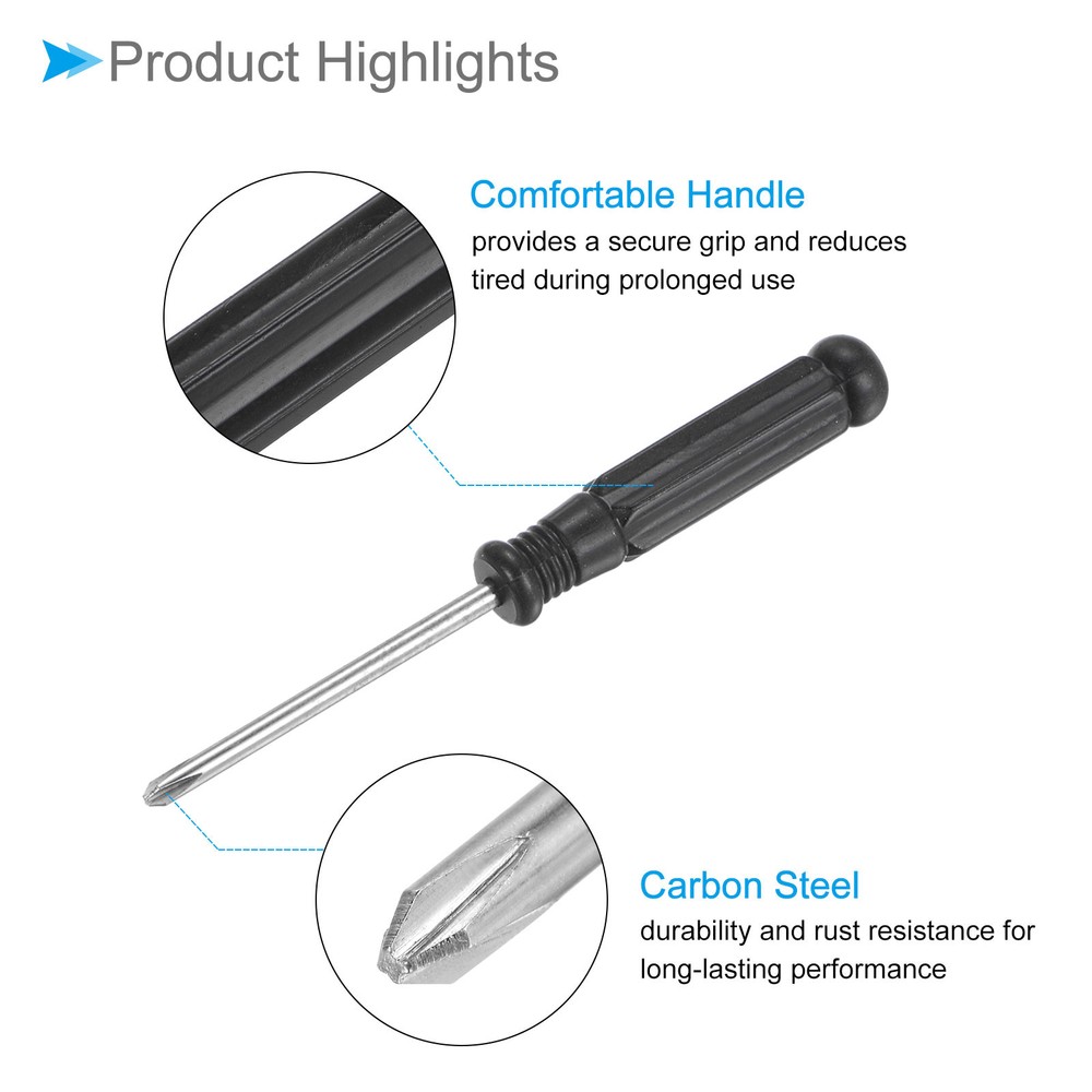 Document Attributes:* Size: 3.0mm* Total Length: 92mm / 3.15-inch* Shaft Material: Carbon SteelWhat Is Included:* 5 Pieces x Micro ScrewdriversApplications & Features:--- This screwdriver is a multifunctional tool suitable for a variety of electronic devices and appliances and can be used on laptops, computers, game consoles, pocket knives, doorbells, dishwashers, routers, and more.--- The screwdriver features a comfortable handle that provides a secure grip and reduces tired during prolonged use--- The screwdriver is made from carbon steel material ensuring strength, durability and rust resistance for long-lasting performance.Useful Tips:--- Please confirm the screwdriver size before buying. 5pcsSmall Phillips Screwdriver 3.0mm 92mm Cross Screwdriver W Black Handle Attributes: * Size: 3.0mm * Total Length: 92mm / 3.15-inch * Shaft Material: Carbon Steel What Is Included: * 5 Pieces x Micro Screwdrivers Applications & Features: --- This screwdriver is a multifunctional tool suitable for a variety of electronic devices and appliances and can be used on laptops, computers, game consoles, pocket knives, doorbells, dishwashers, routers, and more. --- The screwdriver features a comfortable handle that provides a secure grip and reduces tired during prolonged use --- The screwdriver is made from carbon steel material ensuring strength, durability and rust resistance for long-lasting performance. Useful Tips: --- Please confirm the screwdriver size before buying. Hot Item Payment 1.We accept eBay payment . 2.Payment must be received within 7 business days of auction closing. Shipping 1.We ship to your eBay or Paypal address. Please make sure your eBay and Paypal address is correct before you pay. 2.Items will be shipped within 1-3 business day when we received payment. 3.Delivery time depends on destination and other factors. Description Policy 5pcsSmall Phillips Screwdriver 3.0mm 92mm Cross Screwdriver W Black Handle Attributes: * Size: 3.0mm * Total Length: 92mm / 3.15-inch * Shaft Material: Carbon Steel What Is Included: * 5 Pieces x Micro Screwdrivers Applications & Features: --- This screwdriver is a multifunctional tool suitable for a variety of electronic devices and appliances and can be used on laptops, computers, game consoles, pocket knives, doorbells, dishwashers, routers, and more. --- The screwdriver features a comfortable handle that provides a secure grip and reduces tired during prolonged use --- The screwdriver is made from carbon steel material ensuring strength, durability and rust resistance for long-lasting performance. Useful Tips: --- Please confirm the screwdriver size before buying. Hot Item Payment 1.We accept eBay payment . 2.Payment must be received within 7 business days of auction closing. Shipping 1.We ship to your eBay or Paypal address. Please make sure your eBay and Paypal address is correct before you pay. 2.Items will be shipped within 1-3 business day when we received payment. 3.Delivery time depends on destination and other factors.