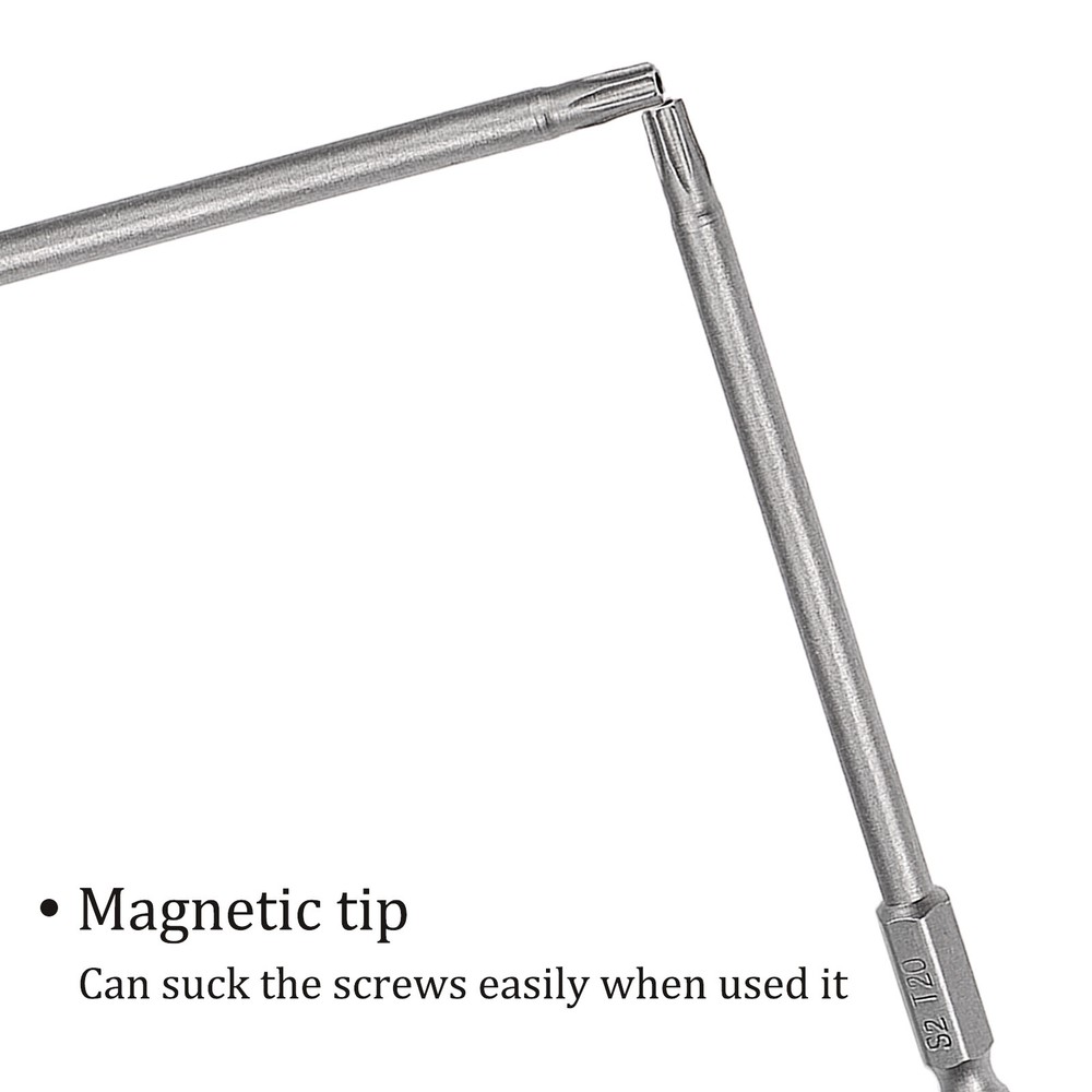Document APPLICATION- Fit for electric screwdriver, manual screwdriver, power drill and other pneumatic or power tools with 1/4" hex holder. Widely used in cars, trucks, engines, motorcycles, computers, cable boxes and other applications.ABOUT THIS PRODUCT- Made of S2 alloy steel, which is a commonly used material in hardware with high hardness.- Sandblasting surface, corrosion resistance and durability.- Magnetic tip, can suck the screws easily when used it.- The hole in the center of each bit causes it to be tamper resistant, designed to prevent Cam-Out the hex bits clicks onto most standard sockets, screwdrivers, drill/driver kits & Power tools attachments.- Exquisite workmanship, each edge can be accurately locked screws, no damage to the screw, and the screwdriver head.SPECIFICATIONBit Type: T15 Shank: 1/4“ Hex ShankLength: 100mm / 4”Material: S2 Alloy SteelFinish: SandblastingPackage: 5 packs of Tamper Proof Torx Screwdriver BitTAKE NOTICE OF- Do not turn the screws with mismatched size to avoid damage to both the screw and the drill. 5pcs Torx Screwdriver Bit 4 Inch x H1/4 x T20 Magnetic Security Power Tool APPLICATION - Fit for electric screwdriver, manual screwdriver, power drill and other pneumatic or power tools with 1/4" hex holder. Widely used in cars, trucks, engines, motorcycles, computers, cable boxes and other applications. ABOUT THIS PRODUCT - Made of S2 alloy steel, which is a commonly used material in hardware with high hardness. - Sandblasting surface, corrosion resistance and durability. - Magnetic tip, can suck the screws easily when used it. - The hole in the center of each bit causes it to be tamper resistant, designed to prevent Cam-Out the hex bits clicks onto most standard sockets, screwdrivers, drill/driver kits & Power tools attachments. - Exquisite workmanship, each edge can be accurately locked screws, no damage to the screw, and the screwdriver head. SPECIFICATION Bit Type: T15 Shank: 1/4“ Hex Shank Length: 100mm / 4” Material: S2 Alloy Steel Finish: Sandblasting Package: 5 packs of Tamper Proof Torx Screwdriver Bit TAKE NOTICE OF - Do not turn the screws with mismatched size to avoid damage to both the screw and the drill. Hot Item Payment 1.We accept eBay payment . 2.Payment must be received within 7 business days of auction closing. Shipping 1.We ship to your eBay or Paypal address. Please make sure your eBay and Paypal address is correct before you pay. 2.Items will be shipped within 1-3 business day when we received payment. 3.Delivery time depends on destination and other factors. Description Policy 5pcs Torx Screwdriver Bit 4 Inch x H1/4 x T20 Magnetic Security Power Tool APPLICATION - Fit for electric screwdriver, manual screwdriver, power drill and other pneumatic or power tools with 1/4" hex holder. Widely used in cars, trucks, engines, motorcycles, computers, cable boxes and other applications. ABOUT THIS PRODUCT - Made of S2 alloy steel, which is a commonly used material in hardware with high hardness. - Sandblasting surface, corrosion resistance and durability. - Magnetic tip, can suck the screws easily when used it. - The hole in the center of each bit causes it to be tamper resistant, designed to prevent Cam-Out the hex bits clicks onto most standard sockets, screwdrivers, drill/driver kits & Power tools attachments. - Exquisite workmanship, each edge can be accurately locked screws, no damage to the screw, and the screwdriver head. SPECIFICATION Bit Type: T15 Shank: 1/4“ Hex Shank Length: 100mm / 4” Material: S2 Alloy Steel Finish: Sandblasting Package: 5 packs of Tamper Proof Torx Screwdriver Bit TAKE NOTICE OF - Do not turn the screws with mismatched size to avoid damage to both the screw and the drill. Hot Item Payment 1.We accept eBay payment . 2.Payment must be received within 7 business days of auction closing. Shipping 1.We ship to your eBay or Paypal address. Please make sure your eBay and Paypal address is correct before you pay. 2.Items will be shipped within 1-3 business day when we received payment. 3.Delivery time depends on destination and other factors.