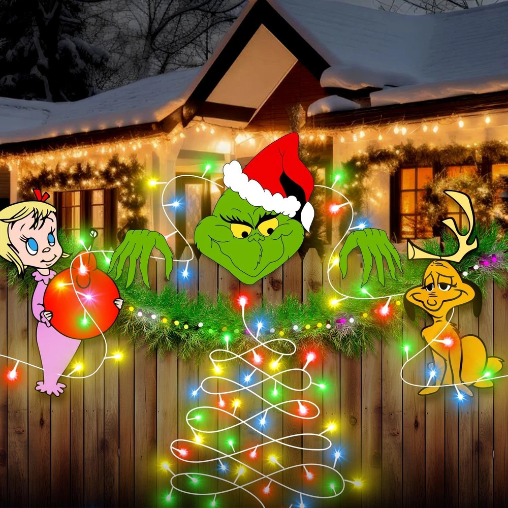【valuable pack】christmas decorations with lights: you will receive 5pcs christmas decorations fence peekers with led lights, including a length of 2pc 16.5 feet led lights. soft warm led lights add a fun and festive feeling, and bring a strong warm festive atmosphere to your home, perfect for outdoor or indoor christmas decorations. 【material】: our christmas decorations outdoor fence yard signs are printed on corrugated plastic, not easily damaged or faded. the string lights are powered by 2 x aa batteries(not included), no plug needed, low voltage, and safe to touch. these outside signs with lights will stand up to most weather conditions, are durable for outdoor use, and can last the whole holiday season. please prevent the battery box from raining. 【wide application】: these christmas yard signs with string lights are perfect for christmas decoration outdoors and are ideal decor for fence, yard, garden, wall, fireplace, window, patio, porch, etc, it is also a perfect christmas tree topper choice. besides, it can be given as a nice christmas gift for your family and neighbors. 【easy to assemble】: Each Christmas sign has two plastic stakes and foam glue, you can use the foam glue to stick on the back of the signs and paste it where you want, or insert the plastic stakes into the hole of the sign. The Christmas string lights can be bent to any shape you want. You can insert the Christmas sign anywhere you want, then put the string on the signs. 【service】: we not only achieve the perfect christmas decorations outdoor fence peeker with led lights products, but we also will not slack in after-sales service, we will provide you with the most complete after-sales service if you are not satisfied with the product, and we will try our best to solve the problem.