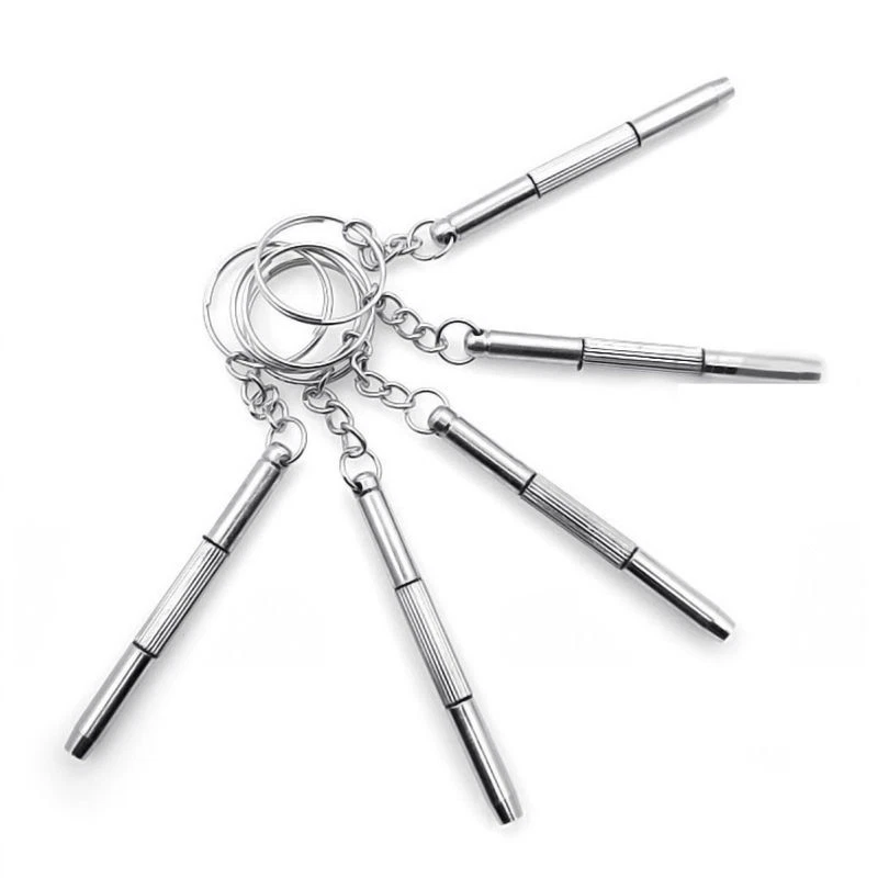 100% Brand new and high quality This multifunctional screwdriver is applied for repairing glasses and watch widely. The repair tool include: Flat head screwdriver / Phillips screwdriver / Star nut driver Can be used to repair or screw up screws for eyeglasses, sunglasses, watches, cellphones and other precise devices With a keychain, portable and easy to hang Material: Aluminum steel Total length (without Keychain): Approx. 6cm Keychain diameter: Approx. 2.3cm Package includes: 5 x Eyeglass Screwdriver Repair Kit Preview: