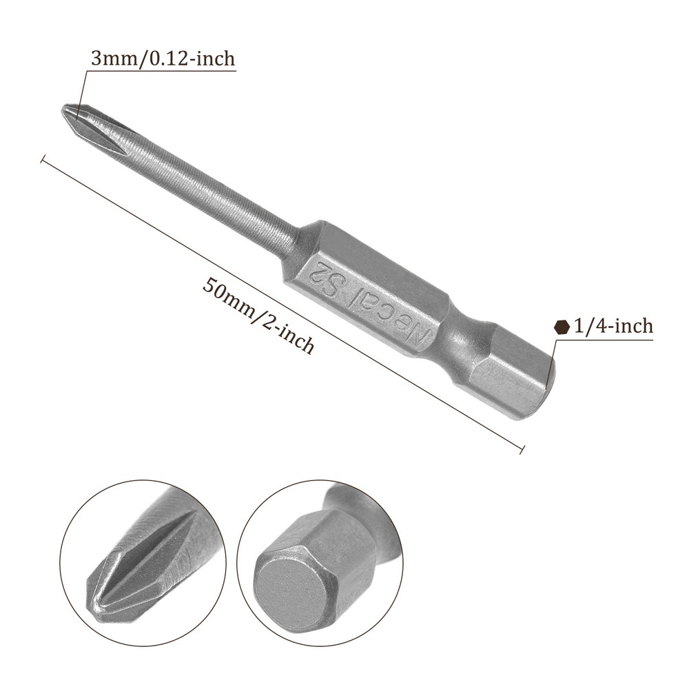 Document APPLICATION- Fit for electric screwdriver, manual screwdriver, power drill and other pneumatic or power tools with 1/4" hex holder. Widely used in cars, trucks, engines, motorcycles, computers, cable boxes and other applications.ABOUT THIS PRODUCT- Made of S2 alloy steel, which is a commonly used material in hardware with high hardness.- Sandblasting surface, corrosion resistance and durability.- Magnetic tip, can suck the screws easily when used it.- Exquisite workmanship, each edge can be accurately locked screws, no damage to the screw, and the screwdriver head.SPECIFICATIONBit Type: PH0Tip Diameter: 3mm / 0.12“Shank: 1/4“ Hex ShankLength: 50mm / 2”Material: S2 Alloy SteelFinish: SandblastingPackage: 5 packs of Cross Head Screwdriver BitTAKE NOTICE OF- Do not turn the screws with mismatched size to avoid damage to both the screw and the drill. 5pcs Phillips Screwdriver Bit - [2" x H1/4 x 3mm x PH0] Magnetic for Power Tool APPLICATION - Fit for electric screwdriver, manual screwdriver, power drill and other pneumatic or power tools with 1/4" hex holder. Widely used in cars, trucks, engines, motorcycles, computers, cable boxes and other applications. ABOUT THIS PRODUCT - Made of S2 alloy steel, which is a commonly used material in hardware with high hardness. - Sandblasting surface, corrosion resistance and durability. - Magnetic tip, can suck the screws easily when used it. - Exquisite workmanship, each edge can be accurately locked screws, no damage to the screw, and the screwdriver head. SPECIFICATION Bit Type: PH0 Tip Diameter: 3mm / 0.12“ Shank: 1/4“ Hex Shank Length: 50mm / 2” Material: S2 Alloy Steel Finish: Sandblasting Package: 5 packs of Cross Head Screwdriver Bit TAKE NOTICE OF - Do not turn the screws with mismatched size to avoid damage to both the screw and the drill. Hot Item Payment 1.We accept eBay payment . 2.Payment must be received within 7 business days of auction closing. Shipping 1.We ship to your eBay or Paypal address. Please make sure your eBay and Paypal address is correct before you pay. 2.Items will be shipped within 1-3 business day when we received payment. 3.Delivery time depends on destination and other factors. Description Policy 5pcs Phillips Screwdriver Bit - [2" x H1/4 x 3mm x PH0] Magnetic for Power Tool APPLICATION - Fit for electric screwdriver, manual screwdriver, power drill and other pneumatic or power tools with 1/4" hex holder. Widely used in cars, trucks, engines, motorcycles, computers, cable boxes and other applications. ABOUT THIS PRODUCT - Made of S2 alloy steel, which is a commonly used material in hardware with high hardness. - Sandblasting surface, corrosion resistance and durability. - Magnetic tip, can suck the screws easily when used it. - Exquisite workmanship, each edge can be accurately locked screws, no damage to the screw, and the screwdriver head. SPECIFICATION Bit Type: PH0 Tip Diameter: 3mm / 0.12“ Shank: 1/4“ Hex Shank Length: 50mm / 2” Material: S2 Alloy Steel Finish: Sandblasting Package: 5 packs of Cross Head Screwdriver Bit TAKE NOTICE OF - Do not turn the screws with mismatched size to avoid damage to both the screw and the drill. Hot Item Payment 1.We accept eBay payment . 2.Payment must be received within 7 business days of auction closing. Shipping 1.We ship to your eBay or Paypal address. Please make sure your eBay and Paypal address is correct before you pay. 2.Items will be shipped within 1-3 business day when we received payment. 3.Delivery time depends on destination and other factors.