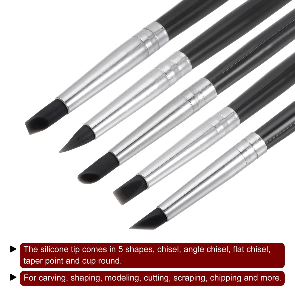 Document 1. The durable silicone tip gives you a combination of control and precision. The smooth surface of the handle is comfortable to hold in the hand, and will not make you feel tired with long-term drawing.2. The silicone tip comes in 5 shapes, including cup chisel, angle chisel, flat chisel, taper point and cup round. Each one has different sizes and can be used for carving, shaping, modeling, cutting, scraping, chipping and more.3. Clay sculpting tools are suitable for oil painting, pastel scrubbing, clay sculpture, clay sculpture, etc. Suitable for home and outdoor use.4. The clay sculpting shaper is easy to clean and reuse, the soft silicone tip is elastic, not easy to deform, and has a long service life.5. The silicone rubber shaper can be simply wiped clean or washed with water. 5pcs Silicone Clay Sculpting Tool Clay Sculpting Rubber Tip Shaping Pen Black 1. The durable silicone tip gives you a combination of control and precision. The smooth surface of the handle is comfortable to hold in the hand, and will not make you feel tired with long-term drawing. 2. The silicone tip comes in 5 shapes, including cup chisel, angle chisel, flat chisel, taper point and cup round. Each one has different sizes and can be used for carving, shaping, modeling, cutting, scraping, chipping and more. 3. Clay sculpting tools are suitable for oil painting, pastel scrubbing, clay sculpture, clay sculpture, etc. Suitable for home and outdoor use. 4. The clay sculpting shaper is easy to clean and reuse, the soft silicone tip is elastic, not easy to deform, and has a long service life. 5. The silicone rubber shaper can be simply wiped clean or washed with water. Hot Item Payment 1.We accept eBay payment . 2.Payment must be received within 7 business days of auction closing. Shipping 1.We ship to your eBay or Paypal address. Please make sure your eBay and Paypal address is correct before you pay. 2.Items will be shipped within 1-3 business day when we received payment. 3.Delivery time depends on destination and other factors. Description Policy 5pcs Silicone Clay Sculpting Tool Clay Sculpting Rubber Tip Shaping Pen Black 1. The durable silicone tip gives you a combination of control and precision. The smooth surface of the handle is comfortable to hold in the hand, and will not make you feel tired with long-term drawing. 2. The silicone tip comes in 5 shapes, including cup chisel, angle chisel, flat chisel, taper point and cup round. Each one has different sizes and can be used for carving, shaping, modeling, cutting, scraping, chipping and more. 3. Clay sculpting tools are suitable for oil painting, pastel scrubbing, clay sculpture, clay sculpture, etc. Suitable for home and outdoor use. 4. The clay sculpting shaper is easy to clean and reuse, the soft silicone tip is elastic, not easy to deform, and has a long service life. 5. The silicone rubber shaper can be simply wiped clean or washed with water. Hot Item Payment 1.We accept eBay payment . 2.Payment must be received within 7 business days of auction closing. Shipping 1.We ship to your eBay or Paypal address. Please make sure your eBay and Paypal address is correct before you pay. 2.Items will be shipped within 1-3 business day when we received payment. 3.Delivery time depends on destination and other factors.