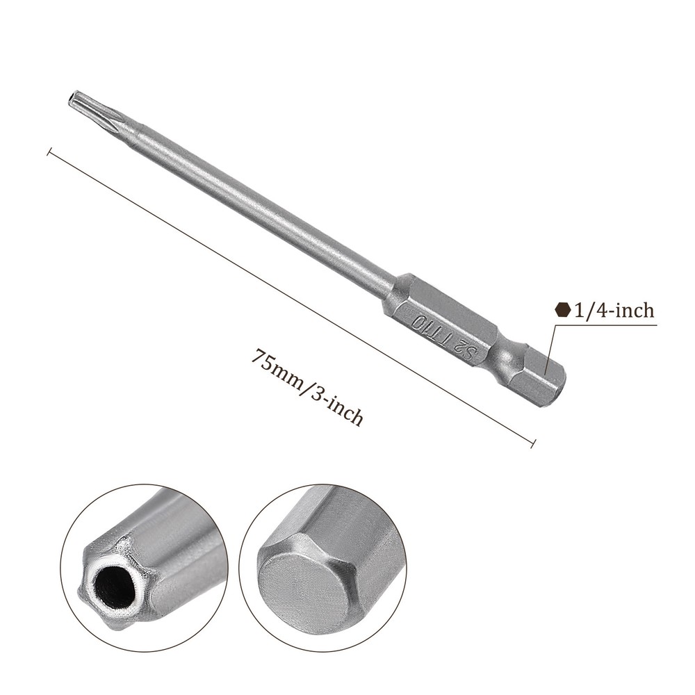 Document APPLICATION- Fit for electric screwdriver, manual screwdriver, power drill and other pneumatic or power tools with 1/4" hex holder. Widely used in cars, trucks, engines, motorcycles, computers, cable boxes and other applications.ABOUT THIS PRODUCT- Made of S2 alloy steel, which is a commonly used material in hardware with high hardness.- Sandblasting surface, corrosion resistance and durability.- Magnetic tip, can suck the screws easily when used it.- The hole in the center of each bit causes it to be tamper resistant, designed to prevent Cam-Out the hex bits clicks onto most standard sockets, screwdrivers, drill/driver kits & Power tools attachments.- Exquisite workmanship, each edge can be accurately locked screws, no damage to the screw, and the screwdriver head.SPECIFICATIONBit Type: T15 Shank: 1/4“ Hex ShankLength: 75mm / 3”Material: S2 Alloy SteelFinish: SandblastingPackage: 5 packs of Tamper Proof Torx Screwdriver BitTAKE NOTICE OF- Do not turn the screws with mismatched size to avoid damage to both the screw and the drill. 5pcs Torx Screwdriver Bit - [3 Inch x H1/4 x T10] Magnetic for Power Tool Use APPLICATION - Fit for electric screwdriver, manual screwdriver, power drill and other pneumatic or power tools with 1/4" hex holder. Widely used in cars, trucks, engines, motorcycles, computers, cable boxes and other applications. ABOUT THIS PRODUCT - Made of S2 alloy steel, which is a commonly used material in hardware with high hardness. - Sandblasting surface, corrosion resistance and durability. - Magnetic tip, can suck the screws easily when used it. - The hole in the center of each bit causes it to be tamper resistant, designed to prevent Cam-Out the hex bits clicks onto most standard sockets, screwdrivers, drill/driver kits & Power tools attachments. - Exquisite workmanship, each edge can be accurately locked screws, no damage to the screw, and the screwdriver head. SPECIFICATION Bit Type: T15 Shank: 1/4“ Hex Shank Length: 75mm / 3” Material: S2 Alloy Steel Finish: Sandblasting Package: 5 packs of Tamper Proof Torx Screwdriver Bit TAKE NOTICE OF - Do not turn the screws with mismatched size to avoid damage to both the screw and the drill. Hot Item Payment 1.We accept eBay payment . 2.Payment must be received within 7 business days of auction closing. Shipping 1.We ship to your eBay or Paypal address. Please make sure your eBay and Paypal address is correct before you pay. 2.Items will be shipped within 1-3 business day when we received payment. 3.Delivery time depends on destination and other factors. Description Policy 5pcs Torx Screwdriver Bit - [3 Inch x H1/4 x T10] Magnetic for Power Tool Use APPLICATION - Fit for electric screwdriver, manual screwdriver, power drill and other pneumatic or power tools with 1/4" hex holder. Widely used in cars, trucks, engines, motorcycles, computers, cable boxes and other applications. ABOUT THIS PRODUCT - Made of S2 alloy steel, which is a commonly used material in hardware with high hardness. - Sandblasting surface, corrosion resistance and durability. - Magnetic tip, can suck the screws easily when used it. - The hole in the center of each bit causes it to be tamper resistant, designed to prevent Cam-Out the hex bits clicks onto most standard sockets, screwdrivers, drill/driver kits & Power tools attachments. - Exquisite workmanship, each edge can be accurately locked screws, no damage to the screw, and the screwdriver head. SPECIFICATION Bit Type: T15 Shank: 1/4“ Hex Shank Length: 75mm / 3” Material: S2 Alloy Steel Finish: Sandblasting Package: 5 packs of Tamper Proof Torx Screwdriver Bit TAKE NOTICE OF - Do not turn the screws with mismatched size to avoid damage to both the screw and the drill. Hot Item Payment 1.We accept eBay payment . 2.Payment must be received within 7 business days of auction closing. Shipping 1.We ship to your eBay or Paypal address. Please make sure your eBay and Paypal address is correct before you pay. 2.Items will be shipped within 1-3 business day when we received payment. 3.Delivery time depends on destination and other factors.
