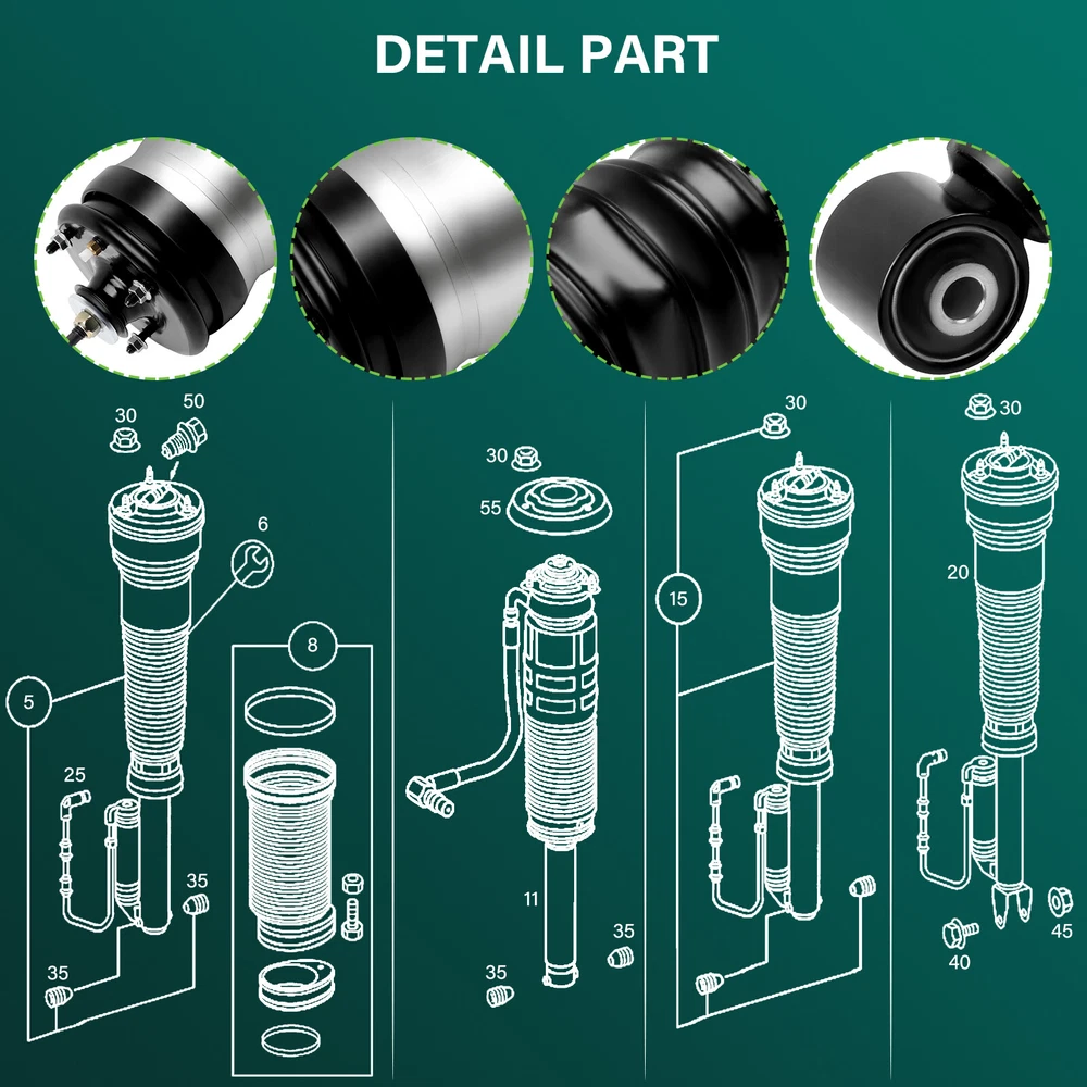 *Compatibility Chart 1, You can distinguish specific model of an automobile by VIN(Vehicle Identification Number). 2, VIN(Vehicle Identification Number) consists of total 17 English letters and arabic digits. 3, VIN does not include the letters I (i), O (o), and Q (q) (to avoid confusion with numerals 1 and 0). Range Rover Sport Excludes VDS Model With Electrical Plug on Mounting Base 2010-2014 5x Air Suspension Struts + Compressor Fits Range Rover Sport, Land Rover LR4 LR3 *Compatibility Chart 1, You can distinguish specific model of an automobile by VIN(Vehicle Identification Number). 2, VIN(Vehicle Identification Number) consists of total 17 English letters and arabic digits. 3, VIN does not include the letters I (i), O (o), and Q (q) (to avoid confusion with numerals 1 and 0). Range Rover Sport Excludes VDS Model With Electrical Plug on Mounting Base 2010-2014 GT Limited Edition 3 Sport Utility 4-Door 5.0L 2012 GT Limited Edition Sport Utility 4-Door 5.0L 2011 2013 HSE Lux Sport Utility 4-Door 5.0L 2012-2013 HSE Sport Utility 4-Door 4.4L 2006-2009 HSE Sport Utility 4-Door 5.0L 2010-2013 LE Sport Utility 4-Door 4.2L 2008 Supercharged Sport Utility 4-Door 4.2L 2006-2009 Land Rover LR4 Base Sport Utility 4-Door 3.0L 2014-2016 Base Sport Utility 4-Door 5.0L 2011-2013 HSE Lux Sport Utility 4-Door 3.0L 2014-2016 HSE Lux Sport Utility 4-Door 5.0L 2012-2013 HSE Sport Utility 4-Door 3.0L 2014-2016 HSE Sport Utility 4-Door 5.0L 2010-2013 SE Sport Utility 4-Door 5.0L 2010-2013 V8 Sport Utility 4-Door 5.0L 2010 Land Rover LR3 Base Sport Utility 4-Door 4.0L 2006 HSE Lux Sport Utility 4-Door 4.4L 2009 HSE Sport Utility 4-Door 4.4L 2005-2009 SE Sport Utility 4-Door 4.0L 2005-2009 SE Sport Utility 4-Door 4.4L 2005-2009 *Air Suspension Structure: 1 Front Rh Air Spring Damper Module 2 Front Rh Height Sensor 3 Air Suspension Control Module 4 Air Suspension Control Switch 5 Rear Rh Height Sensor 6 Rear Rh Air Spring Damper Module 7 Air Supply Unit Silencer 8 Rear Lh Air Spring Damper Module 9 Air Fitter 10 Rear Valve Block 11 Rear Lh Height Sensor 12 Upper Acoustic Cover 13 Lower Acoustic Cover 14 Air Supply Unit 15 Reservoir Valve Block 16 Air Reservoir 17 Front Lh Height Sensor 18 Front Lh Air Spring Damper Module 19 Front Valve Wock * Generation & Evolution: Land Rover Discovery First generation (Project Jay; 1989-1998) Second generation (LR2/L318; 1998-2004) Third generation (LR3/L319; 2004-2009) Fourth generation (LR4/L319; 2009-2016) Fifth generation (L462; 2017-present) Range Rover Sport First generation (L320; 2005-2013) Second generation (L494; 2013-present ) SVR (2015 Pre-Facelift) SVR (2018 Facelift) *Platform Drive Layout : Front Engine-Four Wheel Drive Layout *Air Suspension System: The Discovery LR3 LR4 own fully independent air suspension with cross-linking when off-road and the twin-range transfer gearbox with an electronic infinitely variable locking centre differential. As before, a similar locking rear differential is available. The Terrain Response system remains but with two new features – the 'Sand' mode incorporates a new traction control mode to prevent loss of traction when starting off and stopping in soft sand, and the 'Rock Crawl' mode gains a feature that applies gentle brake pressure at low (less than walking pace) speeds to improve grip and stability on slick rock. Range Rover Sport air suspension system gives the driver the option of three ride height settings including a standard ride height of 172 mm (6.8 in), an off-road height of 227 mm (8.9 in) and a lowered access mode. There is also an extra height available which is accessed by holding the respective button for when the off-road ride height is not enough. When the vehicle bellies out, its control system will sense weight being lessened on the air springs and the ride height is automatically raised to the suspensions greatest articulation. The cross-link aspect of the suspension system, which debuted on the L322 Range Rover in 2002, results in better off-road performance by electronically operating valves in pneumatic lines which link adjacent air springs. In the event of a wheel on one side being raised when travelling off-road, the pneumatic valves are opened and the adjacent wheel is forced down, simulating the action of a live axle setup. *Removal Guideline: Caution: Damage to the vehicle and air suspension system can be incurred if work is carried out in a manner other than specified in the instructions or in a different sequence. 1.To avoid the possibility of short circuits while working with electric components consult your owner's manual on how to disconnect your battery. 2.Consult your vehicle owner's manual, service manual, or car dealer for the correct jacking points on your vehicle and for additional care, safety and maintenance instructions. Under no circumstances should any work be completed underneath the vehicle if it is not adequately supported, as serious injuries and death can occur. 1.Remove rear wheel to expose the rear air strut.(picture 1) 2.Loosen and remove the lower mount nut. Support the air strut and remove the lower mount bolt.(pictures 2,3) 3.Loosen and remove the three(3)top mounting nuts.(picture 4) 4.Carefully lower the air strut to gain access to the air line. Unthread the air fitting.(picture 5) 5.Remove the air strut from the vehicle.(picture 6) 6.Remove the air line fitting from the air hose and discard. To remove the air line fitting,remove the collet and the remaining fitting will slide off of air hose.(picture 7) 7.Removal complete. *Installation Guideline: 1.Place new air strut onto vehicle, oriented in the same position as strut previously removed. 2.Insert the air line into the voss fitting, making sure it is firmly seated and will not pull back out.(picture 8) 3.Install and tighten the three(3)top mounting nuts to manufacturer's specification.(picture 9) 4.Support the air strut and install the lower mount bolt. Re-install and tighten the lower mount nut to manufacturer'