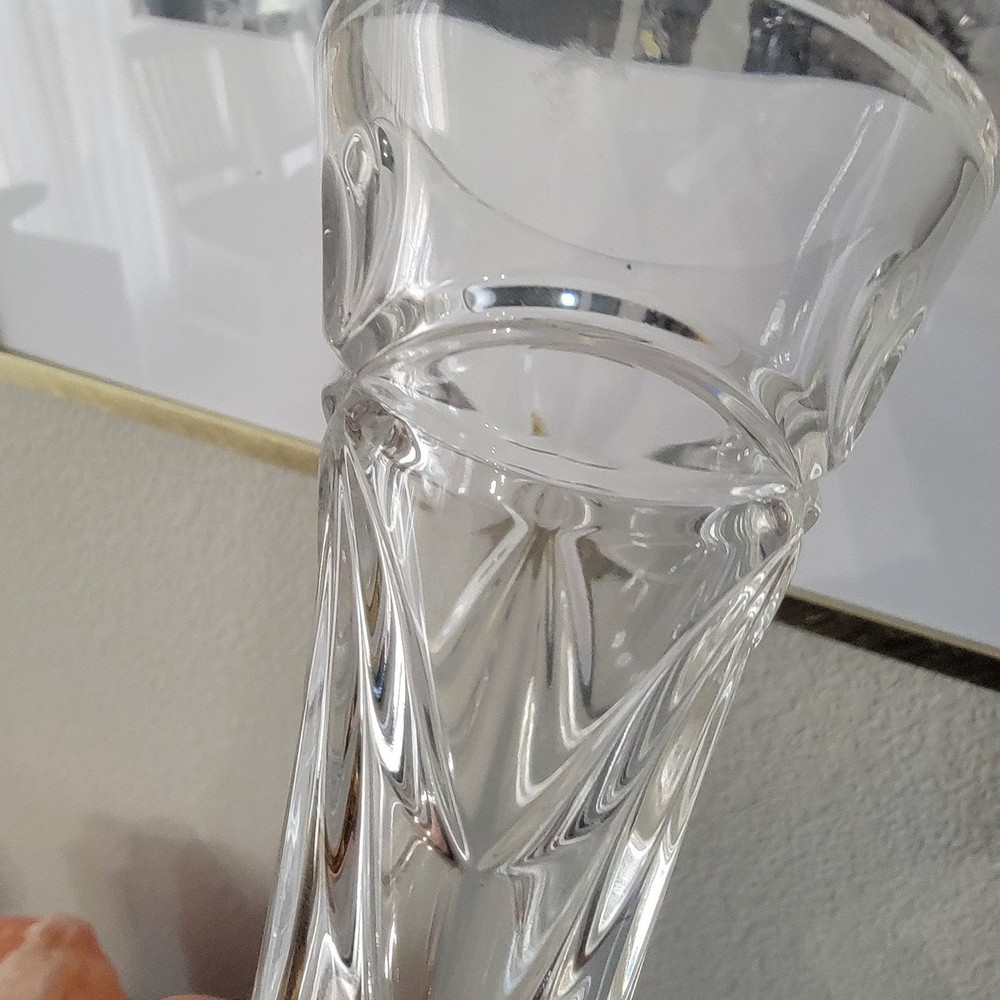 This beautiful 6 1/2" Waterford vase is perfect for displaying flowers or other decorative items. The vase features a stunning "LOVE" pattern, with a contemporary style that is sure to impress. The vase is an original Waterford piece, with the etched Waterford Seahorse Mark signature indicating its authenticity. Crafted from high-quality crystal, this vase is both elegant and durable. The glossy finish and hand-blown glass production technique make it a unique and valuable addition to any collection. Whether you're looking for a special gift or a addition to your own home decor, this Waterford vase is sure to delight.