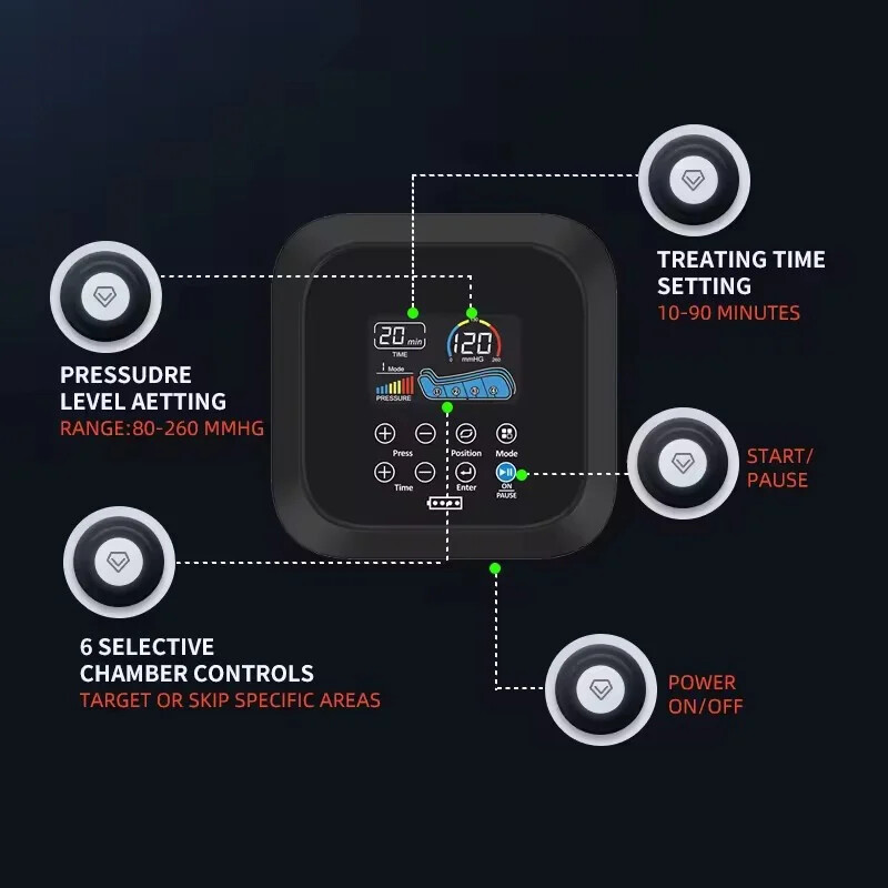 Details Images 1. ODM and OEM service available. 2. Factory direct price , competitive for distributor. 3. Professional pressure therapy apparatus supplier. 4. Quality gurantee: All Items Are Returnable and Exchangeable. 5. The top TPU materail for sleeves. 6. Pump silent operation with extreme low noise. 7. Portable and easy for home use, Mini Massager. 8. Elegant touch panel easy operation and direct view. 9. Factory ISO13485 certified, TUV CE approved. Our Advantages
