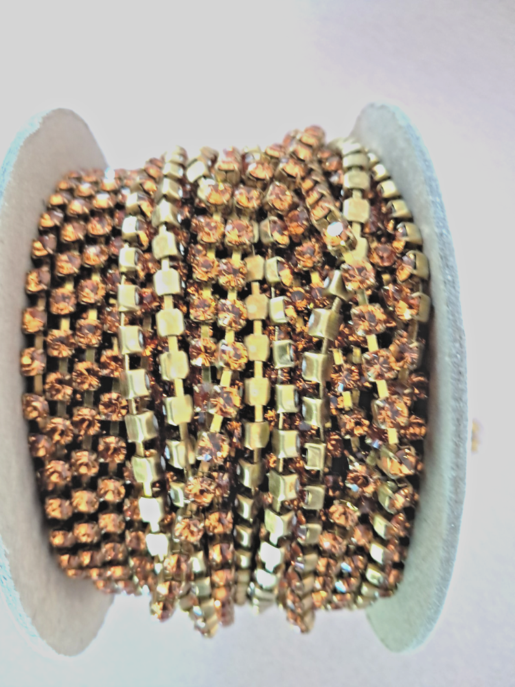 6 FEET SWAROVSKI RHINESTONE CHAIN, 32 PP, TOPAZ/BRASS #1028