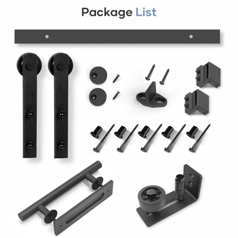 is a company specializing in barn door products.We have advanced production technology and an excellent after-sales service team.We are committed to providing customers with better products and service. Barn Door Hardware Kit : High quality aluminium,fine black powder coated surface,anti-corrosion ensures years of beauty and longevity.Slide Like Butter ,Ball bearing roller slide smoothly and quietly,Tested Beyond 100,000 Rolls.All items have been multiple inspected before on market. Widely Apply: Our hardware suitable for both modern and rustic style,you can apply for aisle,garage,kitchen,bedroom and so on. Reminds: Fit up to 36" Wide Door;Fit Door Thickness 1-3/8" ~ 1-3/4"(35~45mm);Door Weight Capacity 220lbs. Package Includes:(2)3ft Rail,(5)Spacer,(2)Rollers,(2)Door Stops,(1)Floor Guide,(1)12inch Handle Set.NOT INCLUDE DOOR Easy Install: We provide step-by-step graphic & text installation parsing manual,you can also get soft online copy and professional installation guide from our online service. 24 Hours Stand By: specialize in sliding door and hardware many years,if there anything missed or broken,pls let us know,we are whole day online to solve your problem.