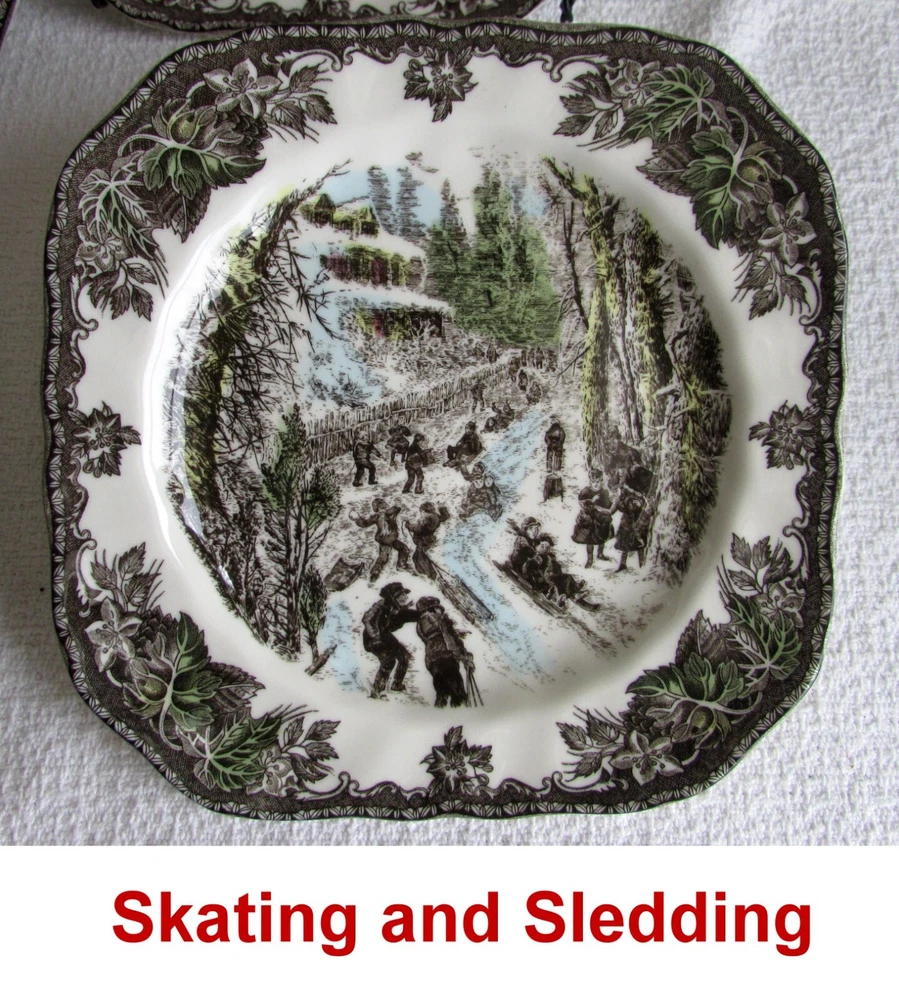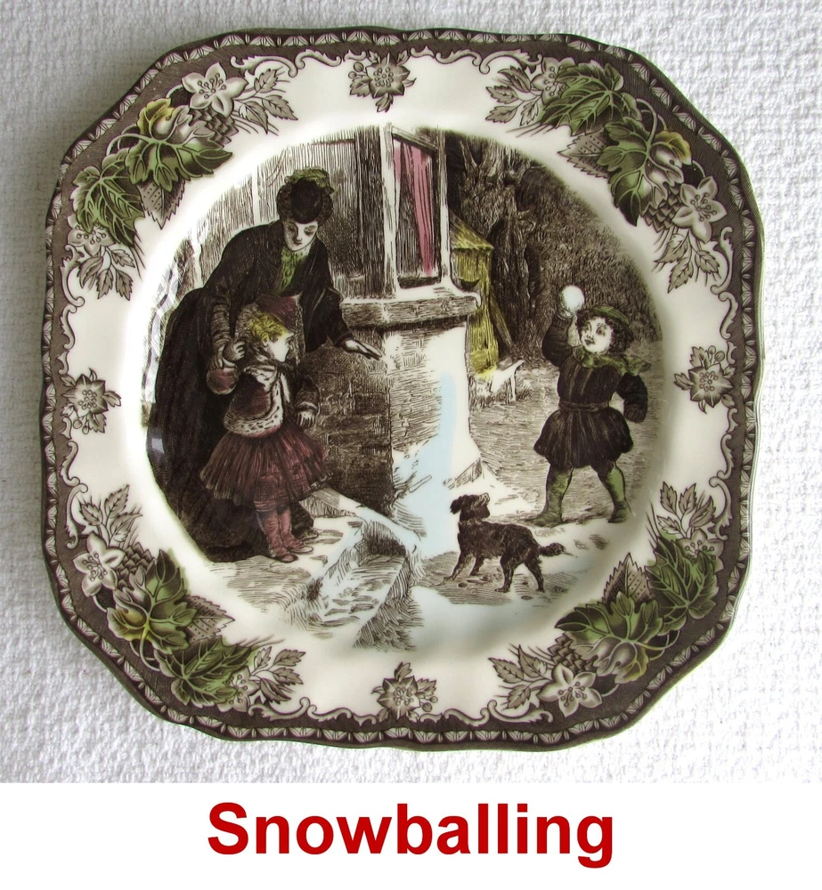 Complete Set! 6 Johnson Brothers Friendly Village Christmas Square Accent Plates ~ Beautiful! 2 sets available! Buy both sets and we will refund your shipping cost! Lovely set of 6 Friendly Village Christmas square accent salad plates Set includes 6 beautiful designs... each made from a genuine antique hand engraving ** Snowballing ** Getting the Tree ** Decorating the Tree ** Hanging a Stocking ** Church in the Village ** Skating and Sledding All these patterns are now discontinued! Each measures 7 5/8"... perfect size for desserts, salads, and appetizers Excellent condition! NO cracks, crazing, or chips! Colors are clear and vibrant! Definitely gift quality! Very desirable additions to a Johnson Brothers Friendly Village collection Attractive to display or use in a vintage, shabby chic, Victorian, or farmhouse setting Please feel free to ask for additional information or photos We welcome and will personally respond to all reasonable offers... thank you! We have many other items currently listed... please take a look… thank you! LA 16