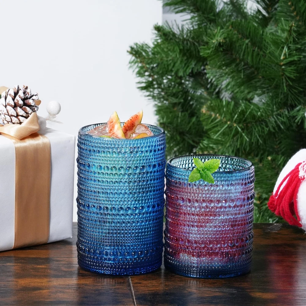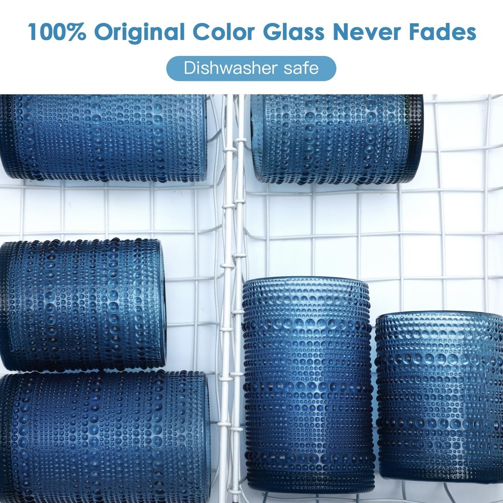 Large Hobnail Drinking Glasses Set of 6,15oz Blue Vintage Glassware,Embossed Glass Cups,Water Tumbler,Highball Glasses For Beer, Juice And Various Mixed Drinks Product Details Color: 15oz Blue Brand: KMIGRUAN MPN: 15oz UPC: Does not apply EAN: Does not apply Brand: KMIGRUAN Color: 15oz Blue Special Feature: Dishwasher safe Style: Retro Theme: Christmas, Holiday, Birthday Brand: KMIGRUAN Color: 15oz Blue Special Feature: Dishwasher safe Style: Retro Theme: Christmas, Holiday, Birthday Recommended Uses For Product: Home Party Included Components: Straw Specific Uses For Product: Cold Drinks Shape: Round Pattern: Hobnail Product Care Instructions: Dishwasher Safe Age Range (Description): Adult Material Feature: Is food safe Reusability: Reusable Unit Count: 6.0 Count Product Dimensions: 3.14"W x 5"H Material Type Free: BPA Free, Lead Free Number of Items: 6 Embellishment: Beads Manufacturer: KMIGRUAN Size: Large Item Weight: 7 pounds Country of Origin: China Item model number: 15oz Date First Available: September 1, 2024 PACKAGE DETAILS: Includes 6 450ml exquisite cornflower blue water glasses, 6 glass straws,1 cup brush,1 straw brush.Cups are dishwasher-safe and come out sparkling clean without losing their shine or pattern. NEVER FADE: The hobnail glassware set is made of high-quality 100% original color glass, never fade, lead-free food-grade glass, safe for adults and children to use. VINTAGE DESIGN: The romantic blue color and unique embossed pattern provides a comfortable grip, making each glass a beautiful addition to daily use or special events. IDEAL GIFT CHOICE: Looking for a hostess gift, housewarming gift, Christmas present for newly weds or anyone who likes to entertain? These drinkware glasses are beautifully packaged and well made, and are sure to please everyone!