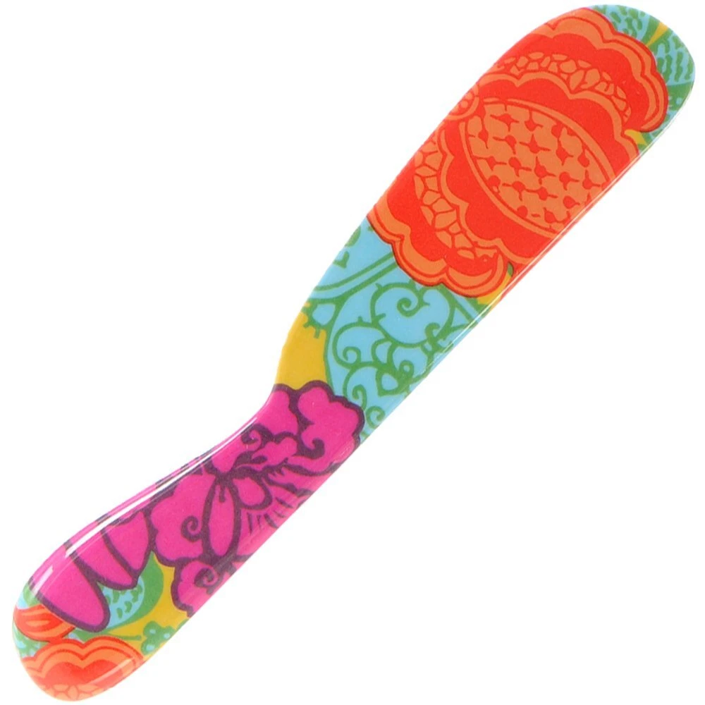 Product Description Stay ahead of the curve with a fresh look from . This set of four melamine spreaders set reinvents an everyday staple with its bright, floral designs. Can be used as cheese spreaders or butter spreaders. Constructed of lightweight high-grade melamine, these spreaders are shatter-proof and smooth edge. The glossy, glazed surface is scratch-resistant and non-absorbent. Their style and durability make them perfect for indoor or outdoor entertaining, kid-friendly, and dishwasher-safe. All pieces are non-toxic and BPA-free. Coordinate your look or playfully mix-and-match with 's myriad other lively patterns and solids. : a fresh look for a contemporary lifestyle. Set of four spreadshers included. From the Manufacturer Founded by Jackie Shapiro in 2002, is an inspired brand that elevates the ordinary to the extraordinary. 's mastery of pattern and color has enhanced a wide variety of everyday products. From the home to the street, 's iconic look and signature designs offer a sense of individualism, excitement, and pop. Always in motion, continues to expand into new product categories and grow its international presence. Celebrating "the everyday," is a colorful reminder to always Live VIVID! High quality melamine dinnerware is perfect for everyday dining and entertaining; Heavy weight and festive, dinner ware is the finest collection of plates, platters, and serving utensils Perfect for indoor and outdoor use; Melamine is great for BBQs, summer fun, entertaining, fiesta, and parties of all kinds; Very kid friendly, will not chip or crack easily Spreaders are great for spreading your favorite foods; Use with bagels, toast, cheese, crackers, and more; the gorgeous colors are so appetizing your guests won't stop talking about it Do not use in the microwave; Dishwasher safe; glazed melamine; non-absorbent; bpa-free; scratch and shatter resistant designs are created by Jackie Shapiro - iconoclast designer based in New York City; explore matching and mixing other patterns to create your personal collection