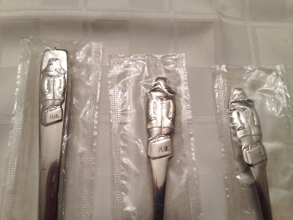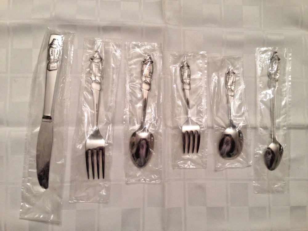Vintage 6 piece Oneida Stainless Youth/ Infant/ Toddler Silverware/ Flatware Set. The Pattern: PADDINGTON BEAR. Includes:1 Youth Knife: 6 3/4" long, 1 Youth Fork: 5 3/4" long, 1 Youth Spoon: 5 14" long, 1 Infant Feeding Spoon: 5 1/2" long, 1 Toddler Fork: 4 5/16" long, 1 Toddler Spoon: 4 3/8" long. This Set is Brand New and still enclosed in the original cellophane packages. I do not ship outside of the USA. Thanks for looking. Payment is due within 3 days of auction close Please contact me with any questions I mail the day after I receive payment unless it is the weekend or a holiday. I ONLY MAIL IN THE UNITED STATES I ONLY ACCEPT PAYPAL - BE SURE YOUR ADDRESS IS CORRECT ****** ALL SALES ARE FINAL