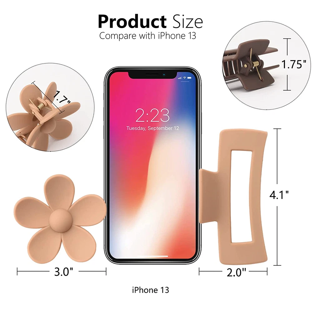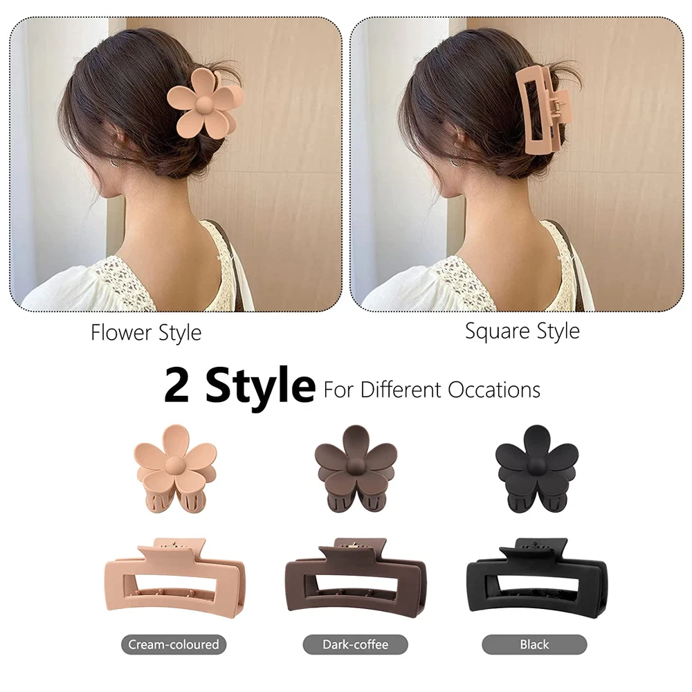 Store New Arrivals Add to Favorite View Feedback Contact Fast deliveries to the customer's home Quality customer service John Make the customers happy! 6 Pack 4.1 Inche Large Rectangle Hair Claw Clips Matte Flower Hair Clips, for Women Thin Thick Curly Hair, Neutral Colors Description DURABLE:These jumbo hair claws are made of durable plastic which painted with a matte paint. The paint doesn't scuff, peel .The reliable spring is strong andThe clips open almost 180 degrees versus which enough to help keep your hair in placeand whether dry or wet! The teeth and long enough that the keep a good grasp.They are the perfect durable material without feeling too heavy.Great for thick hair, curly or straight!! NON-SLIP:The matte coating does a good job keeping your straight smooth hair from slipping out, but without pulling or grabbing it like a rubber would.these claw clips are non-slip, so you can be assured that your hair will stay put. PEFECT SIZE: 3'' flower claw clips+4.33"Rectangle Hair Claw Clips . These clips are just the right size - hold all of your thick hair, but also would be tight enough for thinner hair.The have inner teeth for a more secure hold. These clips are the perfect size! Sturdy and thick, they held my hair in place beautifully .Just stretch the teeth around your hair and it kept it in place . Neutral Colors:These clips are so cute and they come in a good variety of colors. Beige, Dark Brown, Black. that I can pretty well match them with any outfit!They come in a Gift box that helps them not break while shipping. Great Gift for Woman. SATISFICATION:We will be happy to resolve any issue you encounter. Please feel free to contact us and your questions will be answered quickly and effectively. Product Description Style Durable,Reliable Color Neutral Colors Country of Origin China Package Dimensions 6.5 x 4.72 x 3.01 inches; 6.38 ounces Age Range (Description) Youth Hair Type All ABOUT US We offer the best prices around on high quality products. Our E-store includes media such as books, movies, music and games while offering electronics, toys, sporting apparel, clothing, tools, general home, garden items and more. SHIPPING We are always working hard to ensure your package arrives as soon as possible. Please understand that some factors like weather, high postal traffic, and the performance of shipping companies are outside of our control. We offer free shipping to the lower 48 states and ship within 2 business days of payment, usually sooner. We do not accept P.O. Boxes. Please provide a physical address. For shipping outside of the continental USA, we only use eBay's Global Shipping Program. The item is shipped to KY and then sent to the rest of the world. International customers are responsible for all duties and taxes. Continue to 'check out' to calculate costs for shipping the item to your country. Messages regarding eBay's Global Shipping Program MUST be directed at eBay EXCLUSIVELY. RETURNS We offer a 30-Day Return Policy on items in which you are not completely satisfied with. You have the option of a full-refund or an exchange of the item. No returns are available on items shipped outside of the USA PAYMENT We accept PayPal. CONTACT US This page content is yet to come Please ad us to your favorite seller and visit again later Thank You CUSTOMER SATISFACTION We try our very best to make sure every customer is completely satisfied. If there's a problem, message us! We're happy to help. WE ACCEPT