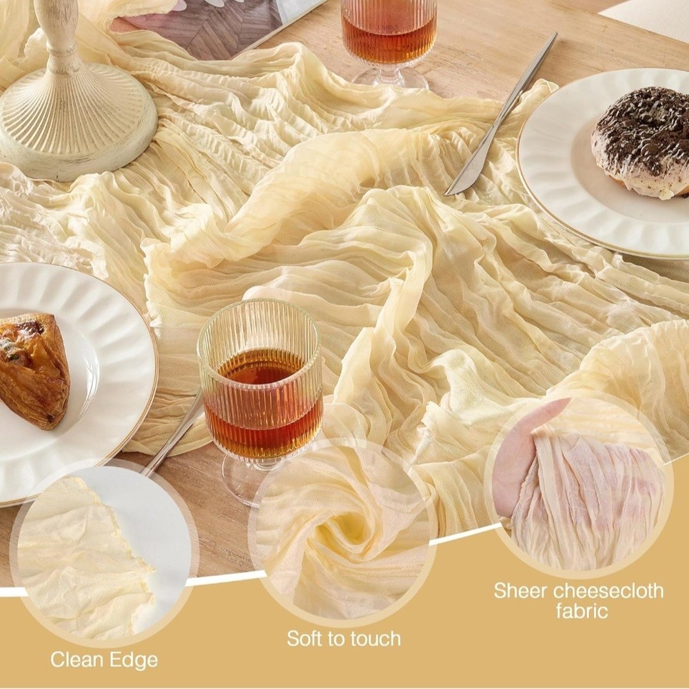 6 Pack Cheesecloth Table Runner 120 Inch Boho Rustic Gauze 10 FT Beige Cheese Cloths Table Runners Decorations for Spring Summer Birthday Party Baby Shower Wedding Holiday Home Decor #12.10.26
