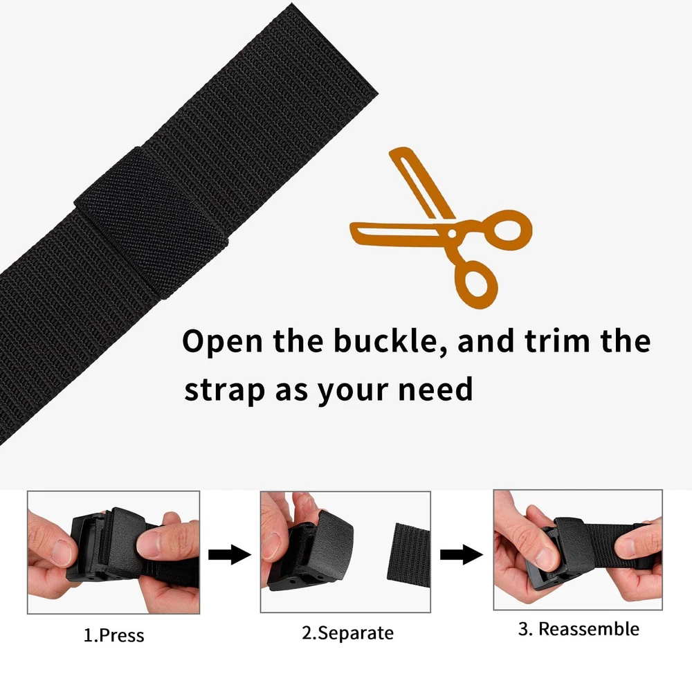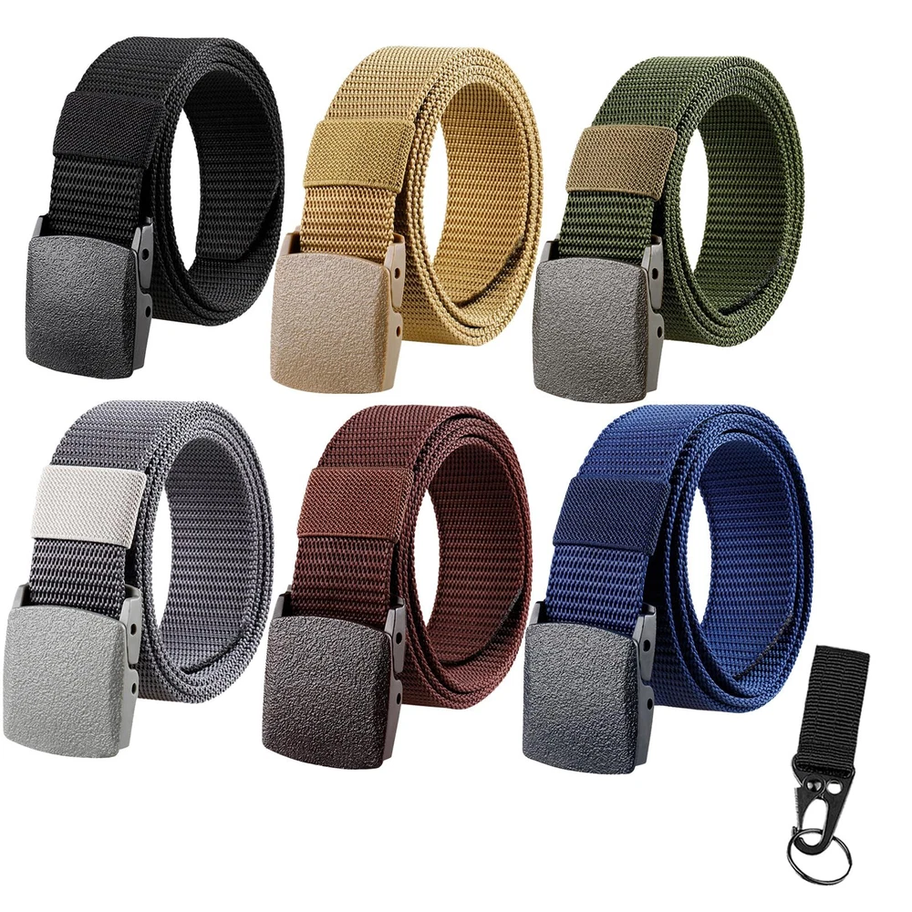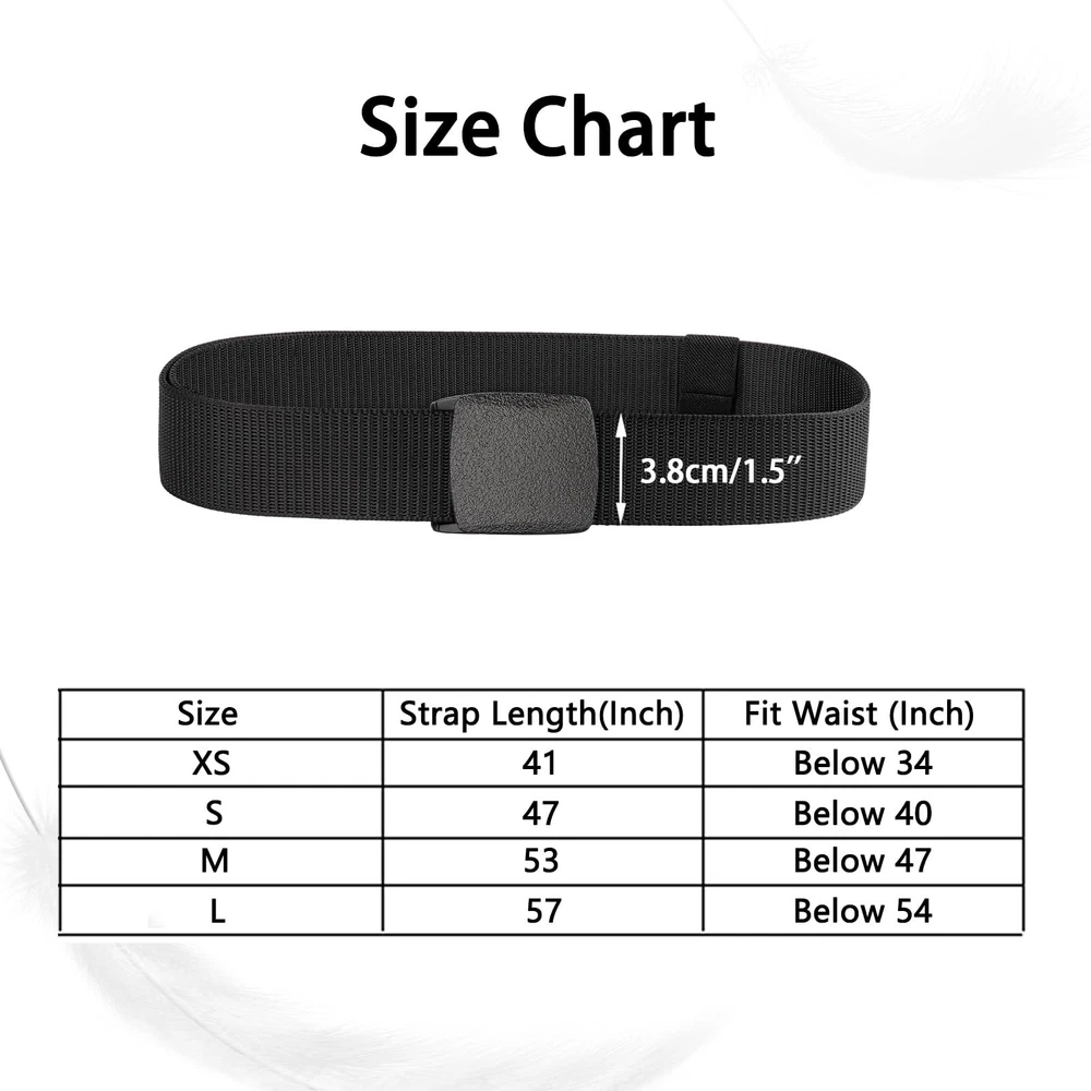 ⭐️[No Metal, No Problem] :The nylon belts are designed to be comfortable and breathable, making them perfect for work, sports and outdoor activities: hunting, hiking, fishing and etc. This non-metallic tactical belt is perfect for those with allergies to nickel or other metals. ⭐️[No Crack, No Rust] : The tactical belt is made up of nylon belt and plastic buckle which both are metal free. Compared with leather belt, our nylon tactical belt won’t crack or distortion. Compared with metal buckle, plastic buckle is light and rust-proof. ⭐️[Portable & Adjustable] : The tactical belt with plastic buckle is light-weight, which is convenient for your daily wearing and can be used for a variety of activities. And the nylon belt, 4 sizes, length from 120cm (47 inches) to 155cm (54 inches), width: 3.8cm (1.5’’) is suitable for the majority. If the tactical belt is too long, you can easily remove the buckle and cut the nylon belt based on your own need. ⭐️[Multi-Colors for Matching]: There are 6 different colors of tactical belts in one pack, respectively black, gray, green, brown, navy and khaki. The nylon belt can be easily departed from the plastic buckle, and you can match black plastic buckle to green belt as you like. It is a good choice as father’s gift. ⭐️[Satisfying Service] : 90-Day Money-Back Guarantee. All tactical nylon belt will be reviewed carefully to ensure it will be a pleasant shopping experience for you. Please kindly contact us if you get any question about the nylon belt and we will reply within 24 hours.