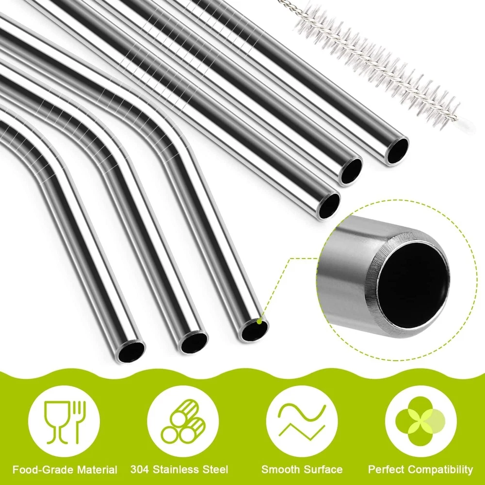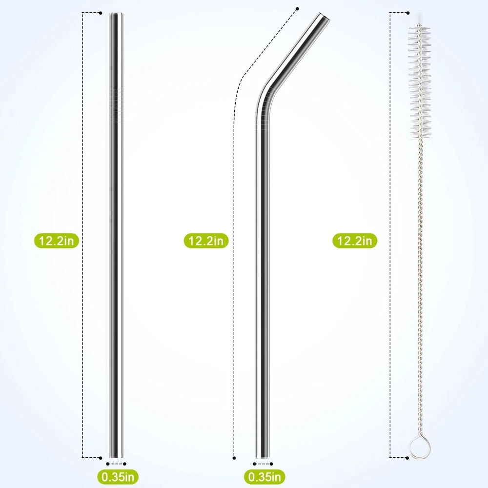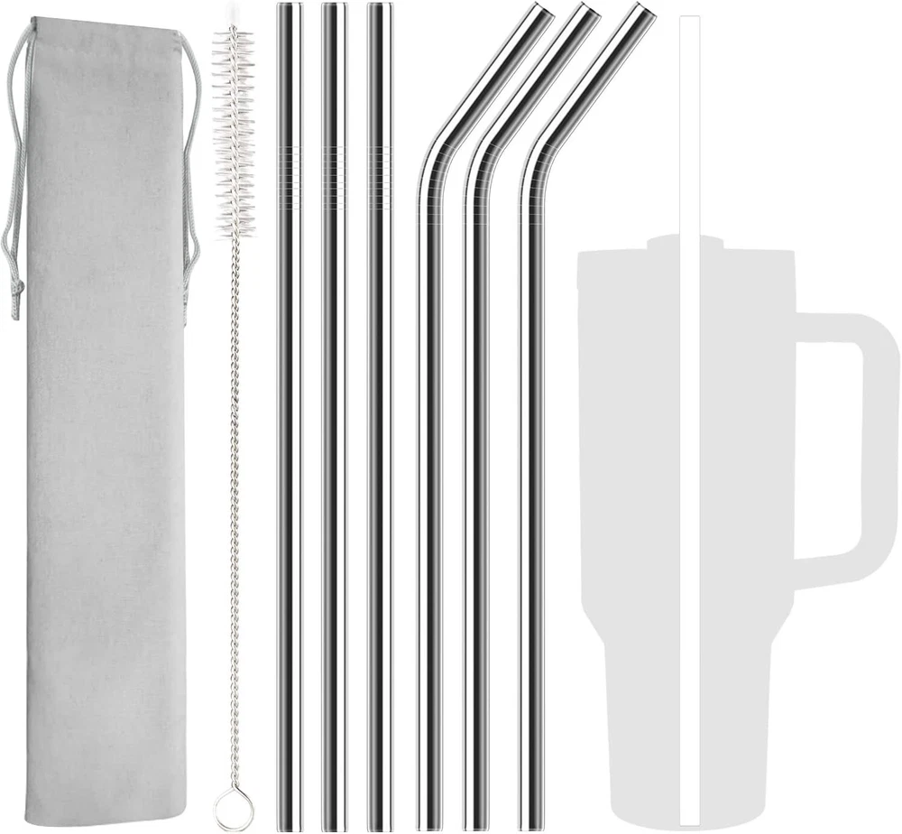 About this item Excellent Compatibility: 12.2" length x 0.35" wide, 6 pack reusable straws provide sufficient length compatible with Stanley Adventure Quencher Travel Tumbler 40oz Cornflower, Stanley cup 40oz and 40oz Quencher with handle. Please note that they are only compatible with 'Adventure' series, not compatible with 'Iceflow' series! Premium Material: Our replacement straws are made of top food grade 304 stainless steel, the straws are the natural choice for everyone, which is BPA-free, plastic-free, no metal aftertaste, no oxidation, colorfast, dishwasher safe, reusable and environmentally friendly. Package Includes: 3 * Straight Straws, 3 * Bent Straws, and 1 * Easy-to-use cleaning brush compatible with Stanley Adventure Quencher 40 oz Travel Tumbler. Please confirm the size of our product can match your tumblers before purchasing. Easy to Clean: The cleaning straw brush is long enough (12.2 inch) to reach the bottom of straws, helping you clean straw easily. Carry it with you: For convenience and storage, we also provide a 32cm bag. You can put straws and brushes in the bag and enjoy them anytime, anywhere.