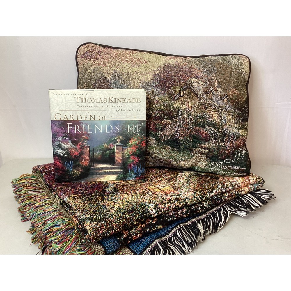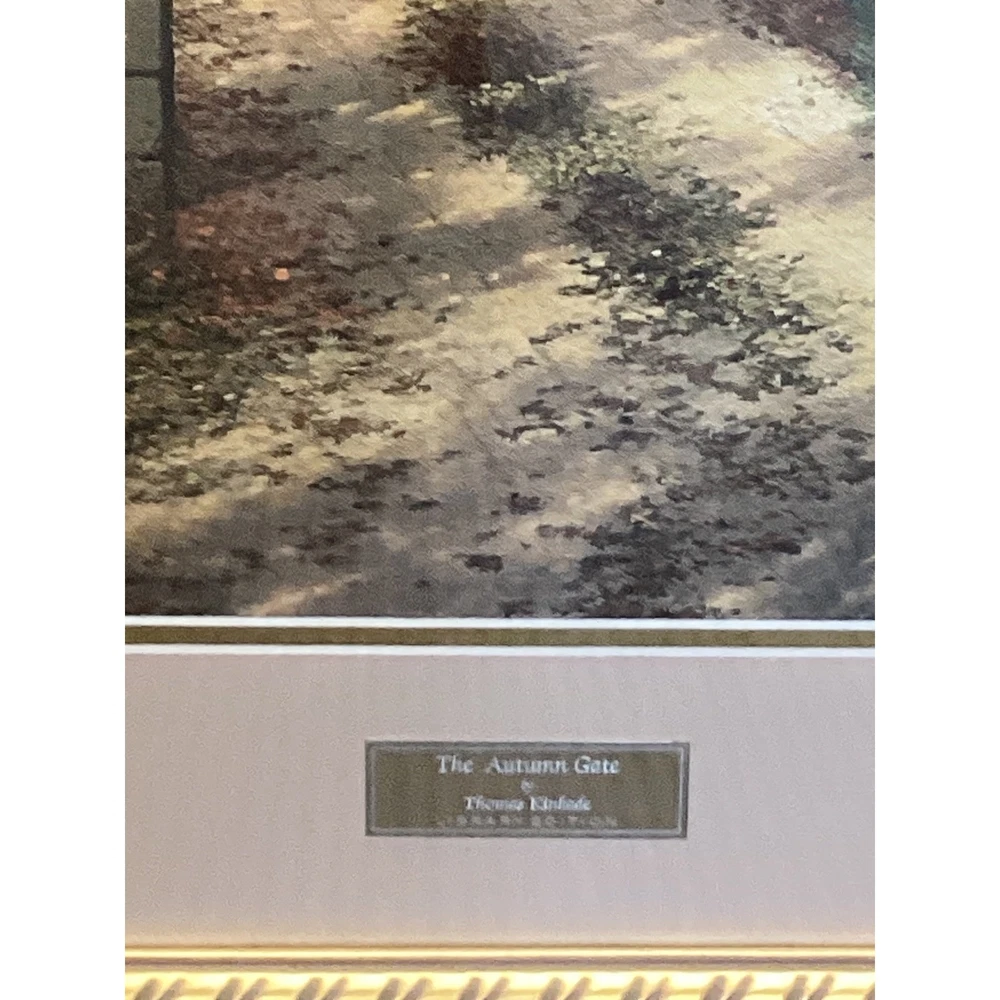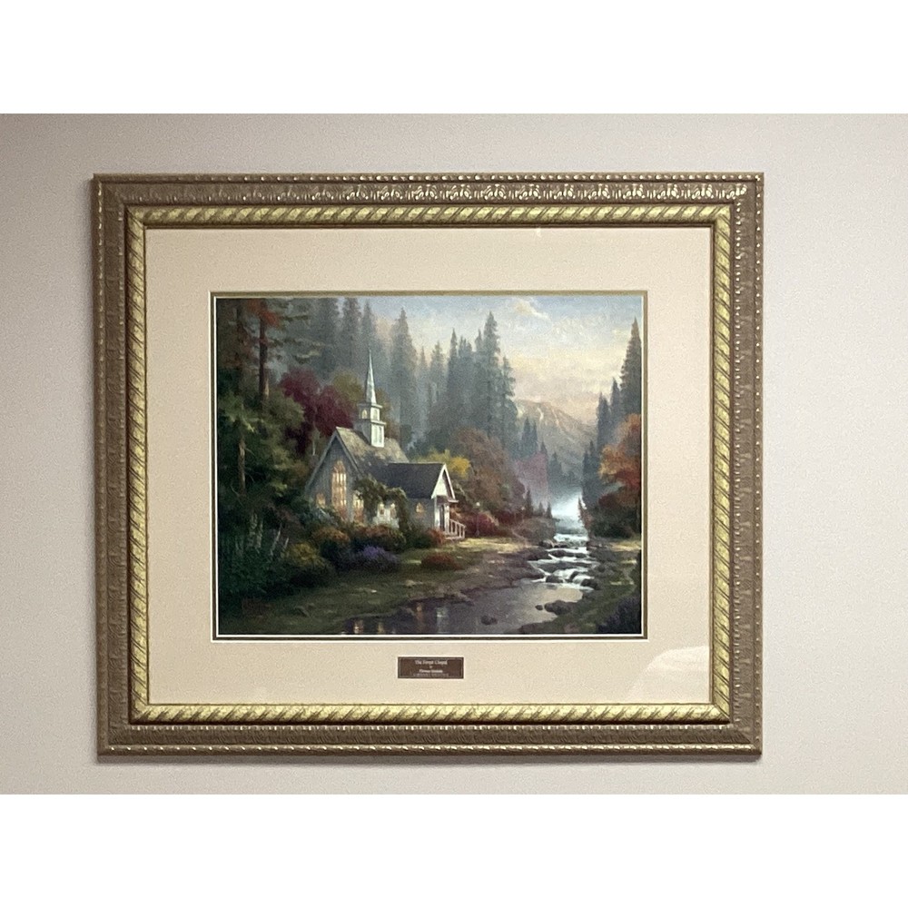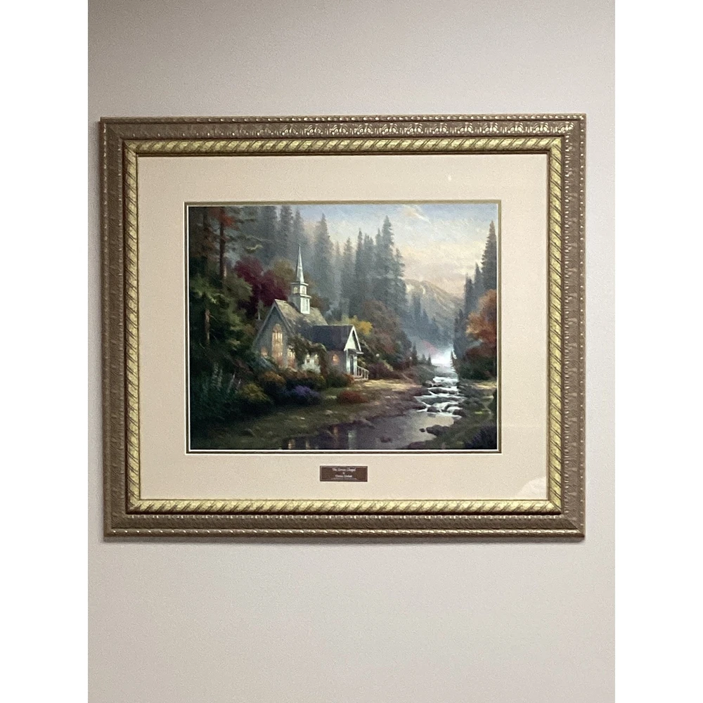 Tranquility radiates from this captivating collection of three Thomas Kinkade framed prints, ready to infuse your home with the Painter of Light's signature warmth. Transport yourself to idyllic scenes: A serene chapel nestled beside a flowing stream, a welcoming cottage embraced by blossoming gardens, and a rustic gate leading to a sun-dappled path. Type: Print Subject: Cottage Landscape Material: Paper Style: Cottagecore Features: Framed, Ready To Hang, Decorative Character Family: Thomas Kinkade Room: Living Room, Bedroom, Office, Study, Any Room Color: Gold Character: Cottage, Chapel, Stream, Garden, Gate Department: Adults, Teens, Kids Keywords: Thomas Kinkade, framed art, cottage art, landscape art, home decor, wall art, vintage art, gift idea, art print, gold frame, pictures, paintings