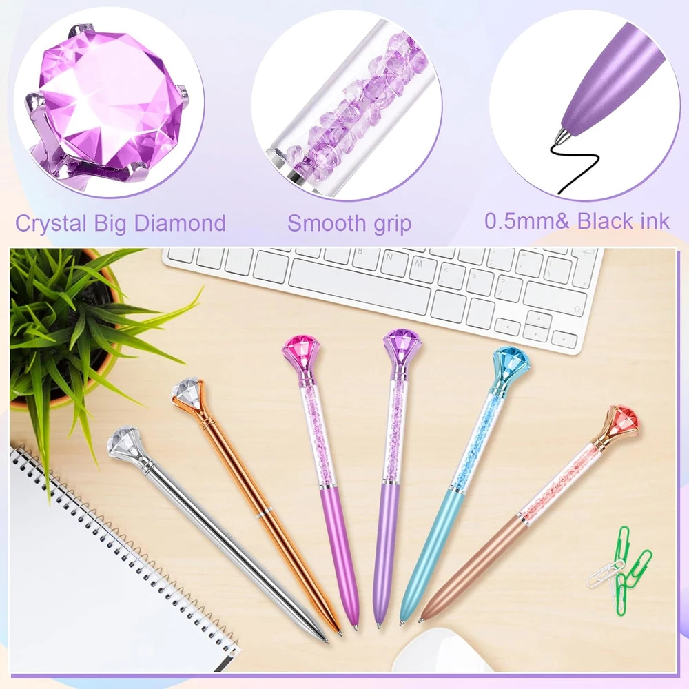 Store New Arrivals Add to Favorite View Feedback Contact 6 Pcs Diamond Pens with Crystal,Pens with Diamonds on Top, Diamond Pens Bulk Including Black Ink Pen Refill, Diamond Top Pens for Office School Home Description Item model number 09DZSB0001 Closure Twist Writing Instrument Form Ballpoint Pen Number of Items 12 Color Blue,Purple,Rose Gold,Rose Pink,Silver,White Line Size 0.5mm Millimeters Brand Joyberg Material Type Plastic Manufacturer Part Number 09DZSB0001 Item Weight 2.39 ounces Manufacturer Joyberg Age Range (Description) Kid, Teen, Adult Ink Color Black Is Discontinued By Manufacturer No Point Type Medium Package Dimensions 6.65 x 4.72 x 0.79 inches Size 1 Count (Pack of 12) Quality: The diamond pens with crystal from high-quality plastic,they are robust and durable, lightweight, and comfortable to hold. Diamond pens surface with its metallic shine, the overall design is stylish and provides a pleasant hand writing experience. Size and Color: Diamond Pens Measuring 6.3 inches (16cm) x 0.35 inches (0.9cm) with a refill length of 3.2 inches (69mm), Diamond Pens set includes 4 crystal diamond pens (blue, rose pink, purple, and coral), plus 2 solid color pens ( rose gold and silver), also contains 6 white replacement refills(Black ink), providing a range of colors to suit your various needs. Unique design: Each pens with diamonds on top features a large rhinestone held by a claw at the top, with crystal clarity and gold accents. Diamond Pens are a stunning metallic texture that adds elegance and charm to the design, letting go of a lasting impression on others. Easy to be used: The Crystal Diamond Pens operate with a simple twist mechanism for opening and closing. The ballpoint pen's Black ink writes smoothly without smudging or skipping, ensuring an effortless user experience. Ballpoint Pen to replace a diamond refill, just pull off the twist mechanism with force. Perfect Gift: With its eye-catching design, the diamond pen carries out an exquisite gift for family and friends on occasions such as Christmas, weddings, birthdays, bridesmaid events, bridal parties, business gatherings, and tabletop decorations. Ideally suited to use at school, office, or home. Product Description Product information Brand: Joyberg Color: Blue,Purple,Rose Gold,Rose Pink,Silver,White size: 6.3 inch (16cm) x 0.35 inch (0.9cm) Refill size: 3.2 inches (69mm) Ink Color: Black Material: Plastic The exquisite rhinestone is crystal clear, unique, and attractive. It is a very good choice for gifts or reserved for daily writing, The whole package contains 6 pens and 6 cores of different colors, which can be used for a long time. Smooth writing, continuous ink making writing easier, quick drying to avoid stains, replaceable refills, and longer usage time.Suitable for note-taking, homework, and drawing. Crystal Big Diamond Smooth grip 0.5mm&Black ink ABOUT US We offer the best prices around on high quality products. Our E-store includes media such as books, movies, music and games while offering electronics, toys, sporting apparel, clothing, tools, general home, garden items and more. SHIPPING We are always working hard to ensure your package arrives as soon as possible. Please understand that some factors like weather, high postal traffic, and the performance of shipping companies are outside of our control. We offer free shipping to the lower 48 states and ship within 2 business days of payment, usually sooner. We do not accept P.O. Boxes. Please provide a physical address. RETURNS We offer a 30-Day Return Policy on items which you are not completely satisfied with. You have the option for a full-refund or an exchange of the item. No returns are available on items shipped outside of the USA. PAYMENT We accept PayPal. CONTACT US This page content is yet to come Please ad us to your favorite seller and visit again later Thank You CUSTOMER SATISFACTION We try our very best to make sure every customer is completely satisfied. If there's a problem, message us! We're happy to help.