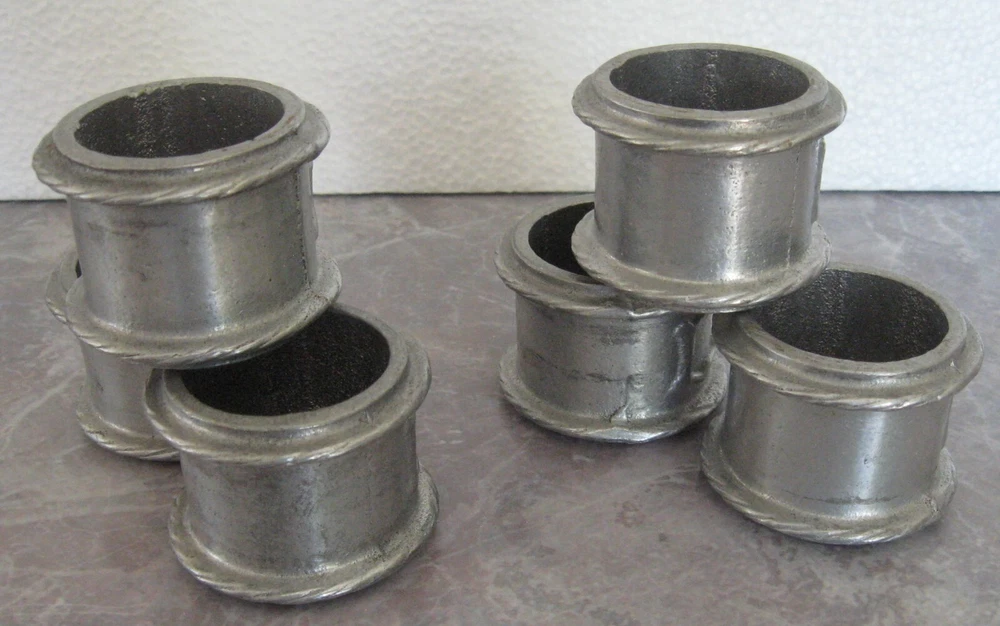 6 Pewter Napkin Rings Vintage