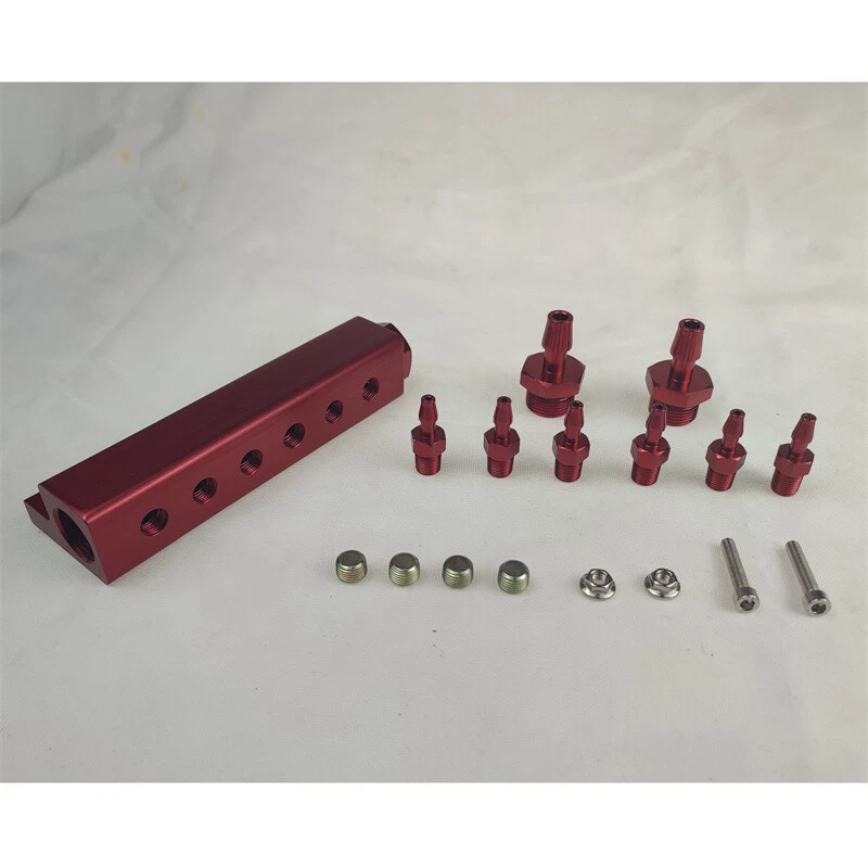 Vacuum Intake Manifold Kits 6Port 1/8 NPT Turbo Wastegate Boost Block Red Feature 【Product Name】Vacuum manifold 1# 【Size】Approx. 180mm*25mm/7.09x0.98 Inch 【Color】Red 【Material】CNC Machined Billet Aluminum 【Quantity】1Set(15 Pieces kits as Shown in the Picture) Fitment: Universal Fitment Package included: 1 Piece Vacuum Manifold 2 Pieces Inlet & outlet 1/2 NPT Fittings 6 Pieces 1/8 NPT Small Fittings 2 Pieces Inlet & Outlet Block Off Plugs 4 Pieces Mounting Hardware Note Manual measurement may exist 1-2cm error, please understand Please be reminded that due lighting effects, monitor's brightness/contrast settings etc, there could be some slight differences in the colour tone of the website's photo and the actual item. If there is an unexpected delay in transit of your goods, or if you find there are some unexpected problems with the product after you receive it, we sincerely hope you will email us first instead of opening a case, it is very important to us and I appreciate your understanding.We guarantee that you can get a satisfactory solution.