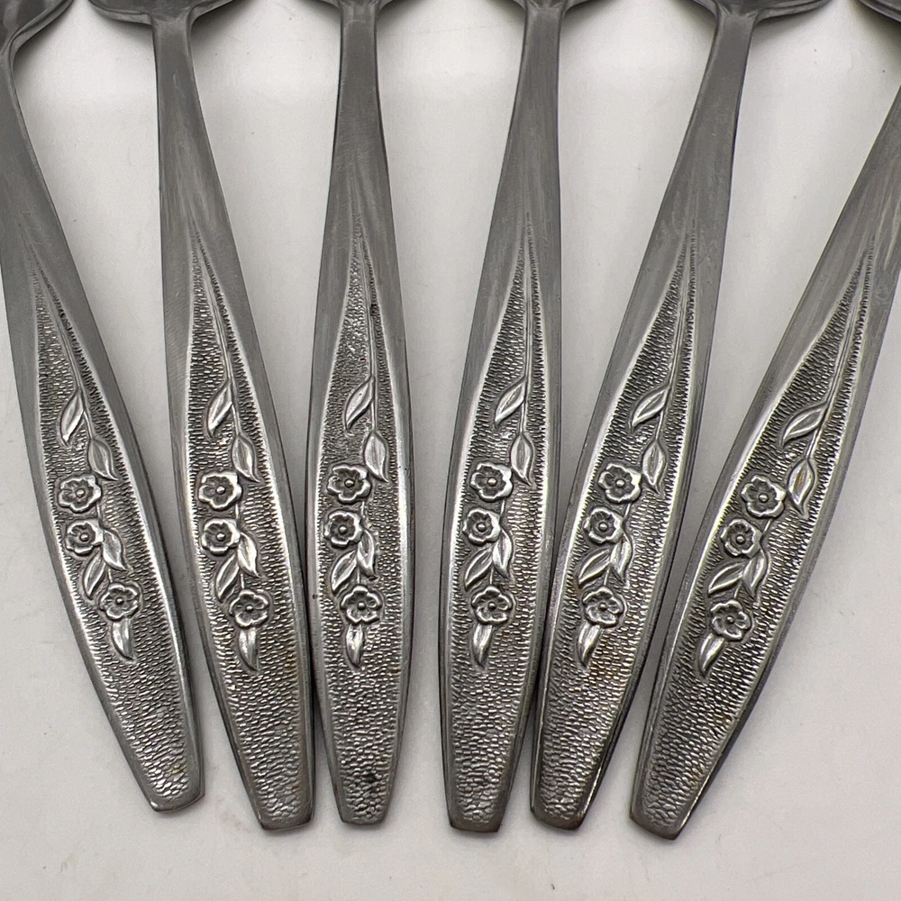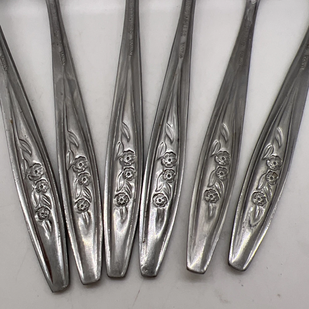 6 Superior RADIANT ROSE Salad Forks Flatware TAIWAN Stainless VTG Free 1 Spoon