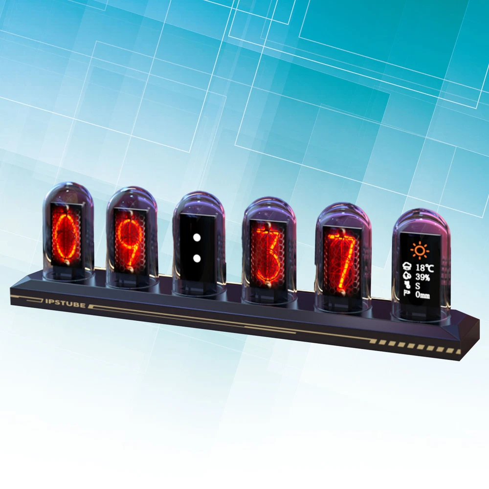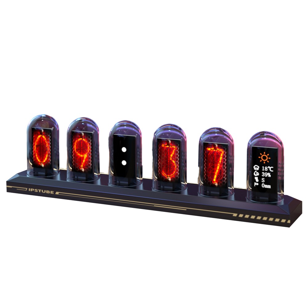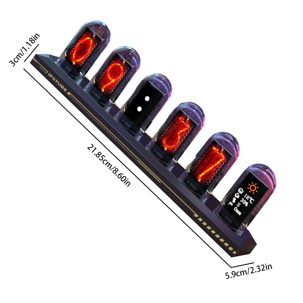 Product name IPS Nixie Tube Clock Material Aluminum alloy + glass Product size 218.5*59*36mm Rated input DC
