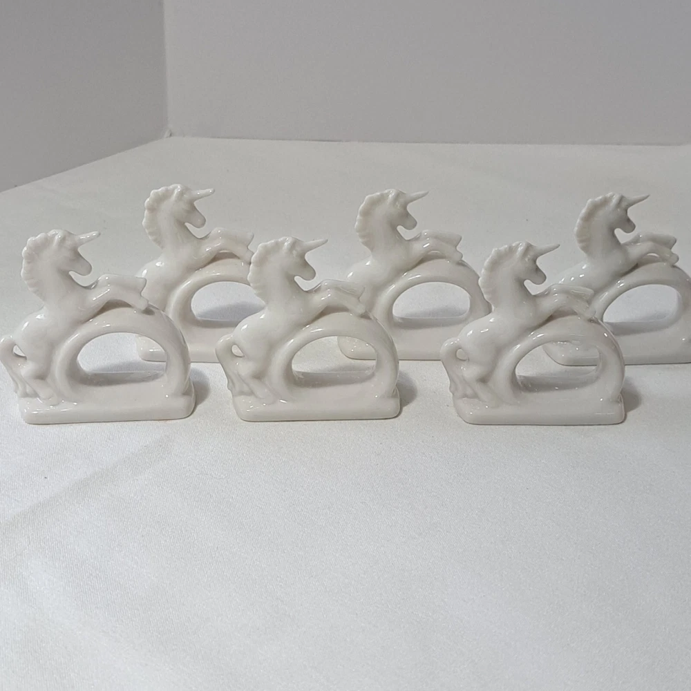 6 Vintage Unicorn Napkin Ring Holders Ceramic By Lenwile Ardalt Artware. Condition is Pre-owned. Shipped with USPS Ground Advantage.