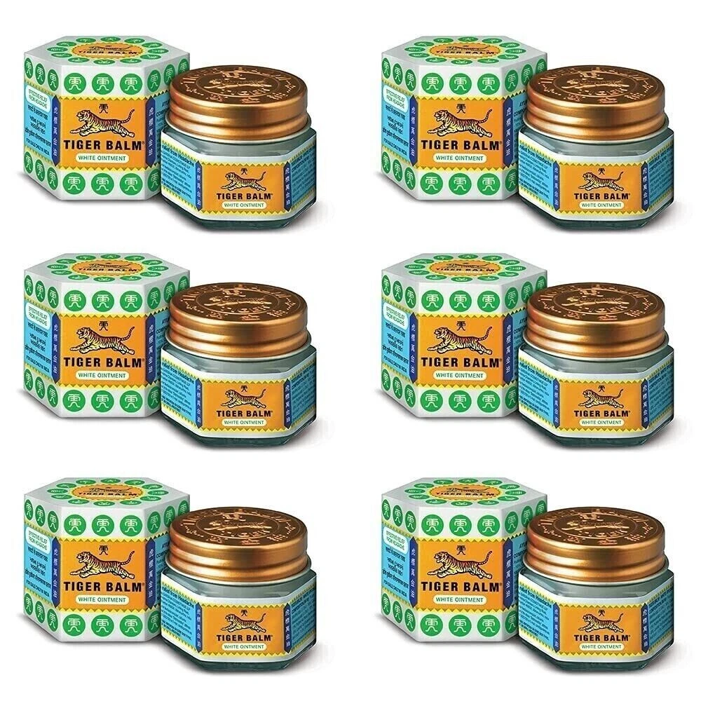DESCRIPTION ✅ Soothe Headaches ✅ Fast Acting Pain-Relief Properties ✅ Relief from Stuffy Nose & Other Discomforts ✅ Made From Herbal Ingredients ✅ Soothe Flatulence & Itch Due to Insect Bites. ✅ Pack Contains 6 Pcs of Tiger Balm White Ointment of 21ml Each. ✅ The classic Tiger Balm ointment which many of us grew up with. It is often used for headache remedies. Count on this family favorite to soothe a variety of ailments like stuffy nose, flatulence and itch due to insect bites. Gently rub over the affected area to allow its herbal formulation to soothe headaches, stuffy nose and other discomforts quickly and effectively.