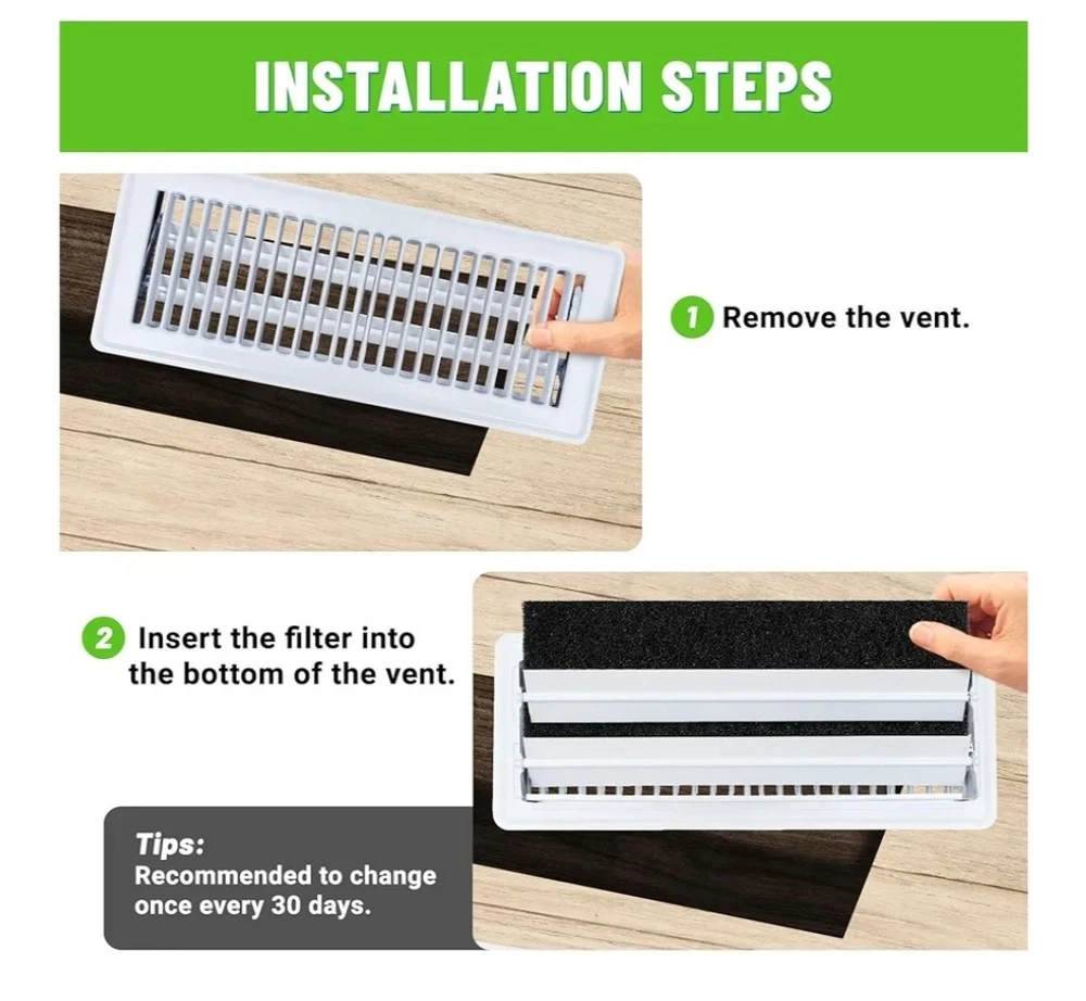Includes 20 activated carbon filters for floor vent air filters. Carbon pads with microscopic mesh trap dirt, common household pollutants, and other odors, keeping the air fresh. Widely Used: The universal carbon pad filter sheets can be applied to most air purifiers, air conditioners, humidifiers, range hood filters, vents, furnace filters, and other appliances, making your home more comfortable and offering a healthier life. Durable: Luxoton premium-quality activated carbon pads are safe, featuring a mesh structure and elastic fabric material that is stretchy, strong, and reliable. They can be used for an extended period of time without affecting regular ventilation, maintaining air circulation. Convenient to Use: The universal carbon air filter sheets make it easy to replace your old air purifiers. Simply measure and cut them to fit your specific requirements before installing them on your air purifier, effectively avoiding the problem of mismatched sizes. High Quality: activated carbon pads are specially designed for home air vent filters. Each air pad filter is composed of a high-polyester electrostatic material. Designed for use as register filters and air duct filters, they can also be used for a variety of other DIY projects.