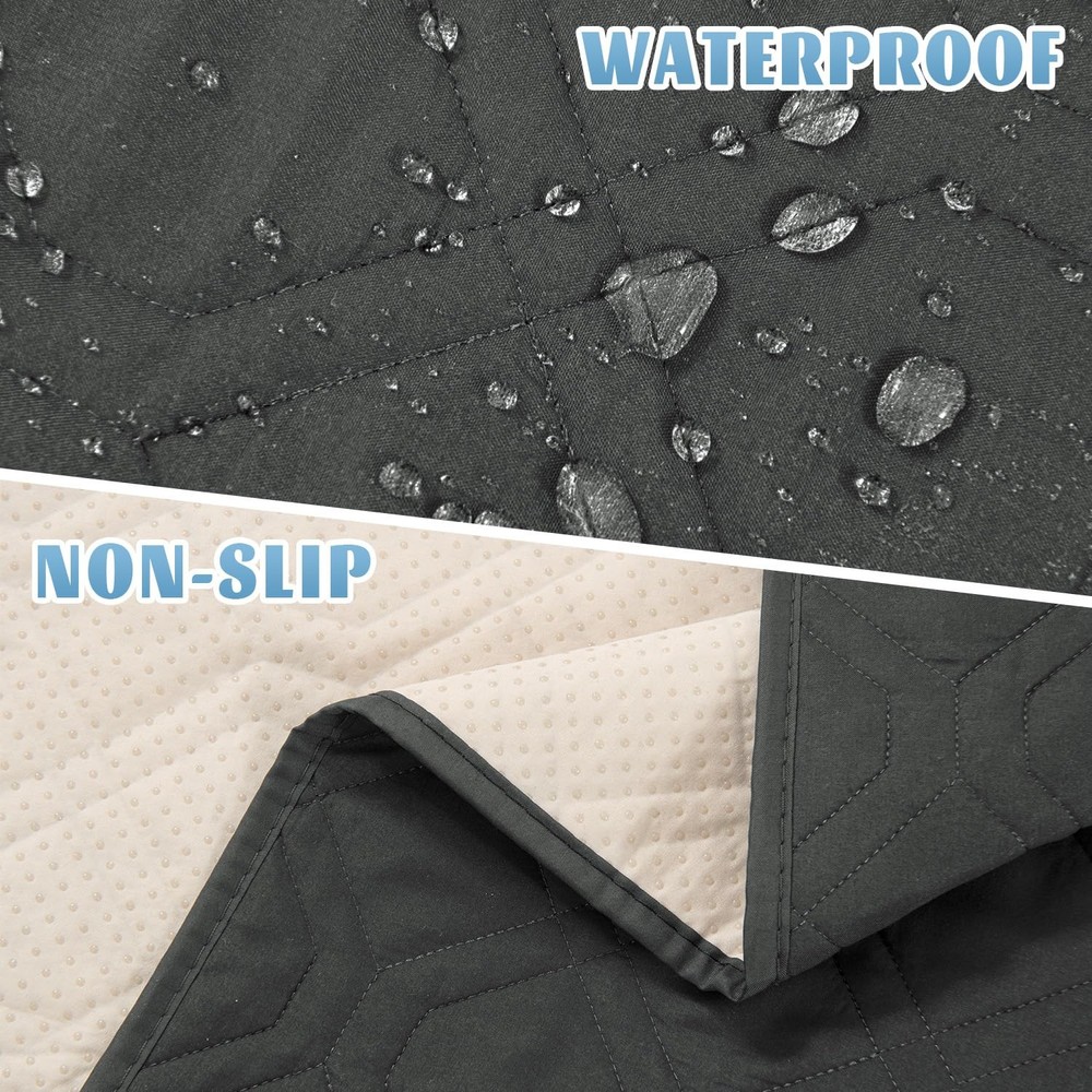 Protect your bed or furniture from pets, liquids, food and stains, wear and tear, damp and dull smells WATERPROOF MATERIAL - The compound waterproof layer in the middle of the fabric can achieve 100% waterproof, offers strength and durability even after machine washing MULTI-USE - This furniture cover can be used on sofas, beds, cars, picnics, tables or chairs, 60inches wide and 82 inches long STAIN RESISTANT AND MULTI PURPOSE - It will save your furniture from puppy slobber and bite marks, kids mischief and spills. To protect your bed/sofa from the pet's scratching post. It can be used as a couch cover too ANTI-SLIP - The anti slip back grip on the bottom of the cover will avoid sliding EASY CARE - It is easy to clean the pets' hairs with the brush which is included in the package or machine wash if you need