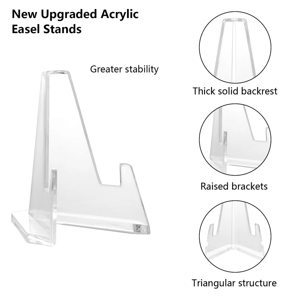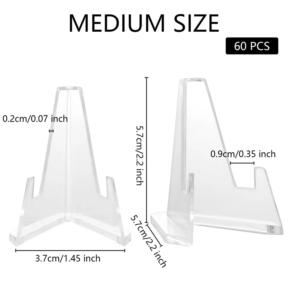 【Features of trading card display stand】 Unique design: The baseball card display stand has a special design that provides support in the back and hooks in the front to the front edge of the item to prevent it from falling. Quality material: The trading card stand display is made of high quality acrylic, durable, long life, high transparency, can better display your collection or cards. Wide application: The card display stand is perfect for storing coins, business cards, cell phones, photo frames, medals, shells, belt buckles, CDs, small plaques, small artwork, collectibles and other small items. 【Specifications】 Material: Quality Plastic Color: Clear Size : 2.2 Inch Tall Package Included: 60 x mini clear acrylic easel stands Note: Please allow slight size errors due to manual measurement. 【Compact size】The card display stand measures approximately 2.3 inches x 1.45 inches (H x W) and perfectly accommodates a wide range of types. Manual measurement may have slight error, please confirm the size when purchasing 【Quality materials】The trading card stands are made of high quality acrylic material, sturdy and durable, beautiful appearance, wear-resistant and corrosion-resistant, exquisite workmanship, smooth feel, can be used for a long time. Compact design makes people will not notice the baseball card stands for display at all, only focus on the exquisite exhibition products 【Reliable design】The base of the card stands for sports cards is large and the triangular design makes it stable without worrying about tipping over. The sports card stand is small in size and weight, easy to store and carry 【Value Pack】The package includes 60 baseball card stands, plenty of quantity to meet your daily needs and replacement needs, and an ideal gift for all kinds of collectible enthusiasts 【Wide application】The sports card display stand is suitable for displaying small collectibles such as coins, business cards, medals, shells, sports cards, artwork, belt buckles, CD's, picture frames, magnetic card holders, small plaques, onyx slices, small platters, small works of art, and other small items, etc