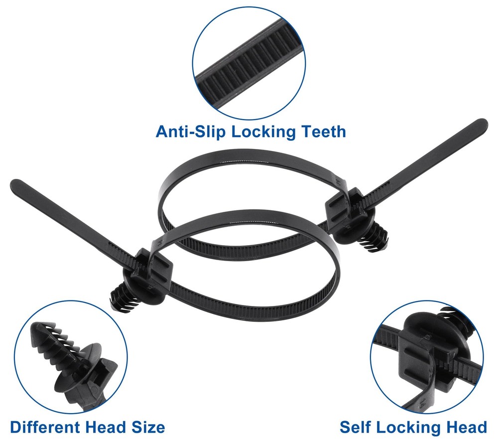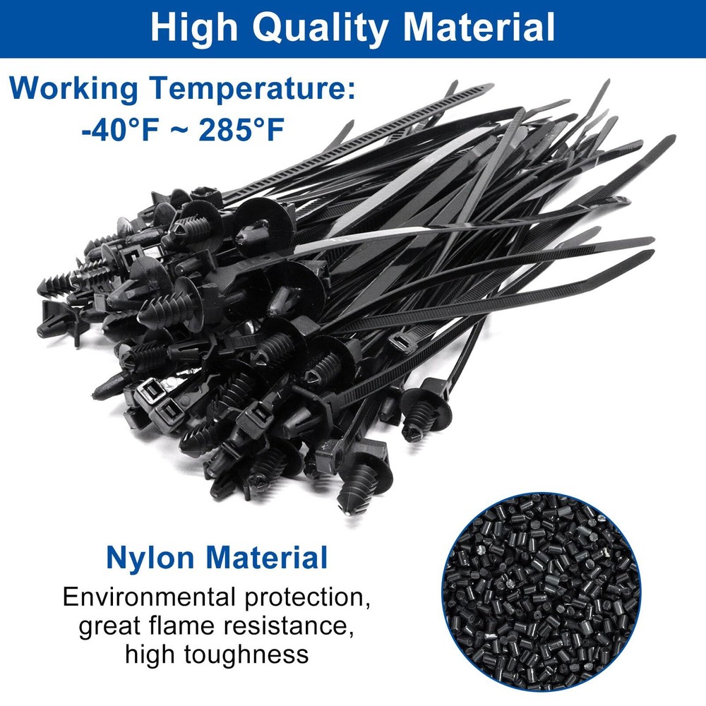 $ 11.760-Piece Snap-In Nylon Cable Zip Ties for Car Wire Mounting