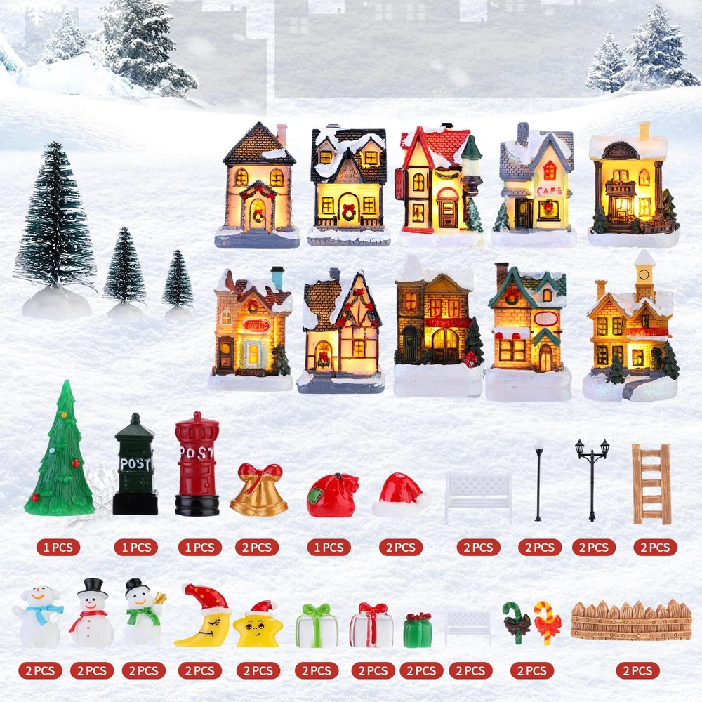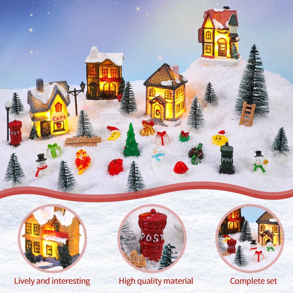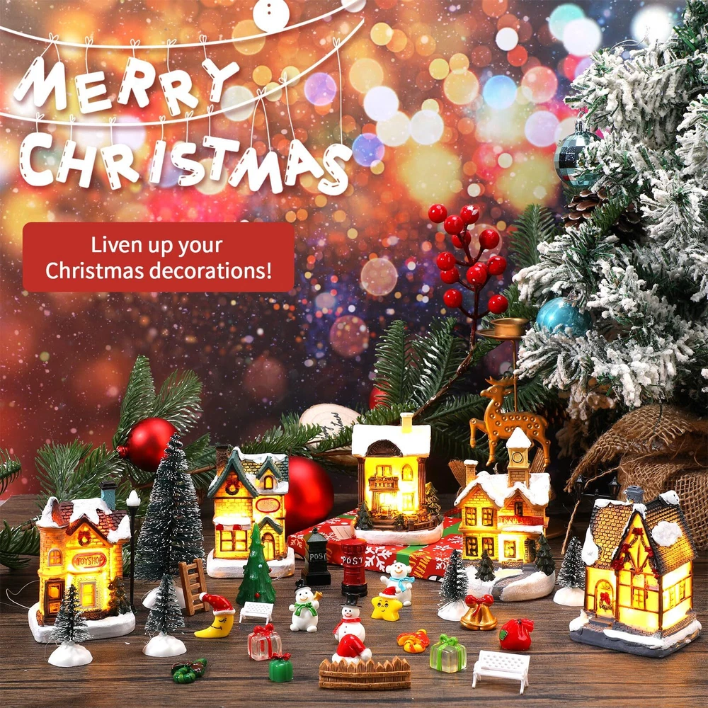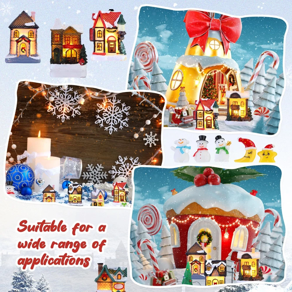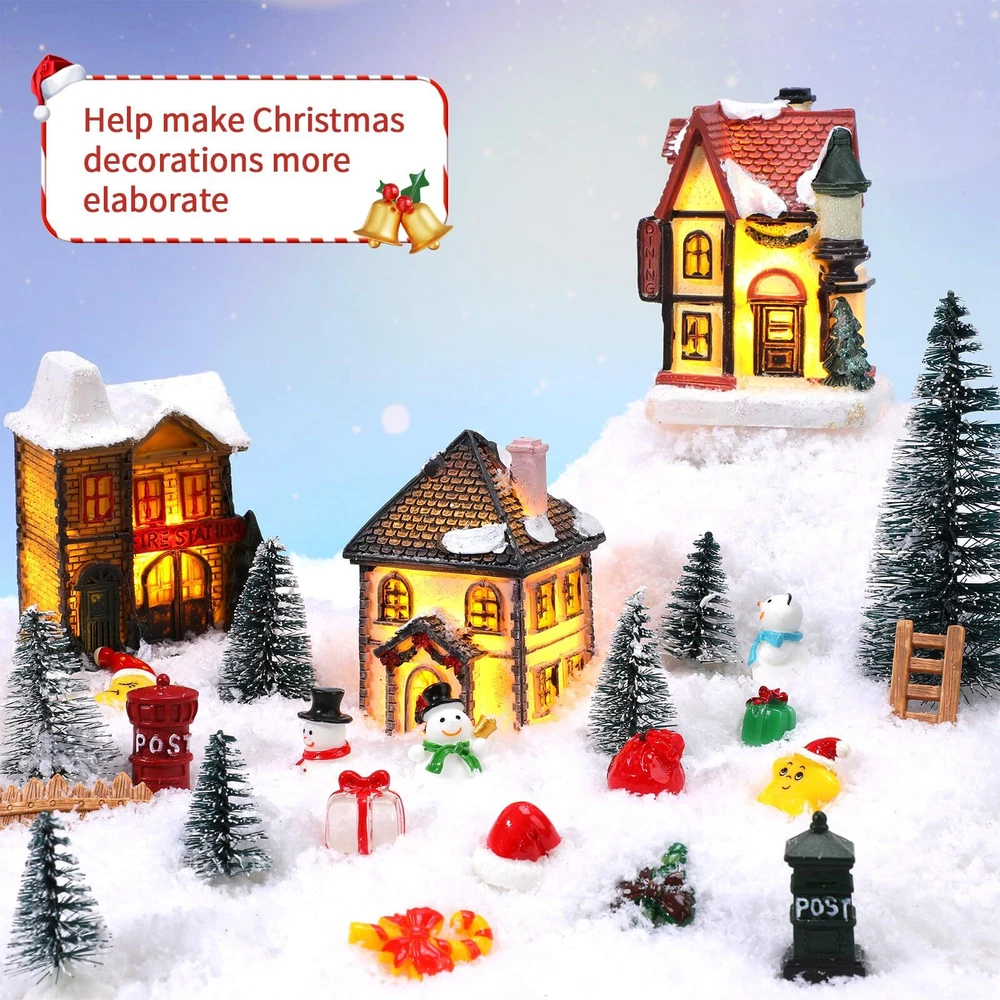 Features: This impressive 60 packs Christmas village set offers a delightful array of winter village buildings accessories. Nestled among these pieces are quaint homes, wonderfully depicted post offices, charming Santa Claus figurines, imposing snowmen, and delightfully tiny stars, the full moon, and beautifully wrapped gift boxes. Done in a whimsical Christmas style, each piece is meticulously created from quality resin, ensuring longevity and undiminished beauty over the years. This comprehensive kit includes an array of multi style, LED lighted miniature Xmas village houses, winter village buildings, and a delightful variety of festive accessories. Specifications: Material: resin Color: as shown in picture Size: as shown in picture Package includes: 60 x Christmas village accessories Notes: Manual measurement, please allow slight errors on size. The color may exist a slight difference due to different screen displays. Little ones should use our product under the supervision of adults. Small items are included, please keep them away from little ones in case of choking risk. Sufficient Quantity: liven up your Christmas decor with our 60 packs Christmas village set, which includes a lot of mini Xmas village houses, Christmas trees, snowmen, benches, mailboxes and other adorable accessories that will certainly make your festive season expected Exquisite Christmas Style: the enchanting Christmas cottage scene set includes most thing from a Santa Claus hat, post mailbox, bench, snowman, to gift boxes, elks and more; It helps design a Christmas village street desktop decoration that brings fun and cheer to everyone who beholds it Nice Gift Ornaments: make your loved ones' a Christmas surprise with our Christmas village ornaments set; These meticulously crafted pieces make a thoughtful and stylish present for someone who enjoys holiday decorations Reliable Material: our LED Christmas village decorations are made from the quality resin; This material ensures durability, so you can enjoy a dream town street view year after year; They gleam with captivating detail and vibrant hues, promising years of Christmas cheer Easy to Use and Display: transform your space into a mini winter fairyland with our Christmas village collection kit; Simply assemble them and enjoy the immediate transformation of your area, whether you're looking to decorate something or put together a striking display on your tabletop