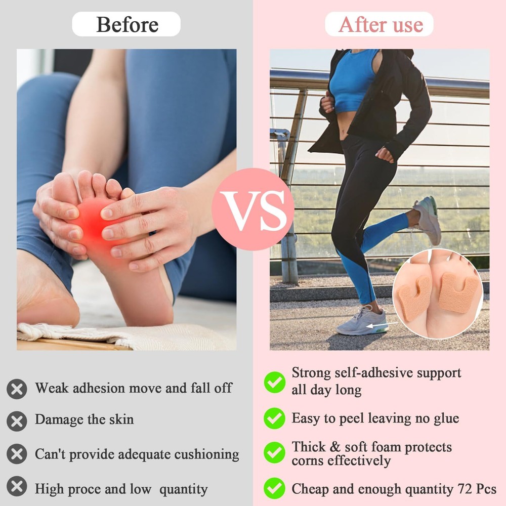 60 Pcs U Shaped Felt Callus Pads Metatarsal Adhesive Pad or Women Men Heel Pads Features: Premium Quality Felt Material: These callus pads are crafted from high-quality felt, maximum comfort and durability. The soft yet sturdy material provides a cushioned barrier and helps to alleviate pain and discomfort caused by calluses, allowing you to go about your day without the constant distraction of foot pain that protects sensitive areas of your feet, making them perfect for daily use. Perfect Fit and Ample Coverage: Each callus cushion pad measures 1.85 x 2.6 x 0.24 inches, offering ample coverage, These corn pad dimensions the pads cover and protect calluses efficiently shield calluses, blisters, and other foot irritations. The foot callus pad generous size that the pads stay in place and provide continuous relief throughout the day. 72-Pack for Long-Lasting Relief: Metatarsal pads for feet with a total of 72 callus pads in each pack, you are well-equipped for extended periods of use. Whether for personal use or professional foot care, a sufficient quantity to meet your needs for replacement and use in daily life. These cushioning inserts alleviate pressure and pain by protecting the hard layers of skin from friction or brushing off against socks or footwear. Easy Application and Secure Fit: Bunion cushions designed for ease of use, these foot cushion pads feature an adhesive backing that sticks securely to the skin without causing discomfort. Whether you're on your feet all day or engaging in active movement, the strong adhesion the pads won't shift or fall off, providing uninterrupted relief. Versatile and Multi-Purpose: These felt corn cushions for feet are not only ideal for calluses but also work effectively on corns, blisters, and other foot pressure points. They are suitable for all types of footwear, from everyday shoes to sports gear, your feet remain comfortable and protected in any situation. SHIPPING We are always working hard to ensure your package arrives as soon as possible. Please understand that some factors like weather, high postal traffic, and the performance of shipping companies are outside of our control. We offer free shipping to the lower 48 states and ship within 3 business days of payment, usually sooner. We do not accept P.O. Boxes. Please provide a physical address.