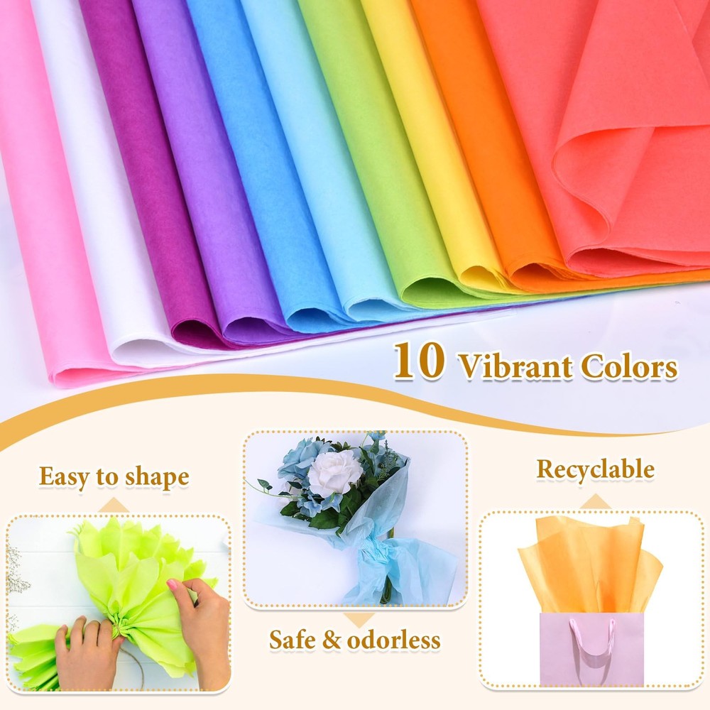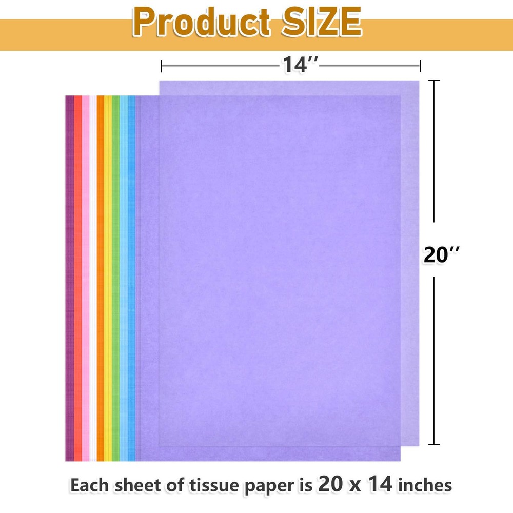 ✨ Key Features LARGE SHEETS: Each sheet measures 14" x 20" providing generous coverage for boxes, bags, bouquets and more BRIGHT COLORS: colored tissue paper comes in a vibrant rainbow of 10 classic colors for all your crafting and gift wrapping needs HIGH QUANTITY: Pack contains 60 sheets of tissue paper, offering excellent value and enough to complete numerous projects DURABLE YET DELICATE: Tissue paper is thin yet sturdy, crumpling nicely for filling while also being gentle enough to tuck into gifts VERSATILE USES: Use tissue paper for decorating, filling, layering, crumpling, twisting, folding or any other creative way to dress up gifts and crafts Shipping Standard Shipping (1–5 business days) ⏱ Handling time: 1–2 business days ❌ No shipping to Alaska/Hawaii, APO/FPO, or U.S. Protectorates No international shipping ↩️ Return Returns accepted within 30 days of purchase Buyer pays return shipping ✅ Refund method: Money back Payment We accept secure payment methods such as PayPal, credit/debit cards, and more Contact Us ❓ If you have any questions, please contact us via eBay. We respond within 24 hours on business days. Thank you for shopping at TEVA SHOP!