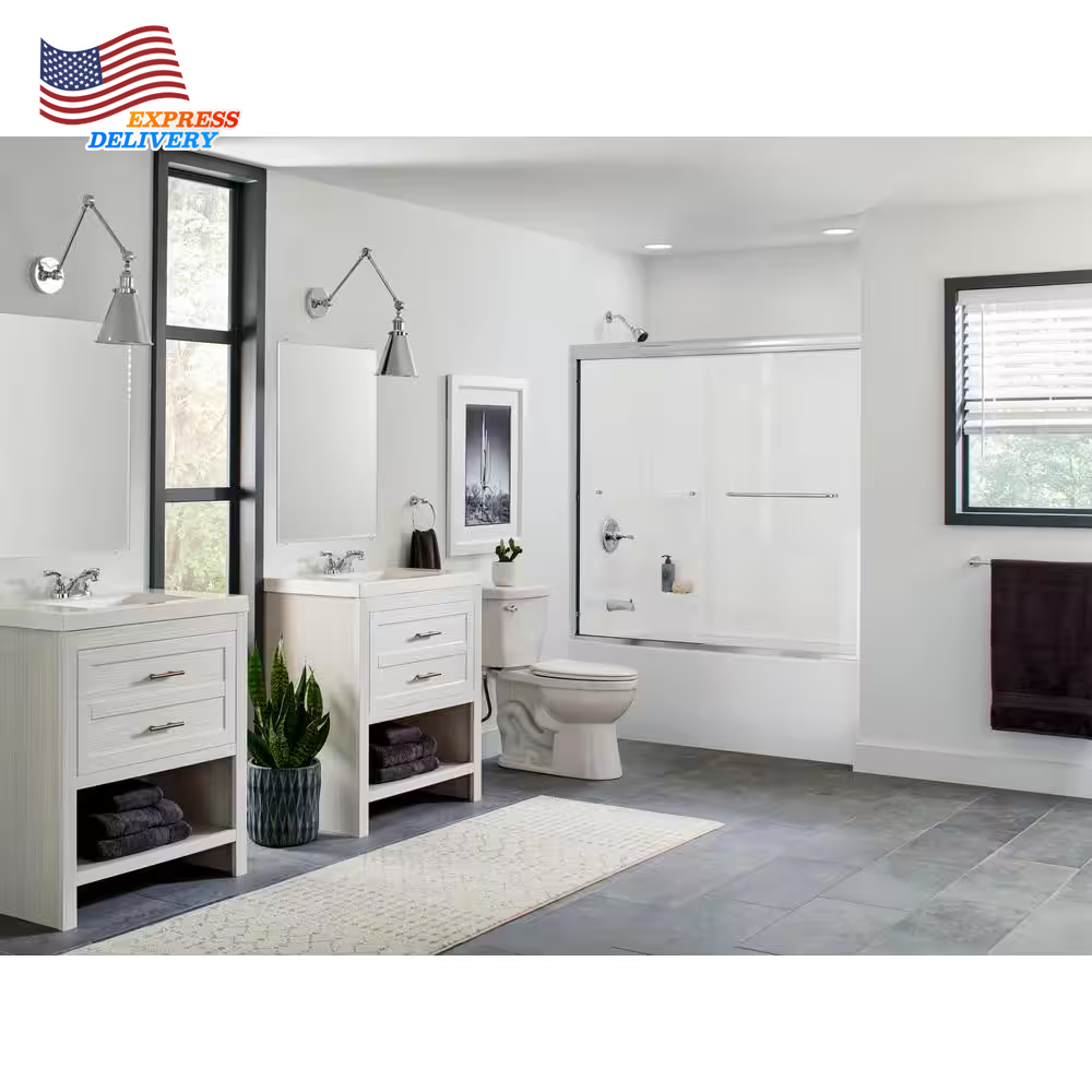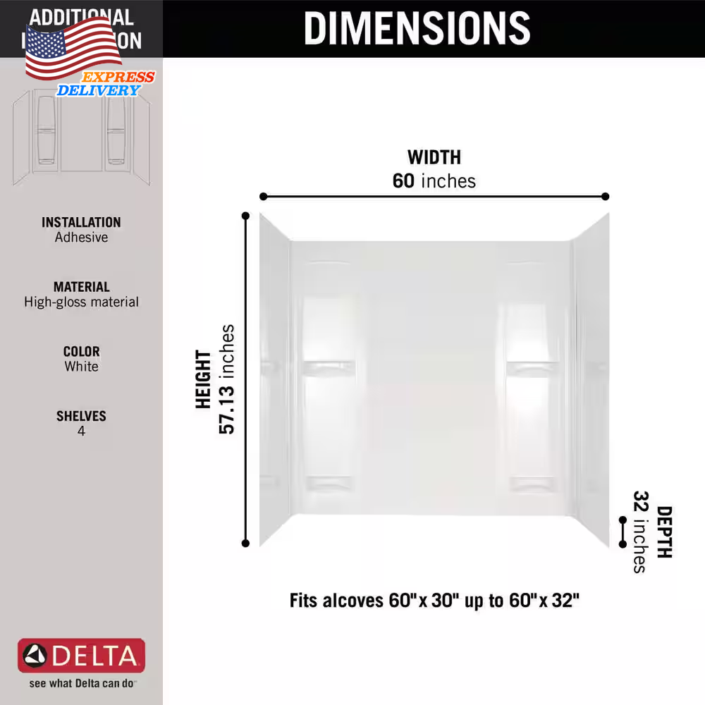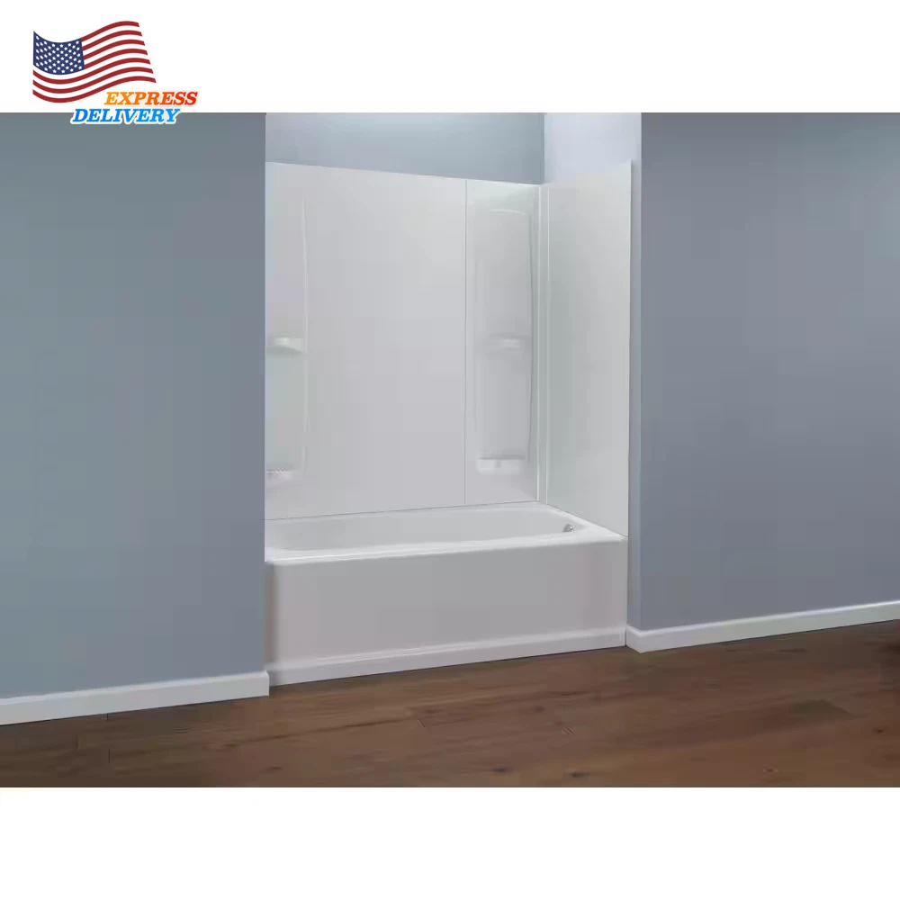 Store New Arrivals Add to Favorite View Feedback Contact 60 x 57" Five Piece Glue Up Bath Tub Surround System High Gloss White Self Drain Description Caulkless No Color Family White Color/Finish High Gloss White Construction Five piece Material Composite Product Weight (lb) 16 lb Returnable 90-Day Shower Type Tub Style Modern Surface Type Smooth Wall Installation Type Glue Up Certifications and Listings No Certifications or Listings Manufacturer Warranty Limited 1-year warranty Product Depth (in) 32 in Wall Height (in) 57 Wall Width (in) 60 5-piece bathtub system Includes 4 shelves and integrated soap dishes for storage Easy installation The Pro-Series 32 in. x 60 in. x 57 in. 5-Piece Easy Up Adhesive Tub Surround in White makes an attractive and functional addition to your bathroom. The 4 shelves feature ridges to serve as self-draining soap dishes and the panels are easy to trim to accommodate a window. The walls have a high-gloss finish and the glue-up installation design enables hassle-free setup. 5-piece bathtub wall set fits alcoves up to 60 in. wide x 32 in. deep 5-piece design for ease of transportation and installation 4 shelves with integrated soap dishes for convenient storage Back panel can be cut for a window opening Install to 1/2 in. (13 mm) drywall or water-resistant drywall, do not install panels over existing ceramic tile or plywood Install surface must be free of dirt, film, waxes, wallpaper, or any other residues, painted surfaces must be sanded Recommended adhesive: DAP 3.0, RD 3000, and ECO-BOND ABOUT US We offer the best prices around on high quality products. Our E-store includes media such as books, movies, music and games while offering electronics, toys, sporting apparel, clothing, tools, general home, garden items and more. SHIPPING We are always working hard to ensure your package arrives as soon as possible. Please understand that some factors like weather, high postal traffic, and the performance of shipping companies are outside of our control. We offer free shipping to the lower 48 states and ship within 2 business days of payment, usually sooner. We do not accept P.O. Boxes. Please provide a physical address. For shipping outside of the continental USA, we only use eBay's Global Shipping Program.The item is shipped to KY and then sent to the rest of the world. International customers are responsible for all duties and taxes. Continue to check out in order to calculate costs for shipping the item to your country. Messages regarding eBay's Global Shipping Program MUST be directed at eBay EXCLUSIVELY. RETURNS We offer a 30-Day Return Policy on items which you are not completely satisfied with. You have the option for a full-refund or an exchange of the item. No returns are available on items shipped outside of the USA. PAYMENT We accept PayPal. CONTACT US This page content is yet to come Please ad us to your favorite seller and visit again later Thank You CUSTOMER SATISFACTION We try our very best to make sure every customer is completely satisfied. If there's a problem, message us! We're happy to help. WE ACCEPT Copyright © 2021 AutoDS. | All Rights Reserved