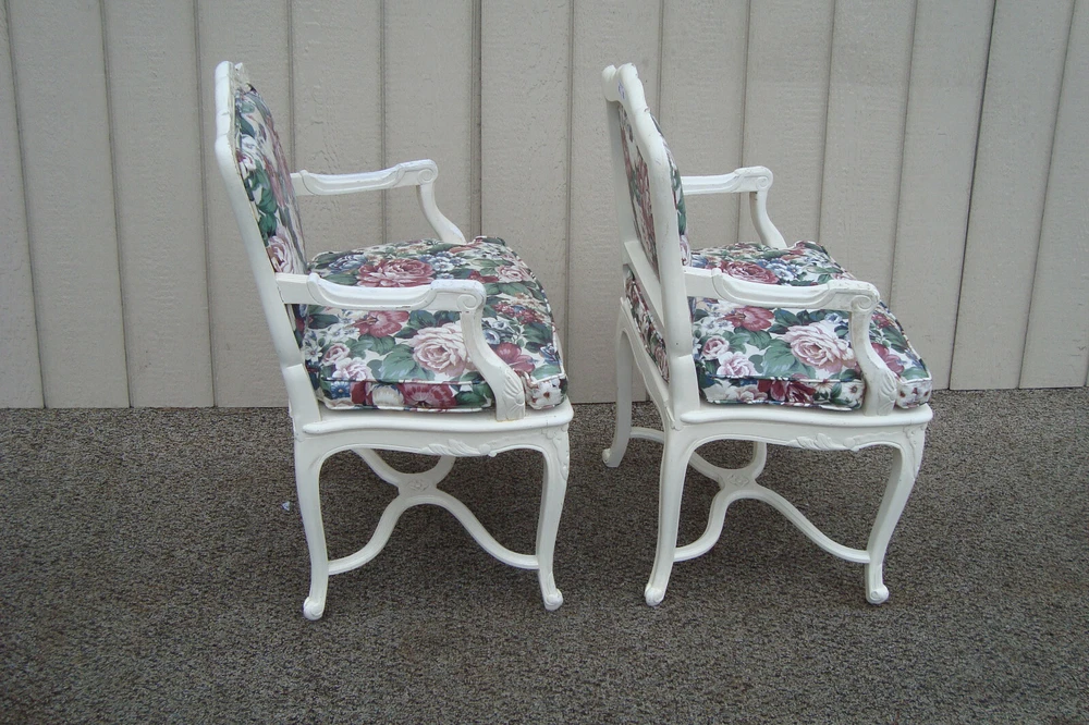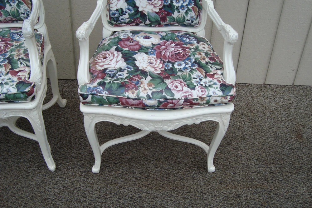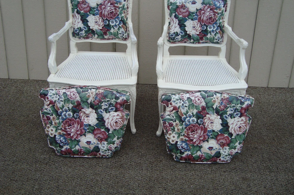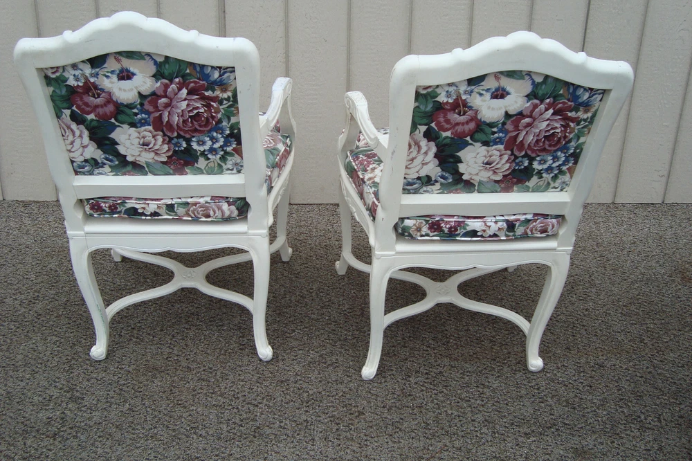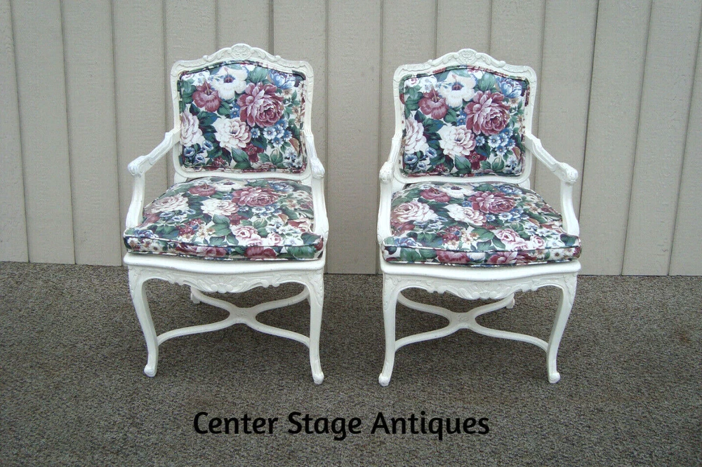 Item Description- Pair of very comfortable bergere chairs. They are tight and sturdy and in very good condition and ready for your home. It has a factory white paint job and paint chips edges to give it the rustic look. They have a removable cushion and cane seat. It has a vinyl type material. WE SHIP ANYWHERE IN THE USA. IF YOU NEED A HOME DELIVERY QUOTE EMAIL US YOUR ZIP CODE. THE EBAY SITE IS SOMETIMES BROKEN AND WILL NOT LET YOU PURCHASE AN ITEM SAYING WE DO NOT SHIP TO YOUR LOCATION. THE WORK AROUND IS TO MAKE AN OFFER FOR THE AMOUNT STATED ON THE LISTING THEN WAIT FOR ME TO INVOICE YOU BEFORE TRYING TO PAY. SHOWROOM NUMBER 609 261 0602. SHIPPING: Center Stage does our own deliveries to New York, Pennsylvania and New Jersey including the New York city and Philadelphia area every 1-2 weeks at very reasonable rates. For rates please email us with zip code. Age- circa 1980 Size- 24"W x 24"D x 37"H Seat 21"H This item can be packaged, insured and shipped via freight directly to your home. Please ask for a home delivery quote before purchasing this item. BUYER IS RESPONSIBLE TO PAY SHIPPING COSTS ON ALL ITEMS! If you need home delivery email us with your zip code for a quote. Large items or those over 100 lbs. will need freight shipping and we are happy to provide a free quote but you will pay the shipper directly. Expect delivery times on these items to be approx. 2-6 weeks depending on your location. All local deliveries within 50 miles and to NYC are done by Center Stage Antiques. If you are picking up from our store you will need to contact us with a pick up time. NJ residents and buyers picking up are subject to NJ sales tax. Center Stage Antiques has been at its current location for 23 years, selling high quality used estate furnishings at a fraction of the cost. All items are sold in their original condition and ready to place in your home. If you have any specific questions regarding the condition of an item please email us before bidding. We are a small family business who do everything ourselves including packaging and local deliveries.