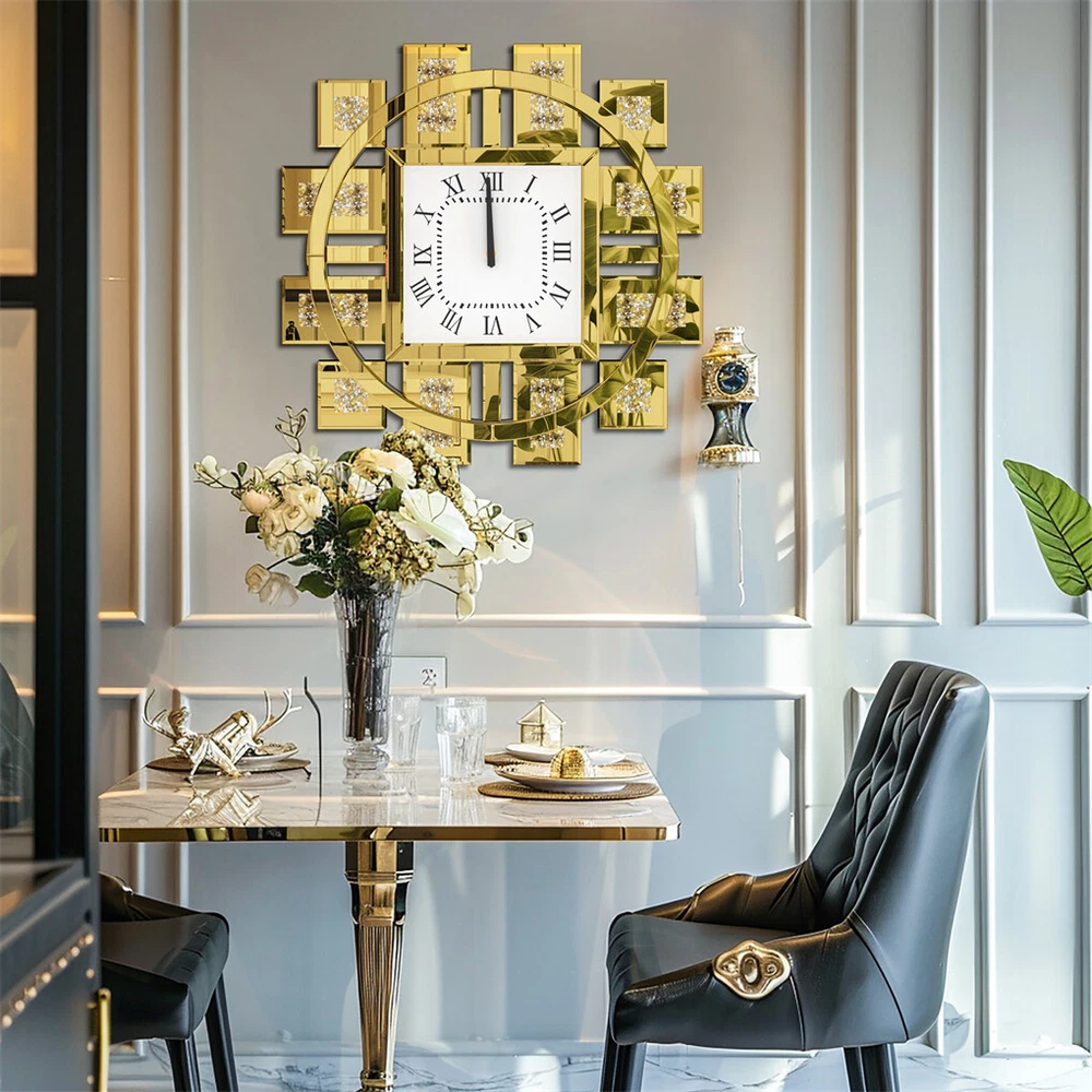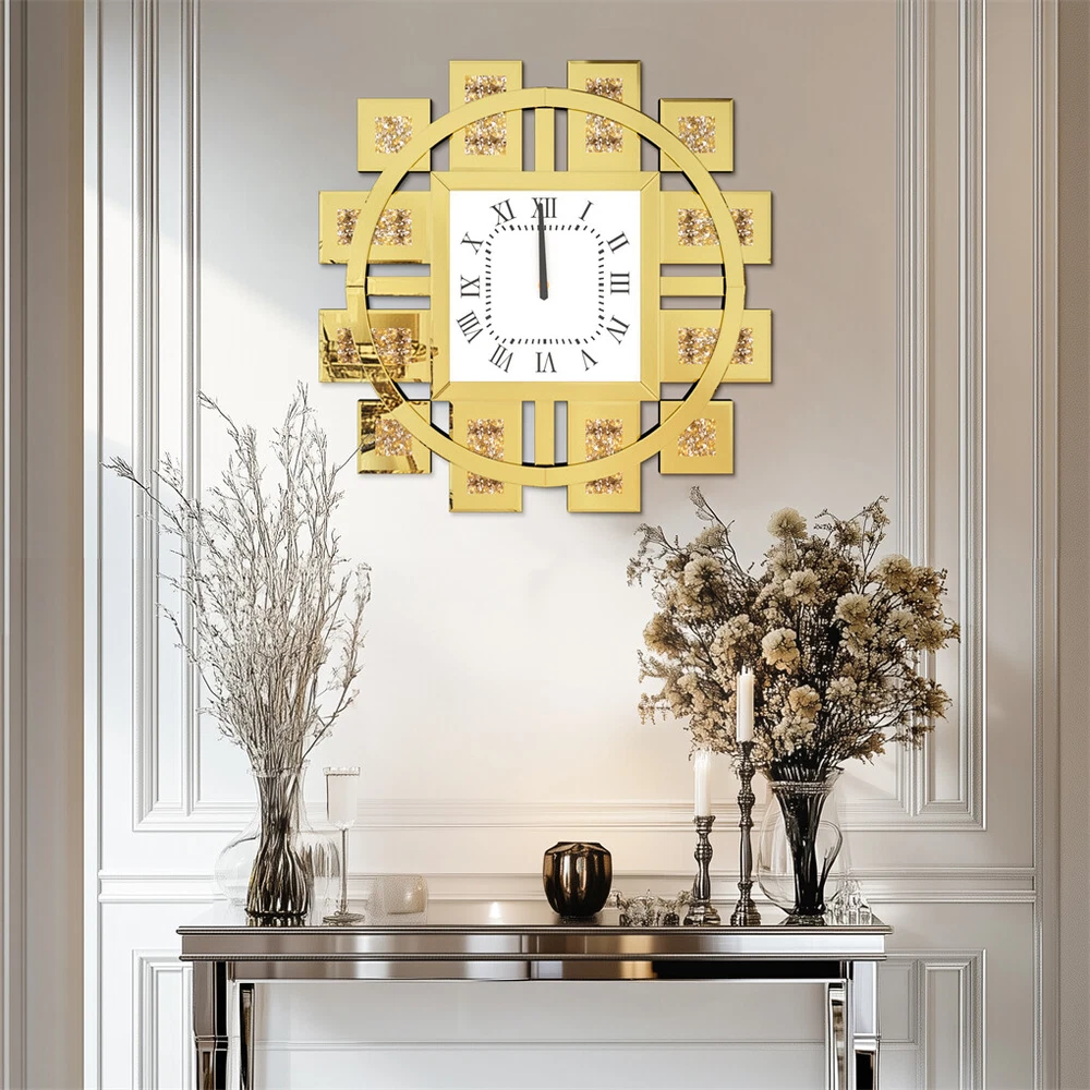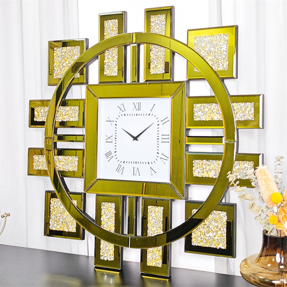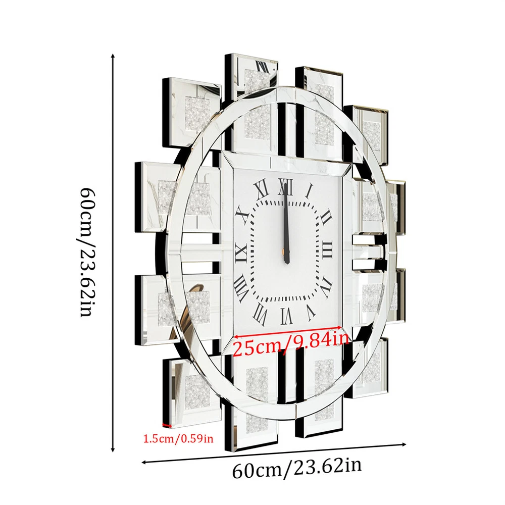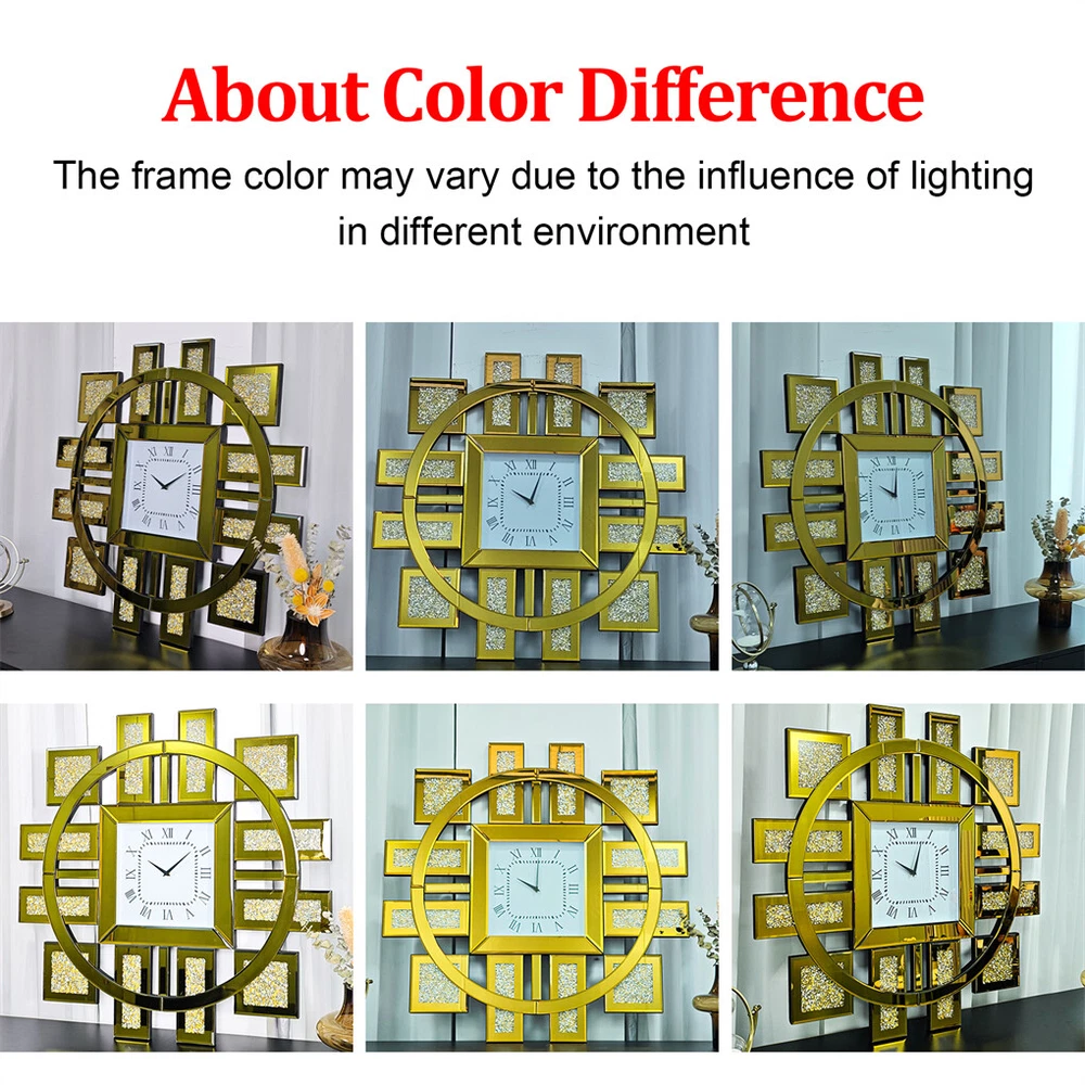 60/80cm Irregular Wall Mirror Clock Aesthetic Crushed Diamond Inlay Wall Clock 60/80cm Irregular Wall Mirror Clock Aesthetic Crushed Diamond Inlay Wall Clock us seller, fast shipping. Features: The unique combination of materials and design makes it stand out from traditional. Meticulous fusion of crushed diamonds and mirror frame, creates an opulent look. Boasts mirrored frame adorned with crushed diamonds inlay, elevating its aesthetics. Incorporating with Roman numerals from I to XII appeals for a timeless classic feel. Crystal crush diamonds inlay the edges, it adds a subtle yet striking touch of bling. The exquisite inlay of sparkling crushed diamonds, surrounded by a sleek glass frame. The combination of crystal diamonds and glass elements that are sure to catch eyes. Strikingly detailed design with crush diamonds creating an aura of luxury within room. Mixed with luxurious crushed diamonds and mirror tones, creating a sleek chic style. Unique irregular shape with golden/ silver mirrored framed, creates an open, airy feel. Instantly spice up a room with an elegant round shape and interesting clock design. Silent running quartz movement allowing you to sleep in peace without disturbance. Clear Roman numeral dial with black metal pointers for comfortable and easy reading. Powered by 1* AA battery (not included), set the time by turning little wheel on back. Hand-polished glass edge, smooth to touch and won’t scratch your hands. Engineered with durable MDF board supports the frame, remains sturdy for use. Wall-mounted clock design, screw fixed suspension, vertically mounted to the wall. Specifications: Type: Wall Clock Model: Silent Wall Clock Shape: Irregular(Round-square) Style: Modern Art Decor Style Number Type: Roman Numerals Power Source: Battery Powered Display Type: Analogue Applications: Bedroom, Hallway, Home Office, Living Room, Kitchen Sub-type: Crushed Diamond Silent Wall Clock Character: Sparkle Crush Diamond Inlay Movement: Quartz (Battery Powered) Battery: 1* AA (Not Included) Certification: CE, ROSE Finish: Beveled Mirrors Features: Mirrored, Sparkle, Diamond Effect Materials: 60% MDF + 40% Glass Color: Silver; Golden 60cm Net Weight: 5.25kg/ 11.57 lbs Product Dimension: L * H 60x60cm/ 23.62x23.62 inch Thickness: 4.5cm/ 1.77 lbs Package Size: 72x69.5x14.5cm/ 28.35x27.36x5.71 inch Package Weight: 7.15kg/ 15.76 lbs 80cm Net Weight: 9.4kg/ 20.72 lbs Product Dimension: L * H total 80x80cm/ 31.50x31.50 inch Thickness: 4.5cm/ 1.77 inch Package Size: 93.5x90.5x14cm/ 36.81x35.63x5.51 inch Package Weight: 12.6kg/ 27.78 lbs Package Included: 1 x Wall Crush Diamond Clock 1 x Instruction Note: - Please refer to the measurement. Tiny measuring error is allowable in normal range. - There might be a little color difference due to the monitor, camera or other factors, please refer to the physical item. Payment Delivery details Terms of sales About us Contact us Payment 1.We accept payment by credit card, paypal, Payoneer. 2.Upon on payment, please confirm your shipping address and make sure it correct. Delivery details 1. We ship out all of our products brand new. 2. All products have passed quality inspection before shipment. 3. In case you receive a damaged or defective item, please notify us within 3 days after receiving the products. Please also attach a picture to help us verify. We will provide a replacement or refund as your request upon verification. 4. If you product has been sold out we would email you within 24hrs, if you not response we would cancel and refund fully to you. Terms of sales 1.We are located in NJ, CA , and over 10 stocks in different states to make sure the parcels arrive to you asap. 2. All the items will be shipped via USPS, UPS Ground, Fedex Ground with tracking number provided. 3. We cannot ship to Alaska, Hawaii & Puerto Rico and PO BOX Addresses. About us We are professional supplier of Home, garden and household products, such as table, funiture, plant stand, led mirrors, TV Mount, Pet Bed, Pet Supplies, Coat racks, Home Furniture etc. Choose anything like in our store We are manufacturer of belowing brands which have been well received from our customers: BingoPaw/Wisfor/LUVODI/UNHO, more brands are pending, we are strong and responsible seller and aim at providing nice and cost-effective products to more customers. If you wanna drop shipping or work with us, pls feel free to contact us. Don't forget to follow us for more new arrives. We are manufacturer of bathroom mirrors for decades, our mirrors well received from over 130 countries. The first class factory and skilled technique, pls feel free to contact us if you want drop ship or large procurement. Contact us 1. If you are satisfied, pls remember to leave us a positive feedback 5-star to encourage us! That will be much appreciated. 2. Normally your email would get replied within 24 hours (Business Hours) and your issue will be followed up carefully till we 've reached an agreement. 3. Please DO contact us first before opening any case or dispute, cancel or leaving any neutral or negative feedback. 4. Pics feedback and real effect shows for other customers reference will be much appreciated, we will use them in our product details pages.