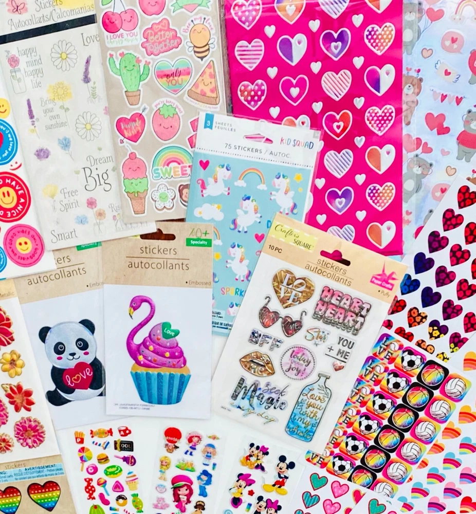 All stickers are BRAND NEW | Still in their original packaging! HUGE Mixed Sticker Lot | The Ultimate Kit | Qty. 6099+ Stickers | High Quality Only! Fun Assortment of Puffy, Scrapbook, Cartoons, Bubble, Pop Up Stickers Packs For Everyone! You will receive 169+ Sticker Sheets of beautiful colorful assortment. The Pack will include 6099+ Stickers overall! I have included a large variety of pictures of the assortment available. The pictures give you an idea of what you will be receiving. Please Note: You will not receive everything pictured. Please contact me with any special requests. This HUGE Variety of fun designs stickers can be used in parties, classroom, school and home, good for reward for students, potty training, adding inside a birthday card, game activities, entertaining toddlers, etc. Perfect Gifts for Kids & all Occasions: Can be given as a gift for kids, girls, boys, toddlers, teens, students, friends, and classmates, they will love it! Each package of stickers is a different style & theme with some lovely embellishments like rhinestones, ribbons, buttons and other 3D details that make these quality stickers look so unique!