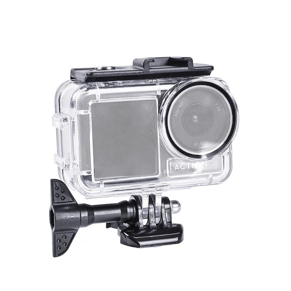 60M Waterproof Protective Shell for DJI OSMO Action 4 Camera Housing Case Dive Shield for Underwater Filming Diving Swimming Parameters: Model: Action4 waterproof case Material: glass + high transparent PC + 314 stainless steel Colour: transparent Function: 60m waterproof Weight: 90g Size: 90*90*40 Features: 60m deep sea waterproof standard. Made of glass, light transmittance ≥95%, which can retain the quality of the picture. The parts on the waterproof shell are made of 316 stainless steel. With anti-oxidation, anti-rust, long-lasting and durable. Dual cold shoe interface design, can be used with fill light, microphone and other equipment. The lens is made of toughened glass, which is not easy to be scratched, and at the same time can maintain high quality shooting effect. The back cover is attached with shock absorbing and anti-pressure sponge, so that the screen is not subject to damage caused by external pressure. Triple-folding snap design, flip-flop closure switch, not afraid of accidental removal of the cover, with a safety lock, press to unlock more secure. The sealing ring effectively prevents water ingress, the greater the water pressure, the tighter the sealing strip.