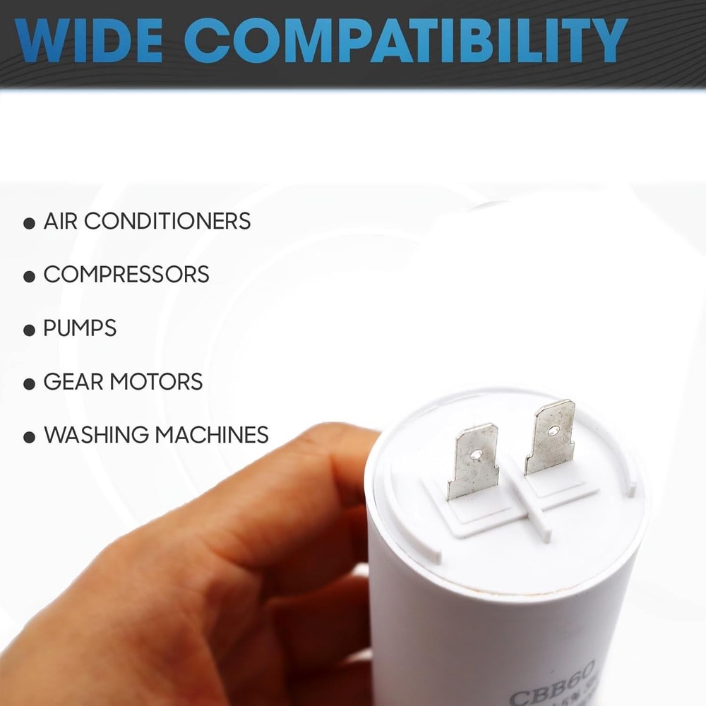 Item always Will Be Sent Out in 24 Hours From Monday to Saturday From California USA With USPS Tracking No. CBB60 Rounds Motor Run Capacitor For HVAC Units, Pumps, Compressors, Garage Doors, Ice Machines, Industrial Machinery. 60MFD 250V 25/85/21 5 0X105MM (Specifications : 250V 60uf CBB60 2 Pins and Stud) Motor Run Capac itor 250VAC CBB60 60uF 60MFD 250V AC 60 uF MFD White 50x105mm 40/70/21 W/Fixing Stud UL Cap Capacitance : CBB60 60uF ±5% , Rated Voltage :250 V AC Maximum Operating Temperature 70 °C (158 °F); Minimum Operating Temperature -40 °C (-40 °F) Key Dimensions: Diameter: 43MM/1.6 Inch , Height: 8 4 MM/3.3 Inch Packing Contents: 1 X Capacitor . The size & body are shown in the pictures, please make sure the mounting dimensions. It is recommended that buyers check the original capacitor with a capacitor test er first, confirm the damage, and then purchase a new capacitor. Payment 1.We only accept PayPal. Credit card payment can also be made via PayPal.eBay Immediate Payment via PayPal. 2.Please fill in a valid contact address. Shipment Items are usually shipped 1 business days after payment has been received. We do not ship on weekends and holidays. Sellers are not responsible for service transit time. Transit times are provided by the carrier, exclude weekends and holidays, and may vary with package origin and destination, particularly during peak periods. Return Policy Out 30-day Satisfaction Guarantee assures our customers that they will receive all orders promptly and exactly as described. In addition , it allows customers to return new and unused products in their original factory condition for any reason within 30 days from the date of purchase. Notice: 1.All returns must be pre-approved by Seller and have a return merchandise authorization (RMA) number. Any problem about item, Please Send the eBay message to us ,we will respone in 24 hours 2.Buyers are responsible for appropriate packing, returning shipping cost, insurance and returning the item in “new” condition. Used items will not be accepted for return. 3.We will replace the returning item with an identical item, issue a full refund. Contact us 1.If for some reason there is any issue with the purchase, please contact us prior to leaving any negative or netrual feedback, and we will work with you to have it resolved.