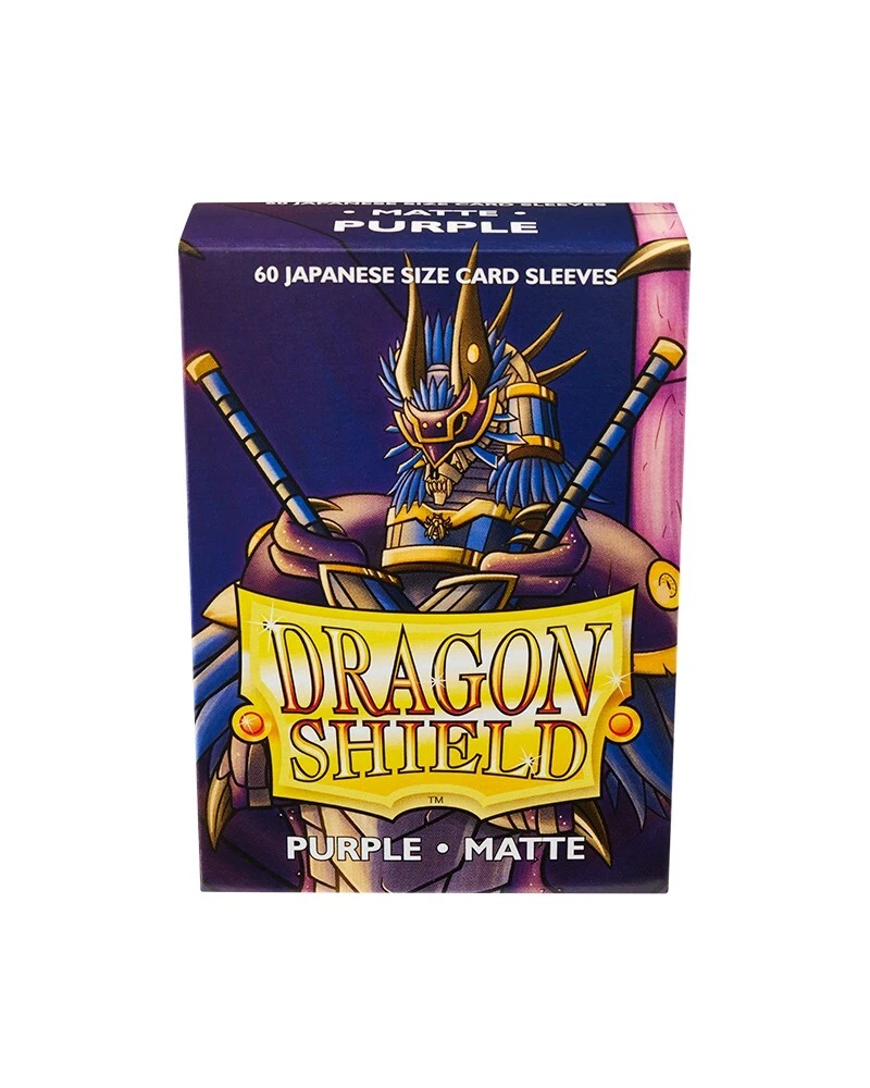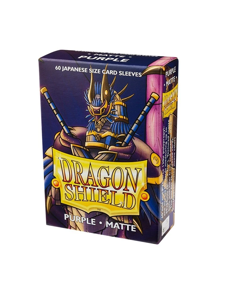 Dragon Shield Card Sleeves Small Japanese Card Size PURPLE - MATTE - 60 Count Pack Japanese size sleeves are made in a smaller size for TCGs like Yu-Gi-Oh and Cardfight Vanguard. Matte sleeves are our popular line of textured Dragon Shield sleeves with superior handling, comes in a box of 60. A perfect mix of durability and shuffle-ability. The sturdy cardboard box fits 40+ single sleeved cards or 35+ double sleeved cards. There is a label on the side of every box for personalization. Find More Gaming Supplies Here! Browse Our Ebay Store - Thousands Of Cards Available Need Trading Card Supplies? We carry everything!