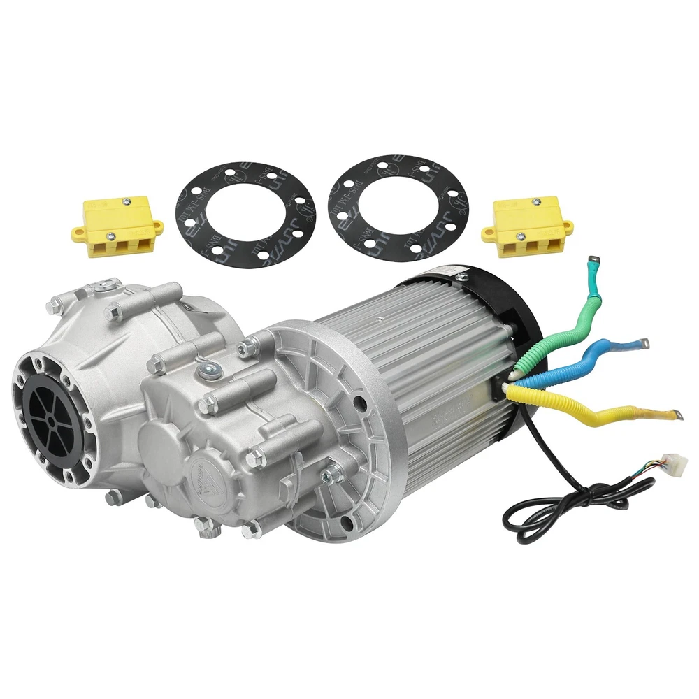 The Powerful 60v 2500w Unite motor brushless motor with differential gear box for Electric Golf Cart, ATV, Buggy, Quad, Car, Vehicles, Go Kart etc. Rated Speed: 5000RPM Max Speed: 6000RPM Rated Voltage: 60V Rated Power: 2500W Rated Current: 63A Gear Ratio: 12:1 Max Torque: 400N.m Shaft Spline: 6 Teeth Max Load: 1500lbs Protection grade: IP33 Insulation grade: F Weight of the motor: 36.8lbs Controller: 36 Tubes Limited Current: 110A Please check the size specs before purchase Package includes 1x 60v 2500w brushless motor with differential gearbox 1x 60v 2500w controller inkfrog terapeak